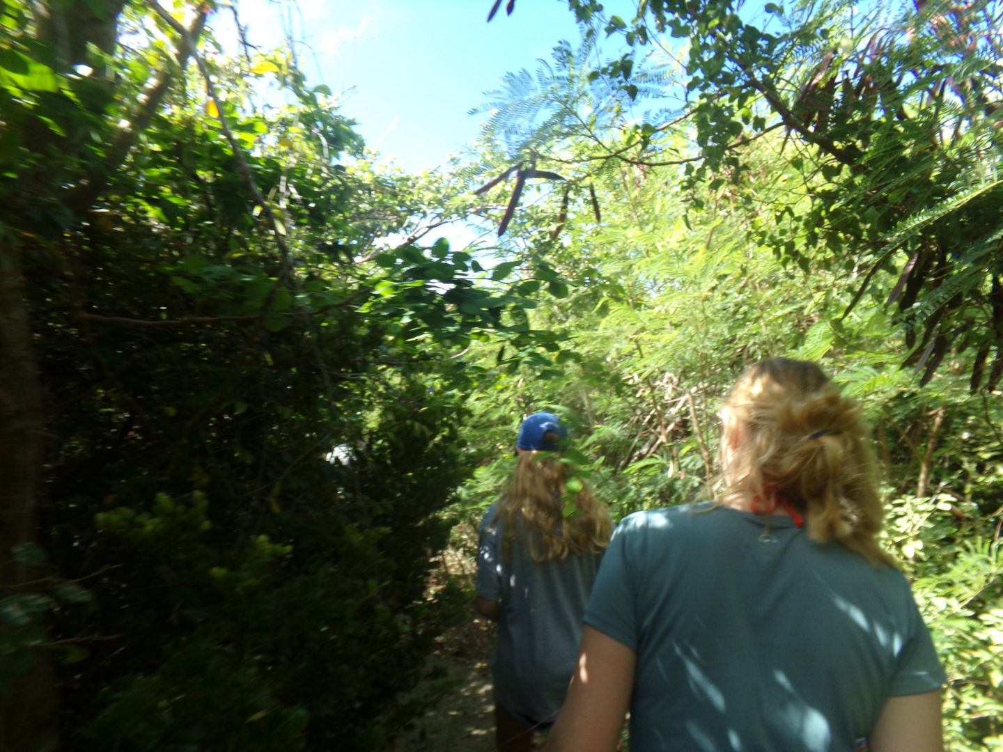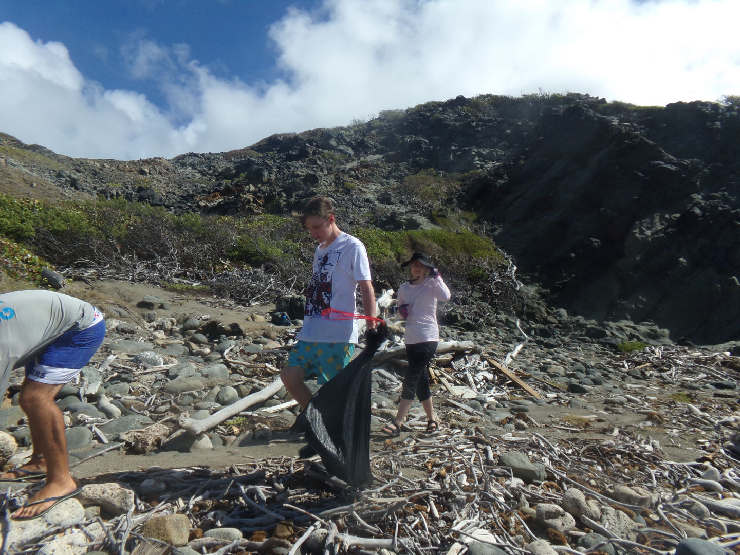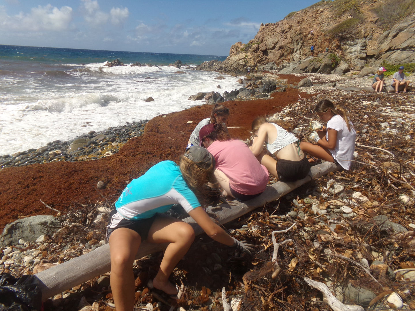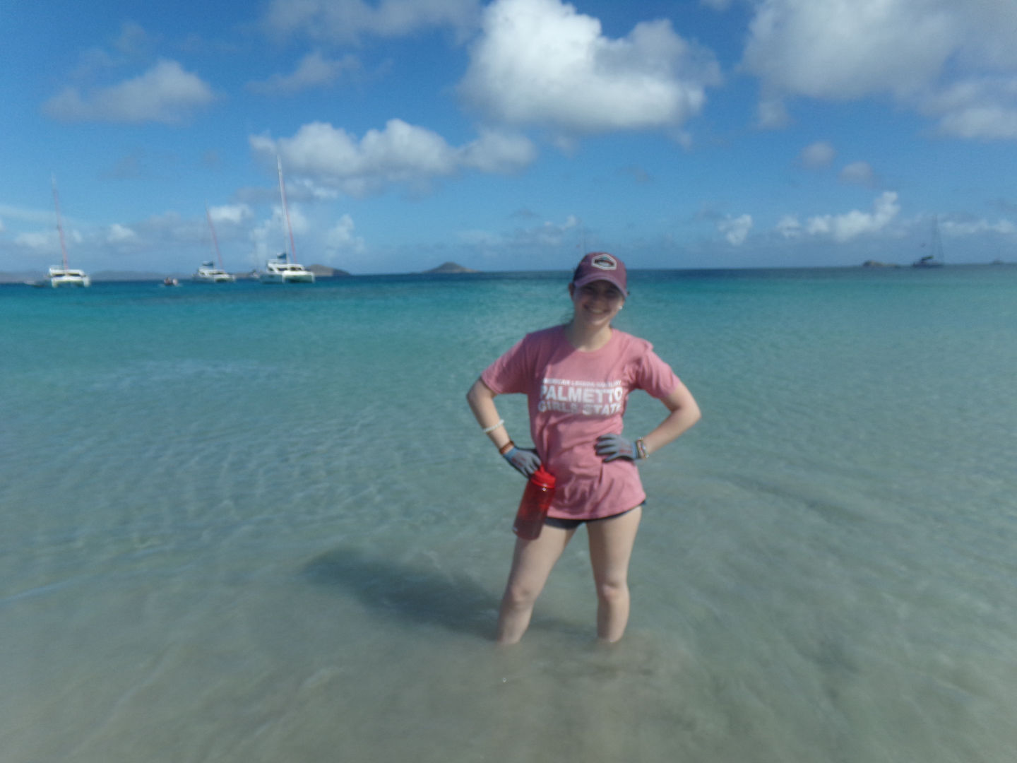 We got dressed for the day, and we started off by picking up trash on the beach. We took the dingy over to Savanna Bay and saw the prettiest water. There was no trash at all on the beach; however, when we walked over to the windward side of the beach, there was an incredible amount of trash everywhere. We walked up a little bit of a hill and found a tarp and so much more plastic. It felt really good to be able to help the ocean and the wildlife around.