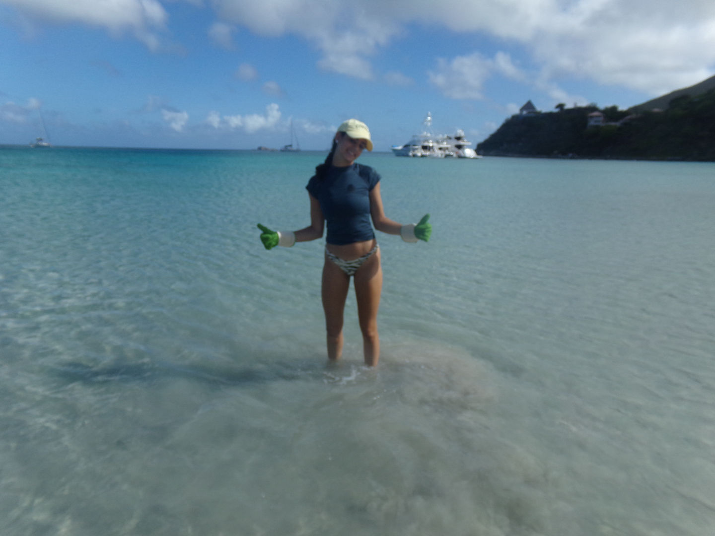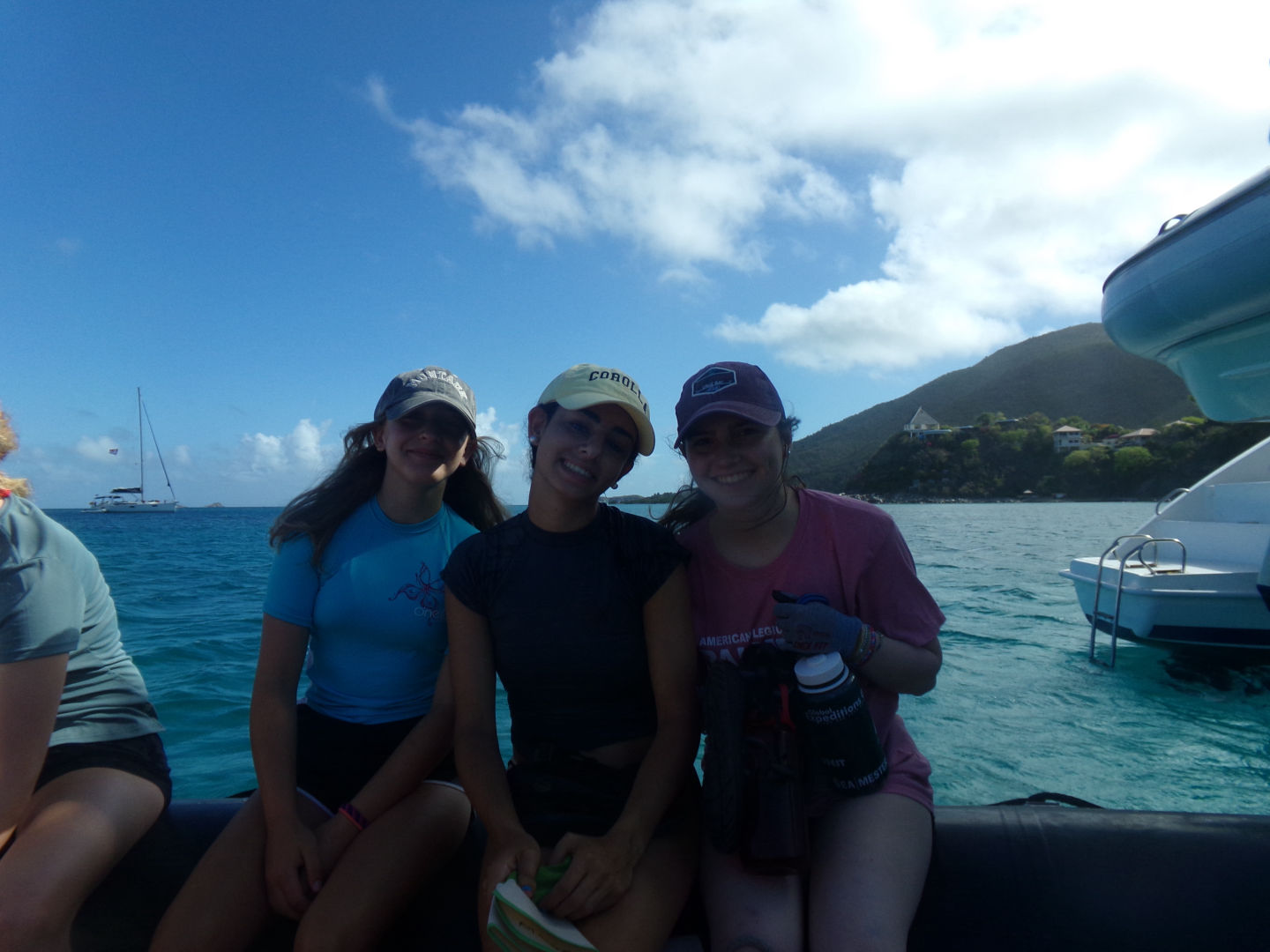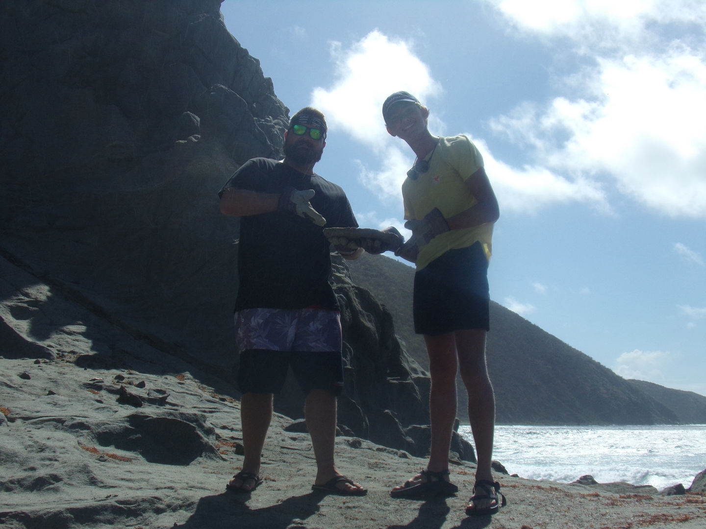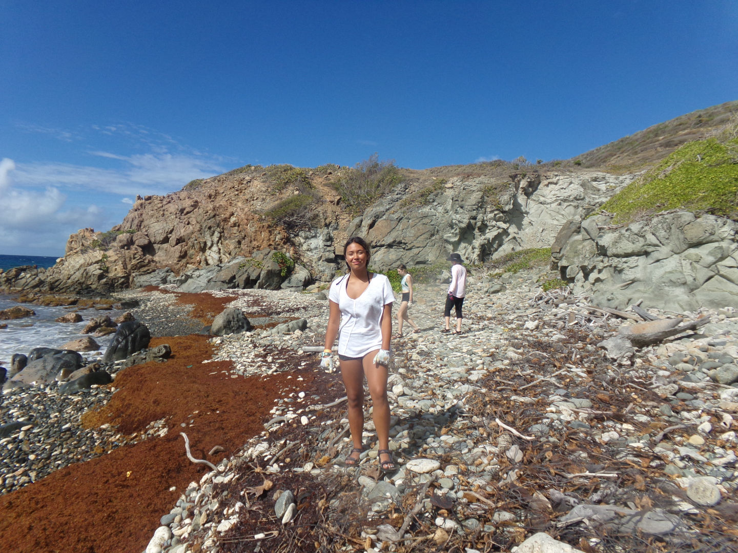We got dressed for the day, and we started off by picking up trash on the beach. We took the dingy over to Savanna Bay and saw the prettiest water. There was no trash at all on the beach; however, when we walked over to the windward side of the beach, there was an incredible amount of trash everywhere. We walked up a little bit of a hill and found a tarp and so much more plastic. It felt really good to be able to help the ocean and the wildlife around.