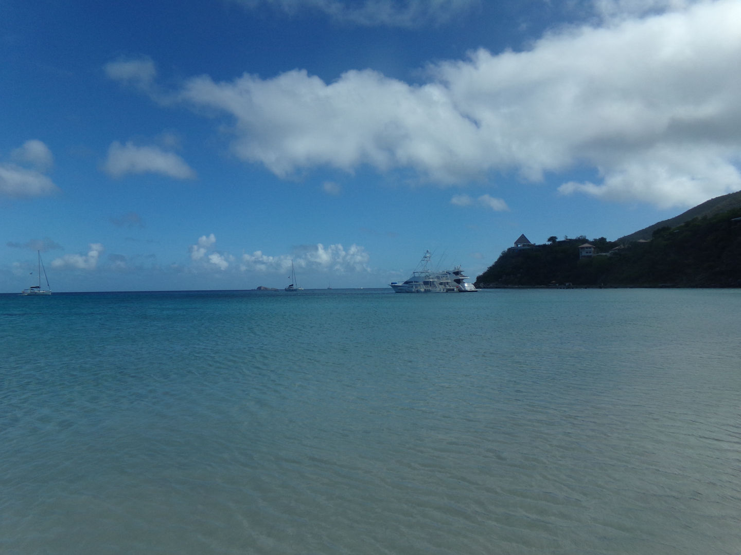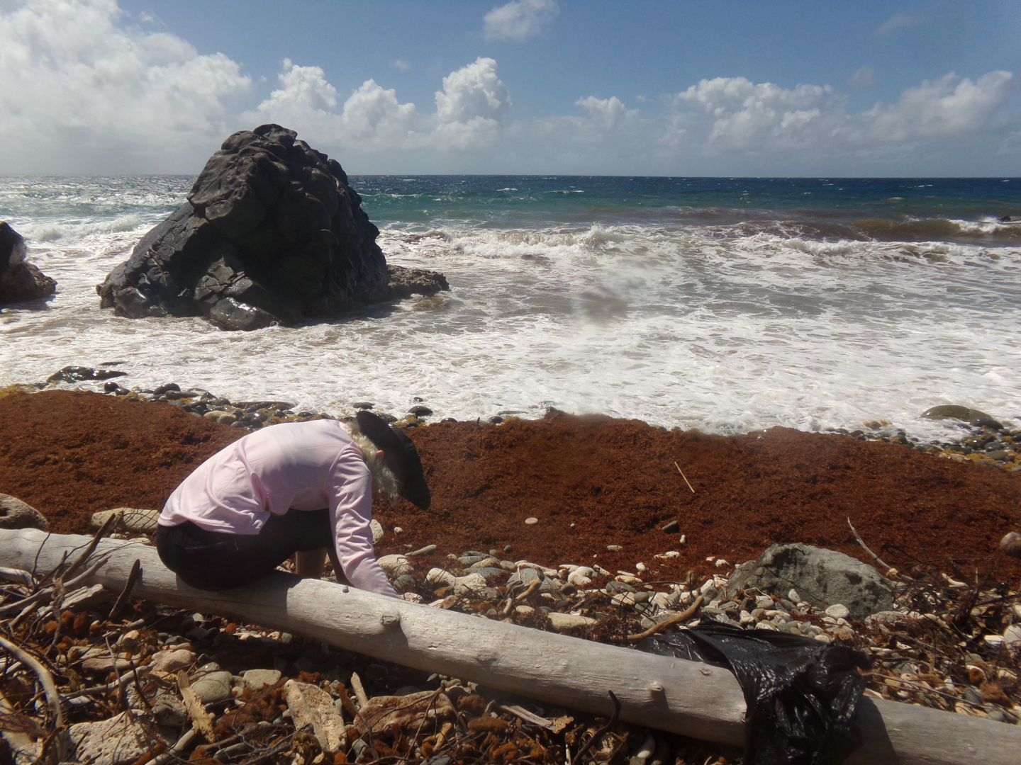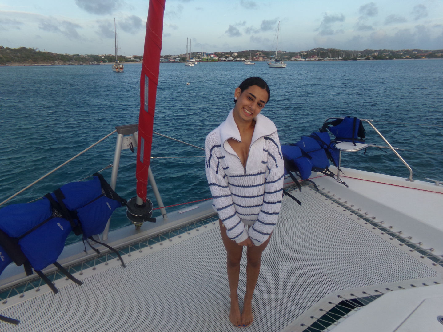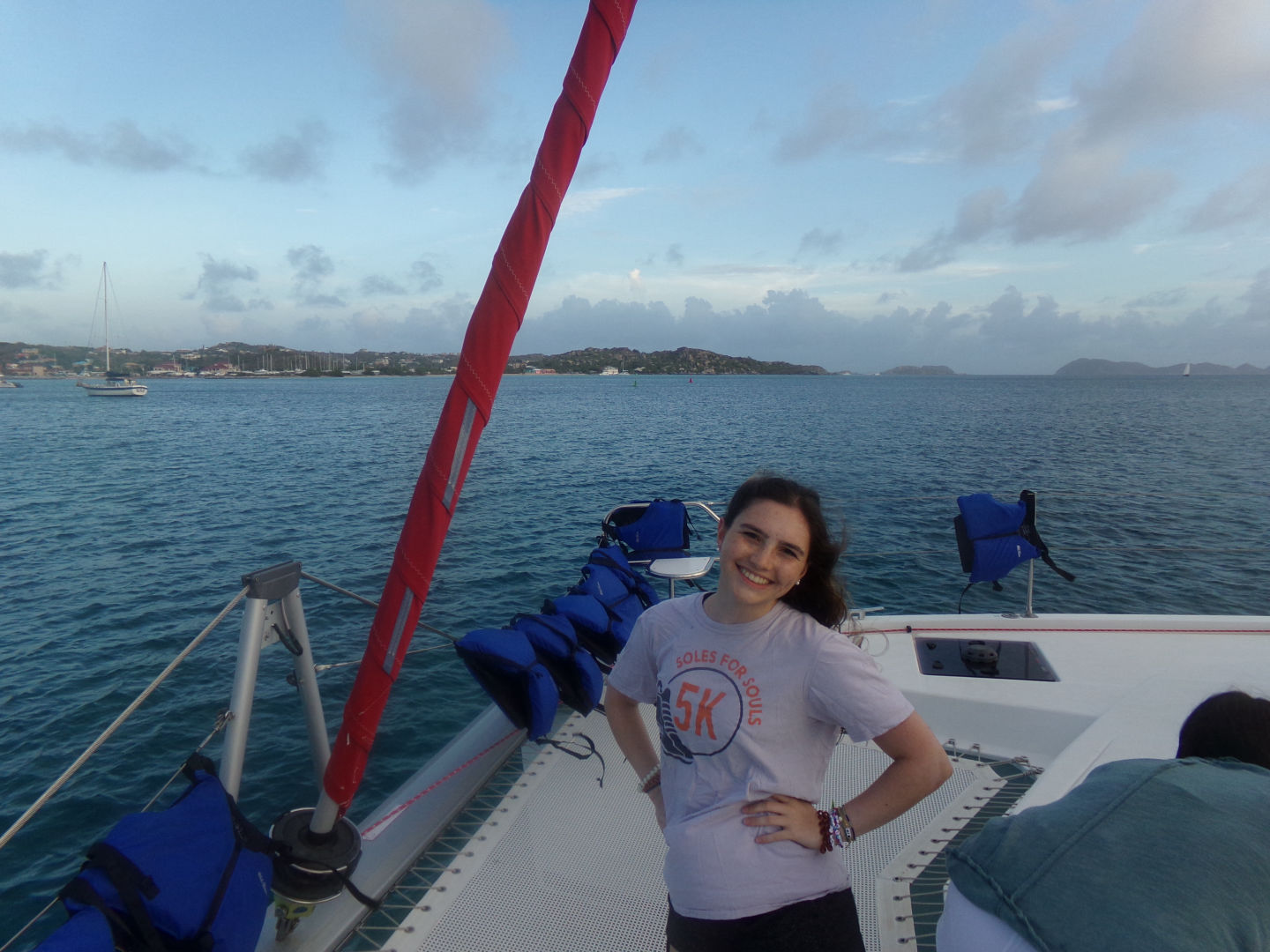 We got dressed for the day, and we started off by picking up trash on the beach. We took the dingy over to Savanna Bay and saw the prettiest water. There was no trash at all on the beach; however, when we walked over to the windward side of the beach, there was an incredible amount of trash everywhere. We walked up a little bit of a hill and found a tarp and so much more plastic. It felt really good to be able to help the ocean and the wildlife around.