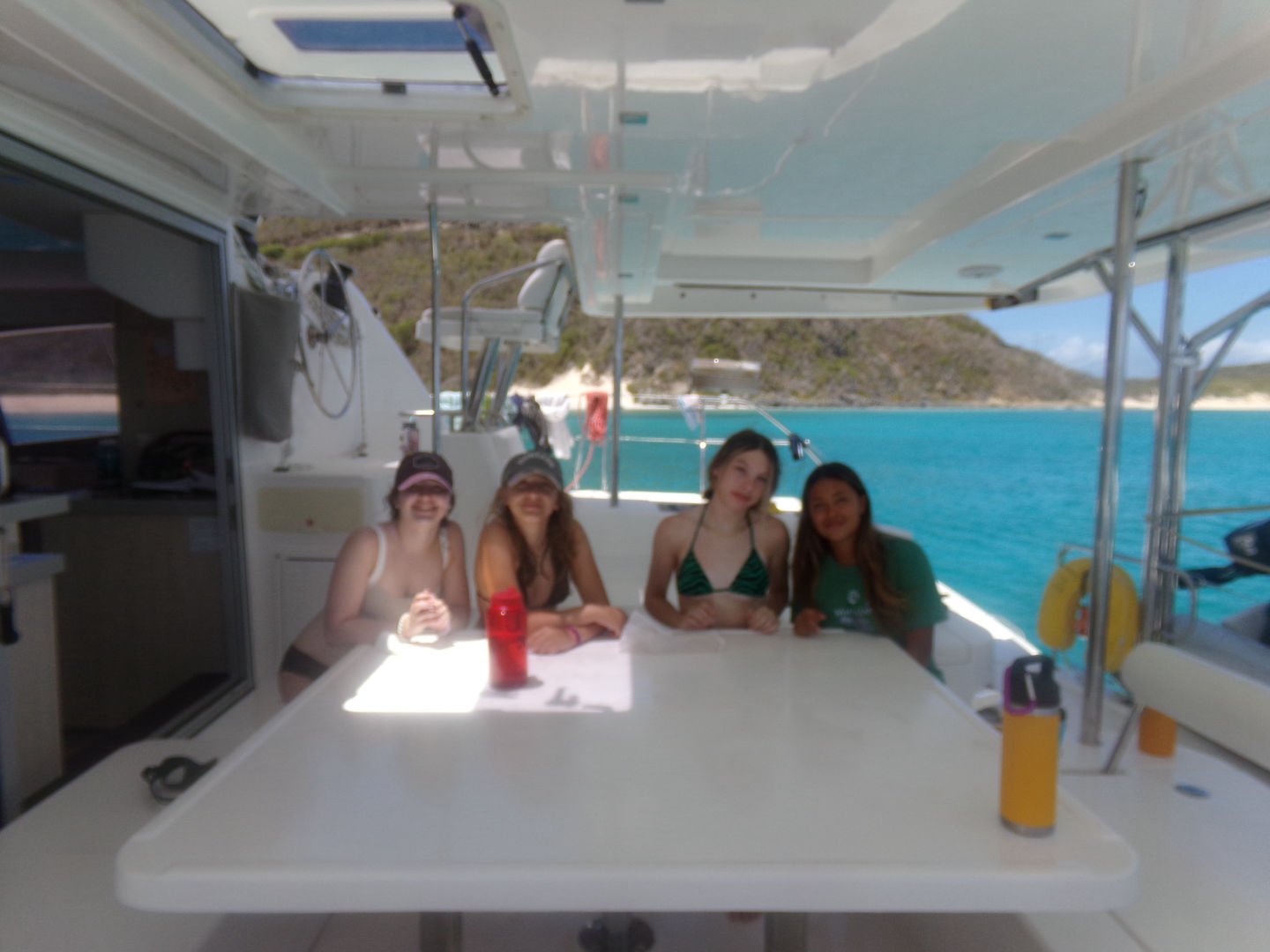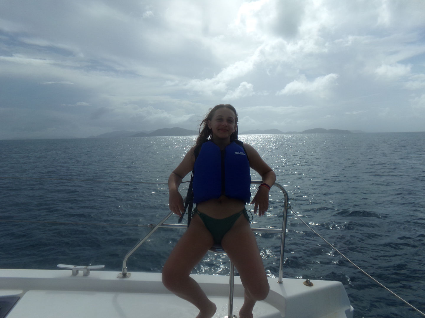 We swam in the bay a little bit before we went back to the boat. We saw a ton of lemon sharks! Our boat LOVES to get in the water as much as we can. Once we finally got back to the boat, we started our sail to the Baths. Sailing is so nice and relaxing, and I’m hoping to learn more about how to sail. I moored today, which was where you attach a mooring ball to a rope on the boat so it can hold.