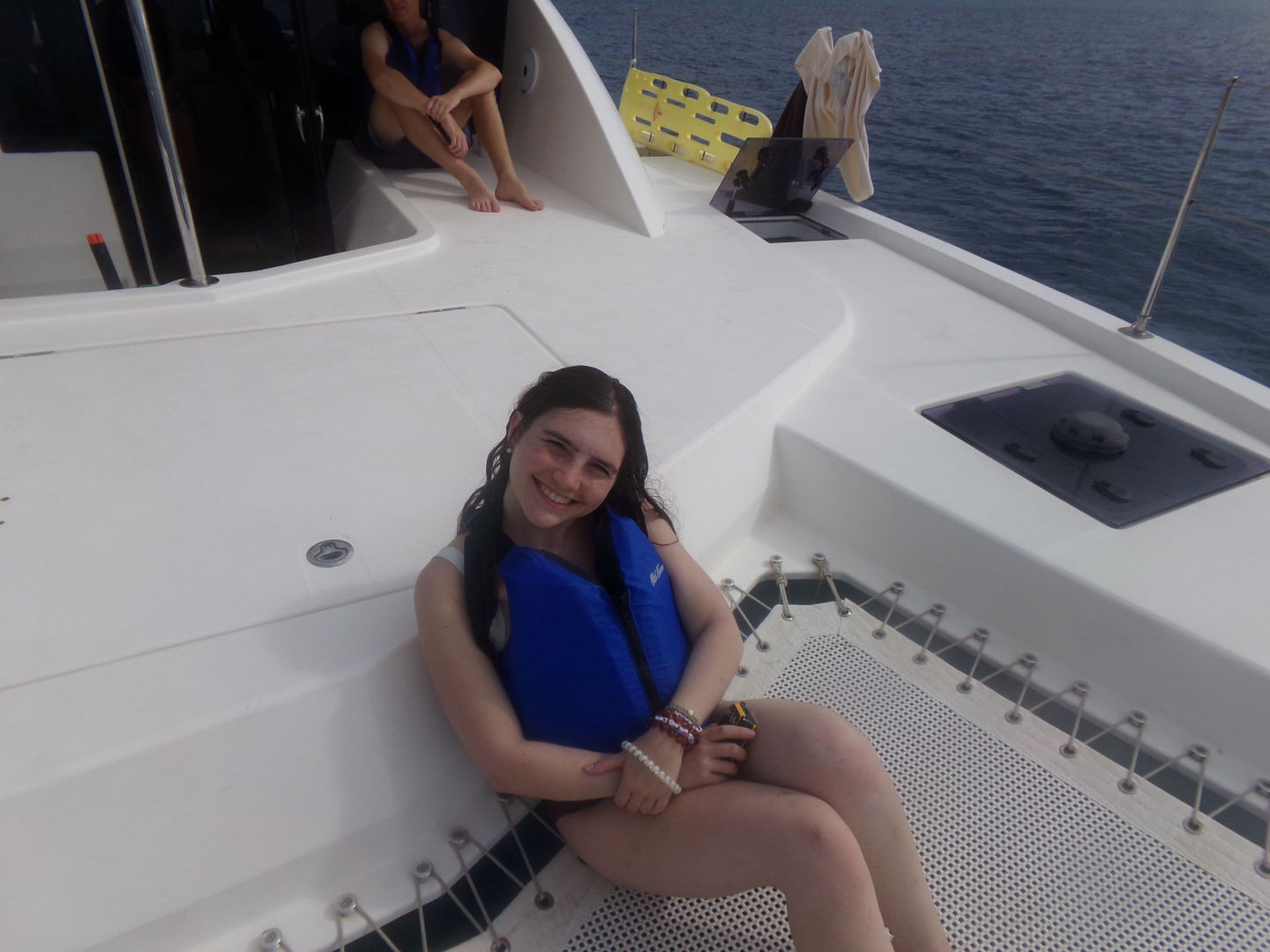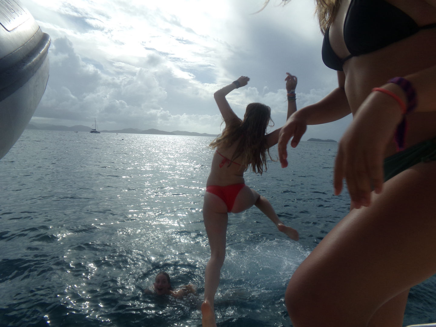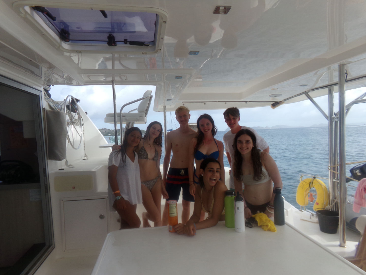 Once we got to the baths, we could either go to the cliff jumping area or we could head over to the beach to relax more. Most of us went over to the cliffs. This was a hike. Climbing all over rocks that were covered in moss and algae and slipping everywhere. However, the cliffs were really cool and were so fun to jump off of. Once we were done at the Baths, we headed back to the boat and swam around for a bit. We all jumped off of the dingy, and some of us tried flips. I am trying to learn how to do a backflip. It was going well yesterday but not so good today.