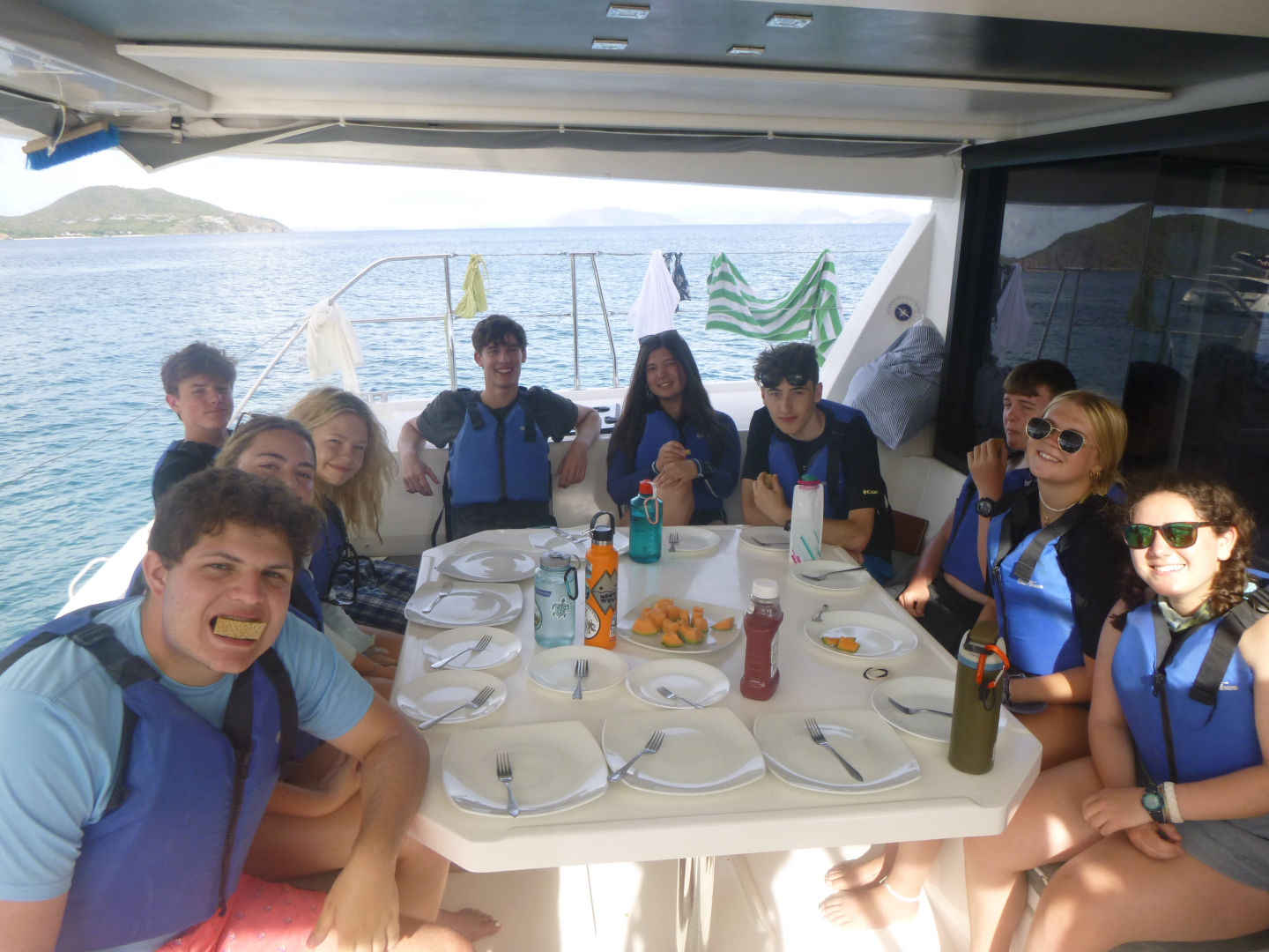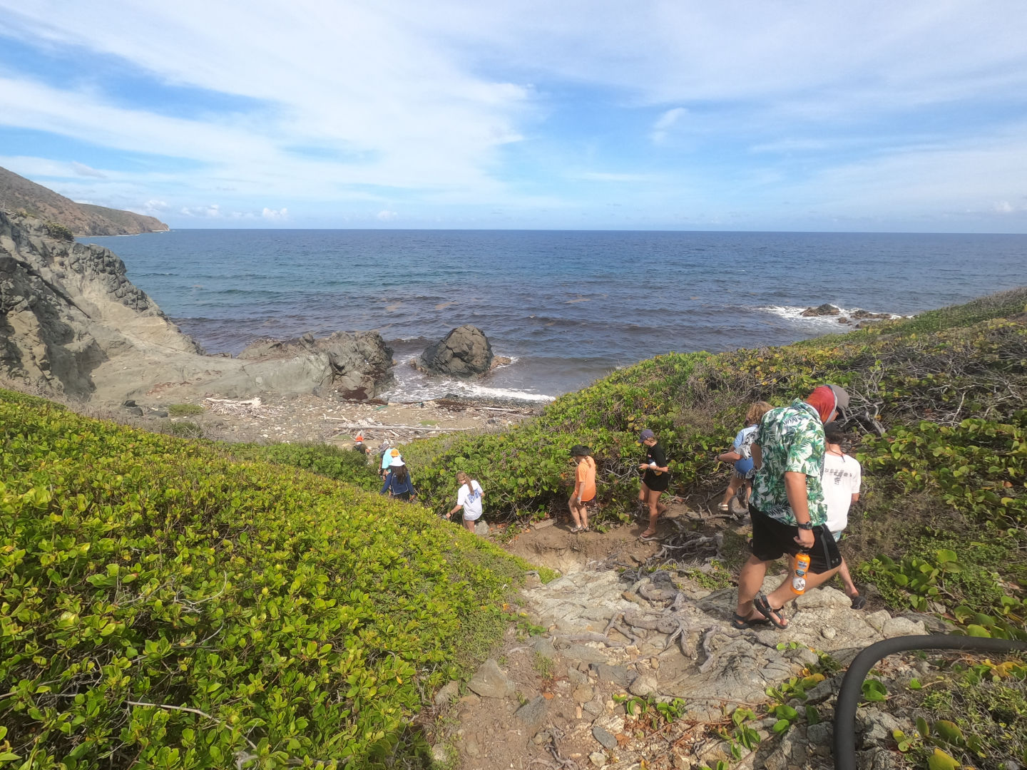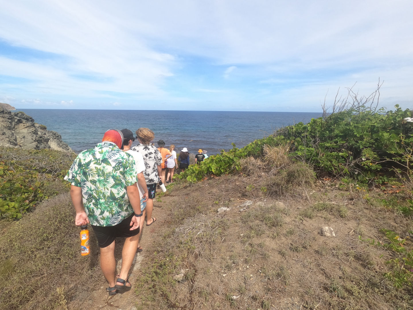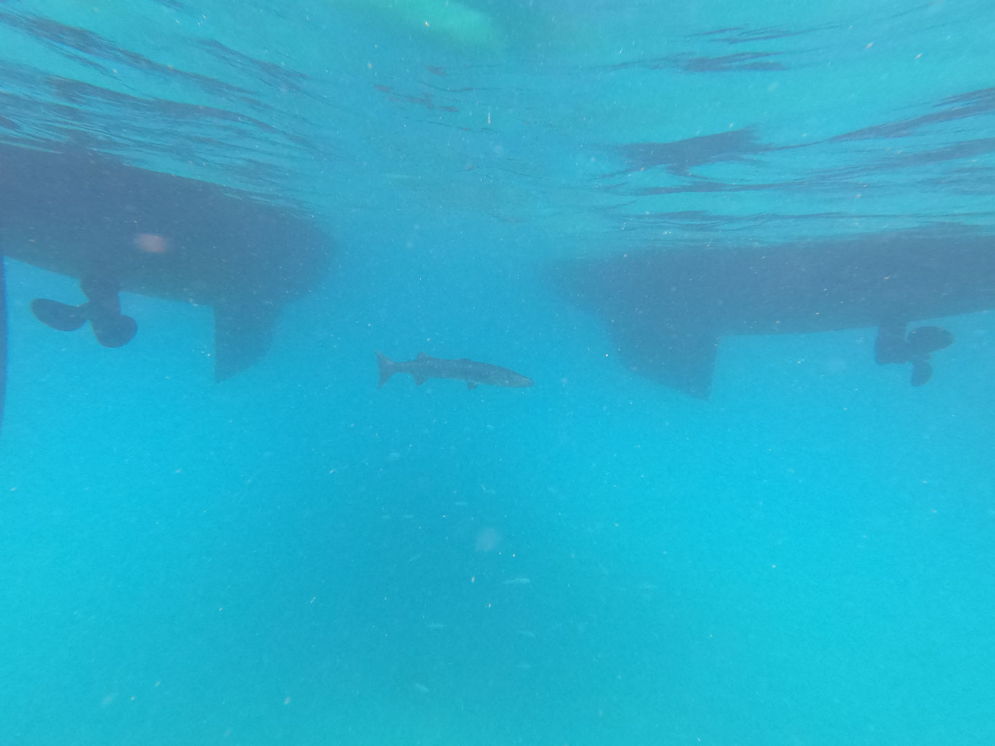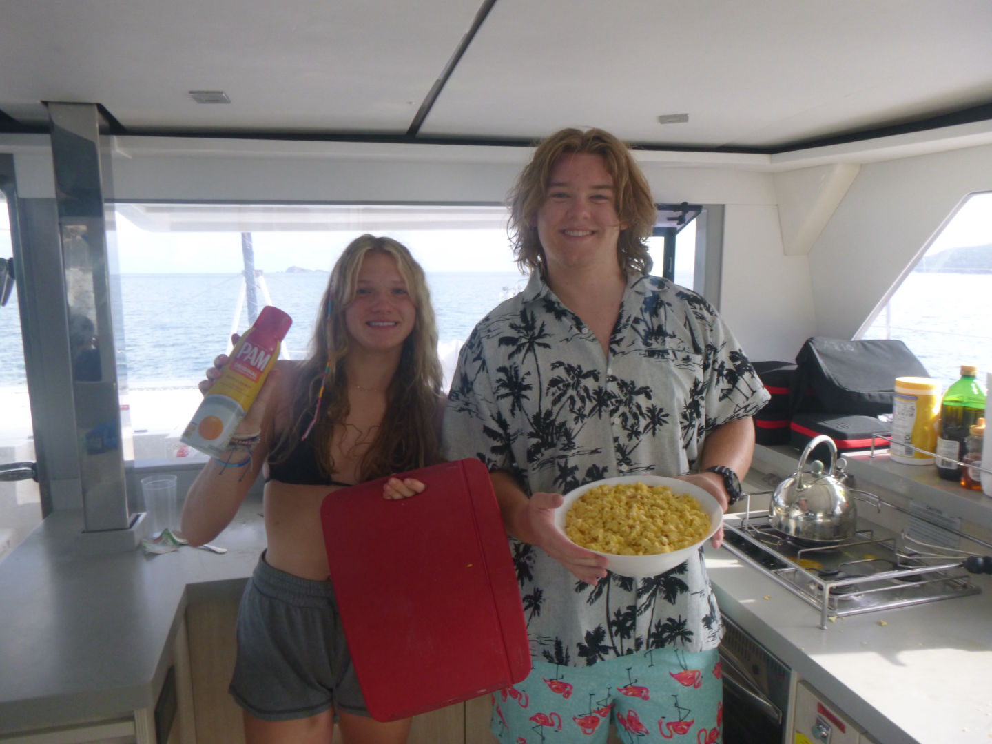 When we woke up, we were greeted with scrambled eggs, blueberry muffins, and cantaloupe made beautifully by Tyler and Alexis. The eggs gave us energy for our first navigation dive of the session. After our spectacular dive at Sand Circles, Anna taught us a quick lesson about oceanography, and we had a nice in-person example later in the day. As we motored back over to Savannah Bay for our hike, the girls took it upon themselves to conquer the hard top and use it as a tanning spot to enjoy the nice summer sun. Once we got to shore for our “hike,” also known as a nice stroll, we got to see both sides of the island. Then, we headed back to the boat for showers and swimming, where we saw the biggest barracuda ever. Then, we chilled at Savanah Bay, waiting for the chefs to cook dinner, which was coveted chili and rice. We all had a great day.