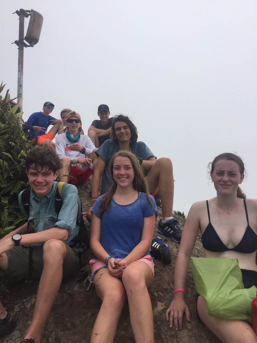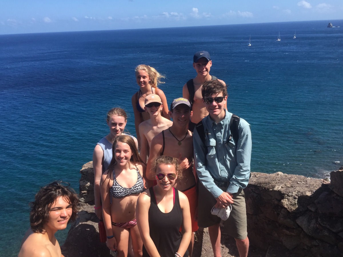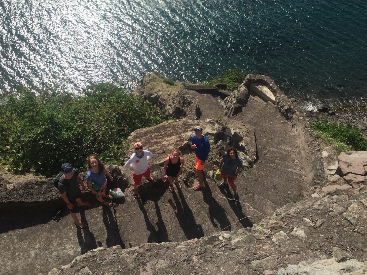 So today, we swam across the ocean to get to Saba. Once we were on land, there was a staircase that literally lasted for 2 hours. Ruth took the shortcut and rode the dingy to the other side of the island. After we summited the stairs, we walked through this town that had stray goats wandering down the streets. Once we got through the town, we walked on this rugged trail where we met a man who killed 2 of our friends (goats). When we were getting near the top, the group split and took two different paths, one being through a mud pit… ooooooops. We were in a cloudbank at the top and decided to descend from the mountain. On the way down, we collectively slipped 900,000 times. We walked downhill to a different town where we got to add back the calories we burnt off and then some. We got to stock up on our Capri Suns at the store as well as our Oreos. Fun fact: We all (9 students) went through a family pack of Oreos in 4 minutes, possibly a record. As we were crawling up the mountain, Ruth decided to go for a snorkel and saw a massive shark near the mooring ball. When we got back to the boat, we took our showers and are now getting ready for dinner…veggie burgers…yummmmm:)