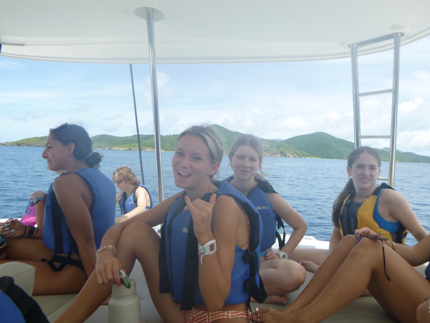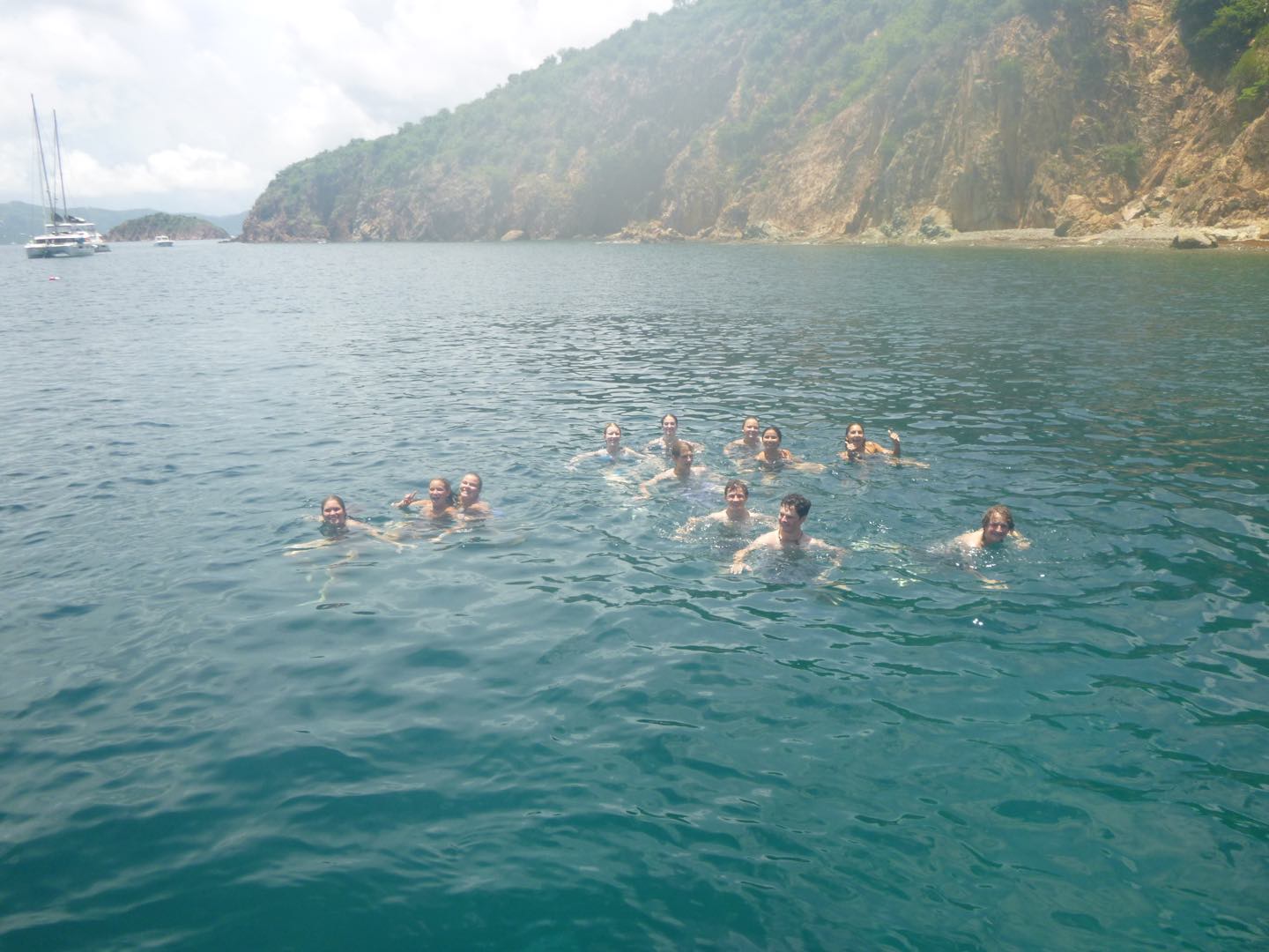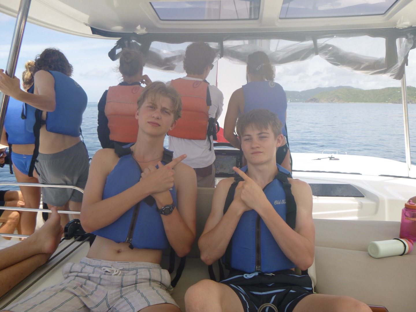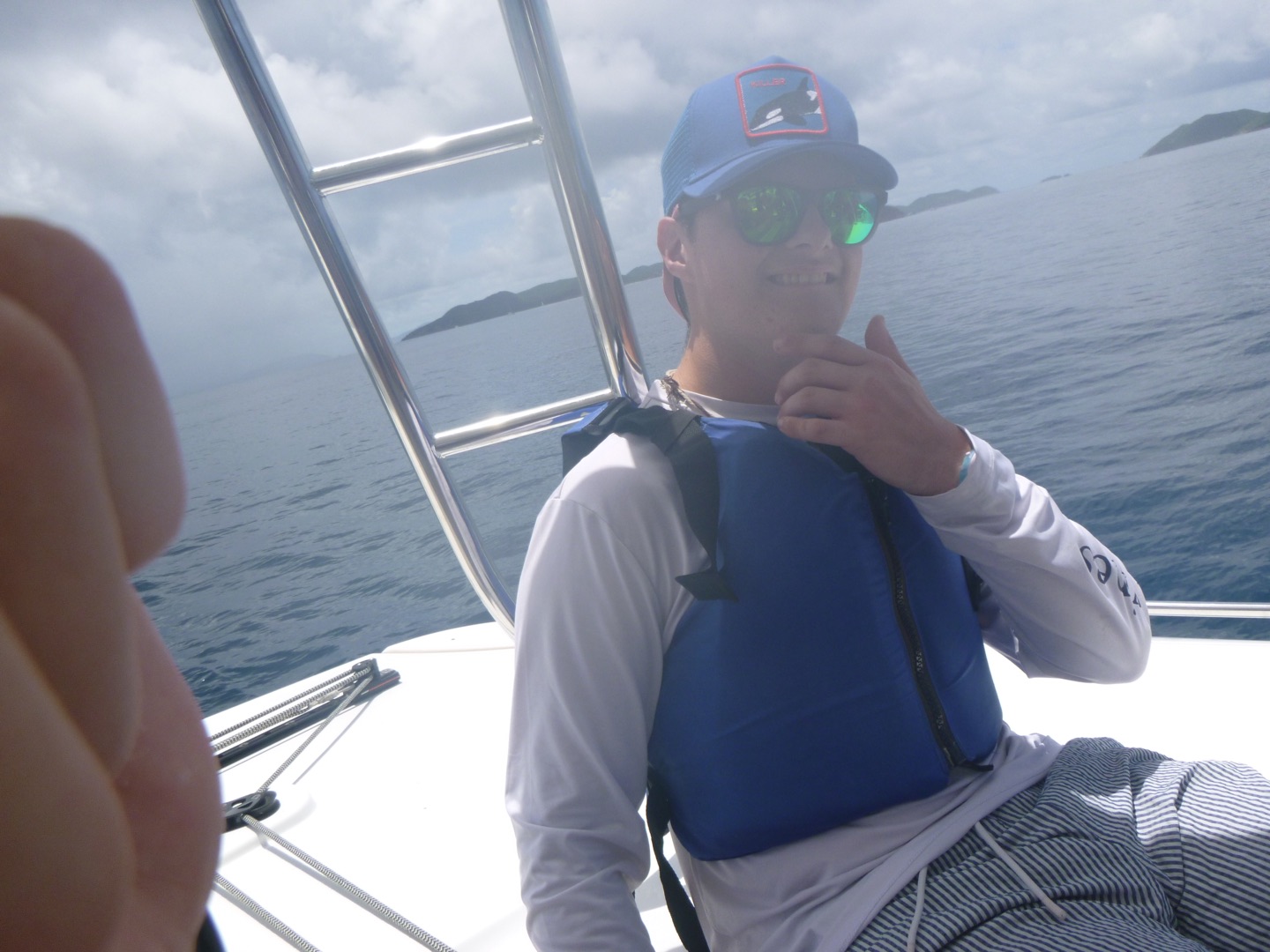 Hello from Odyssey today, shipmates Claire, Rachel, Catherine, Carson, Alyssa, Brig, Greta, Ella, Jordan, Freddie, Molly, and I enjoyed a fun-filled day made up of activities such as snorkeling and sailing; we learned valuable skills on how to raise a sail on a ship and how to properly steer a sailboat. During the Lesson, Greta, Jordan, and Alyssa led the group in a conversation about our experiences and reasons for coming on this trip. These skills not only teach us how to sail a ship but also to work as a team that all seek to achieve the same goal. Tonight, we are mooring, which means that we are “anchored” to a rope that is attached to the ground. In order to attach to the rope, Carson, Freddie, and I worked as a team to grab the rope using a special hooked stick. Freddie and Carson then proceeded to tie the ropes to the port and starboard parts of the Bow of the ship. Once we were stationary, we took our first Ocean “shower,” which meant that we had to swim in the ocean and use our soaps in the water. This experience showed us that even the little things require effort and that if we wanted to thrive during this trip, we would need to work hard for everything we do. Last night, Claire and Ella spent their night journaling about the new experience while Brig, Freddie, Carson, and I talked about our past experiences. During that time, Rachel, Molly, and Catherine converted the Living room into a giant bedroom.