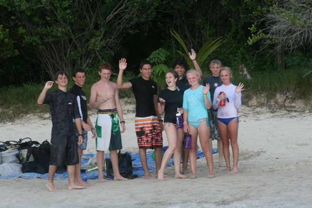 Today some of us went into Spanishtown and drove to a beach where we collected trash along the beach. The other people on the boat went to Savanna Bay and wakeboarded and sailed in Picos. We all had lunch on the boat together and went back to the beach for more activities. Most of the boat went scuba diving, while a few other people went on a hike to the other side of the beach. The weather was really warm with a bit of a breeze and the water was really pretty and clear. The favorite things done today were scuba diving and the beach at Spanishtown which had huge rocks that we were able to climb onto. Tonight our evening activities area scuba talk or an environmental movie, depending on which program we are doing. They day was amazing and beautiful!
