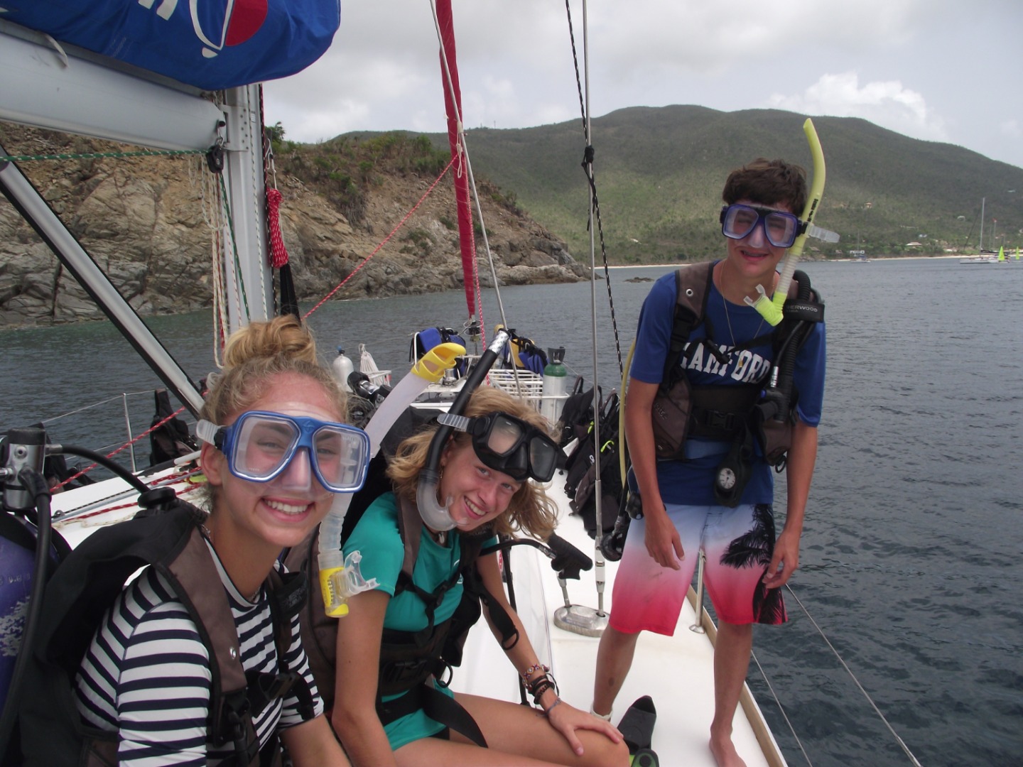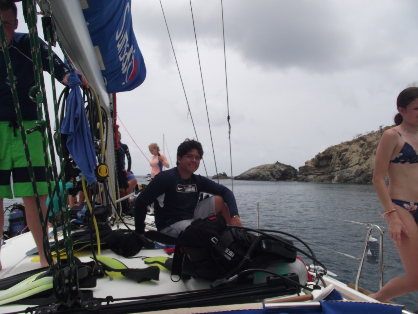 It was a very exciting day today! It was Breakaway’s first open water dive. We began the day with a pretty relaxed morning. Then we spent a frustrating one or two hours on Turk’s Head bracelets which we all have on our wrists or ankles, we then learned about the systems of our boat. Finally, after lunch Breakaway took their first open water dive, everybody got their gear together and on and began the dive. We saw different colored fish and a very big barracuda swimming over us. We swam in between big rocks and looked at the life underwater. Lastly, we ended our day off with some dinner with Mike and then went to a Lifeworks Forum.