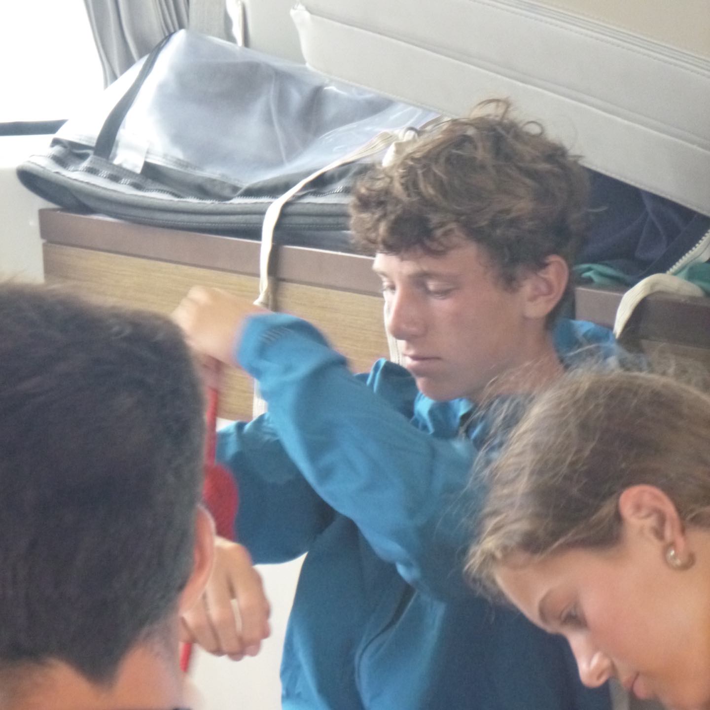 While sailing, Whitney gave us our open water scuba exam. Taking this exam was very stressful as it was 50 questions. Although, because Whitney prepared us properly for the exam, everyone passed. Later, Mike went over our seven knots with us. Those seven knots are the Figure 8 Knot, the Clove Hitch, the Round Turn Double Half Hitch, the Bowline, the Sheet Bend, the Square Knot, and the Cleat Knot. After everyone had all of those down, we were taught the Turks Head, which can be used to tie bracelets. After practicing our knots, we started to prepare dinner, which was Chili with rice. We all enjoyed our dinner made by our chefs, Suki and Pearl. We then closed out our night with forum questions.