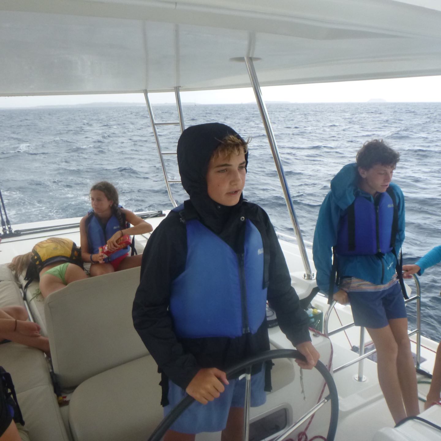 This morning, I woke up in my hammock to a crazy rainstorm. Holden then came up from the fox hole and talked with Mike and I about Koala facts. Our breakfast consisted of cereal and fruit. YUM! We then sailed over to George Dog Island to anchor for our first dive. After anchoring, we all hopped on the super dingy called Cirrus, which took us to the dive boat, Highlander. We then grouped up with our buddies and set up our dive kits. My buddy was Liliana, and our instructor was Tyler. The other groups were Katy and Amaya, instructed by Toby and Pearl, and Suki and Kennedy, instructed by Whitney. The advanced water divers, Dawson, Cam, Holden, Jovian, and Gavin, got to do a swim through under a cool arch led by Mike and Amanda. For our first dive, we practiced putting on and taking off our BCDs and weights in the water, flooding and emptying our goggles underwater, and losing and finding our regulator. We then did a small free dive around the reef. After our first dive, we got out of the water so the staff could do a tank run and refill our air tanks. Once the tanks were filled, the staff returned them to Highlander, and we re-kitted. For our second dive we practiced pulling an “unconscious” diver, ascending with your buddy’s air, and our Controlled Emergency Swimming Ascent (CESA). After everyone got all their skills done we headed back to Avizia, our boat, for lunch. Lunch was Mac and Cheese prepared by Suki and Pearl. We then sailed from George Dog to Marina Cay.