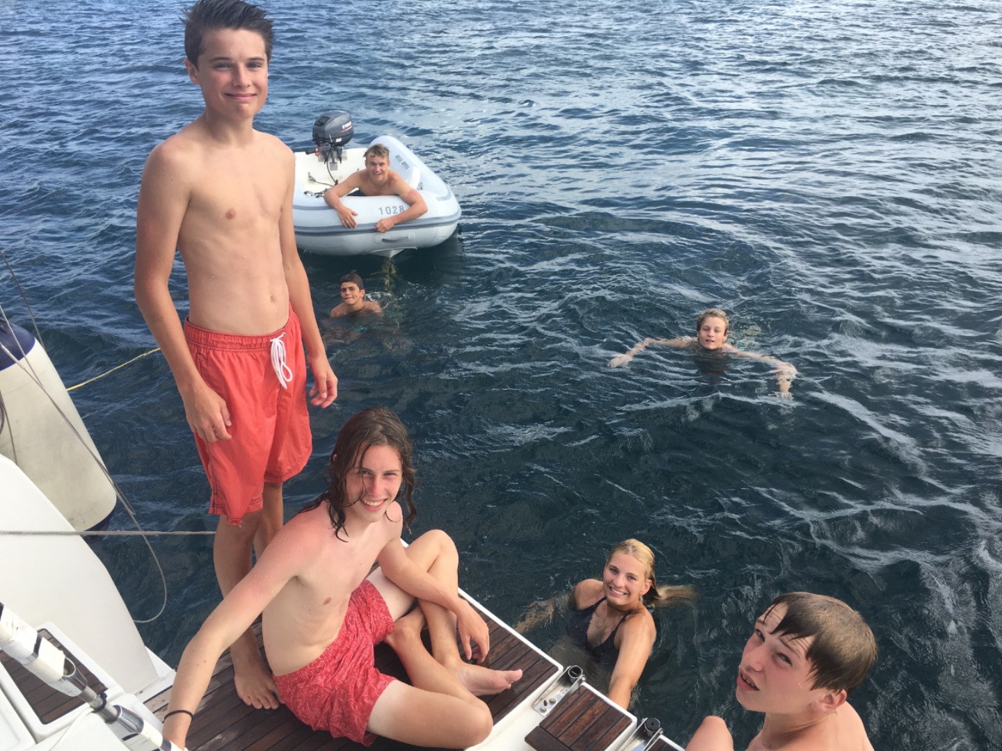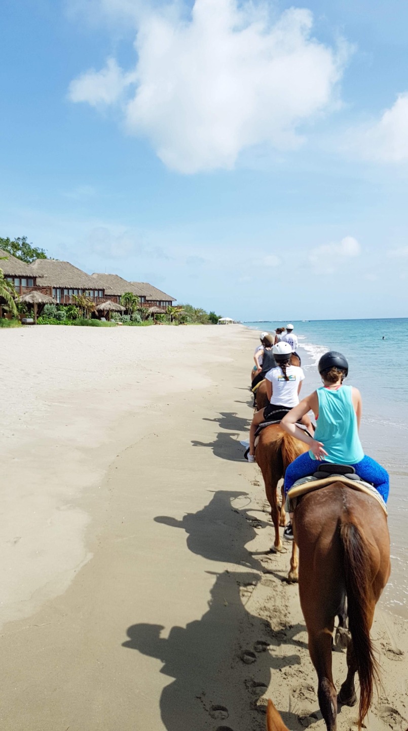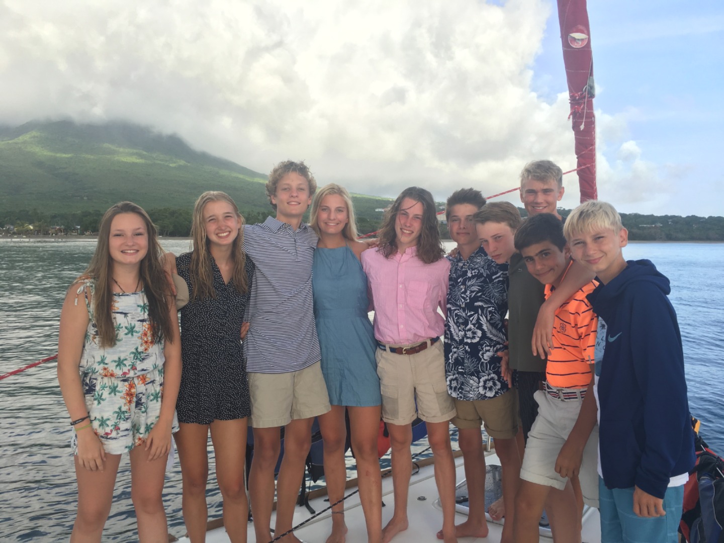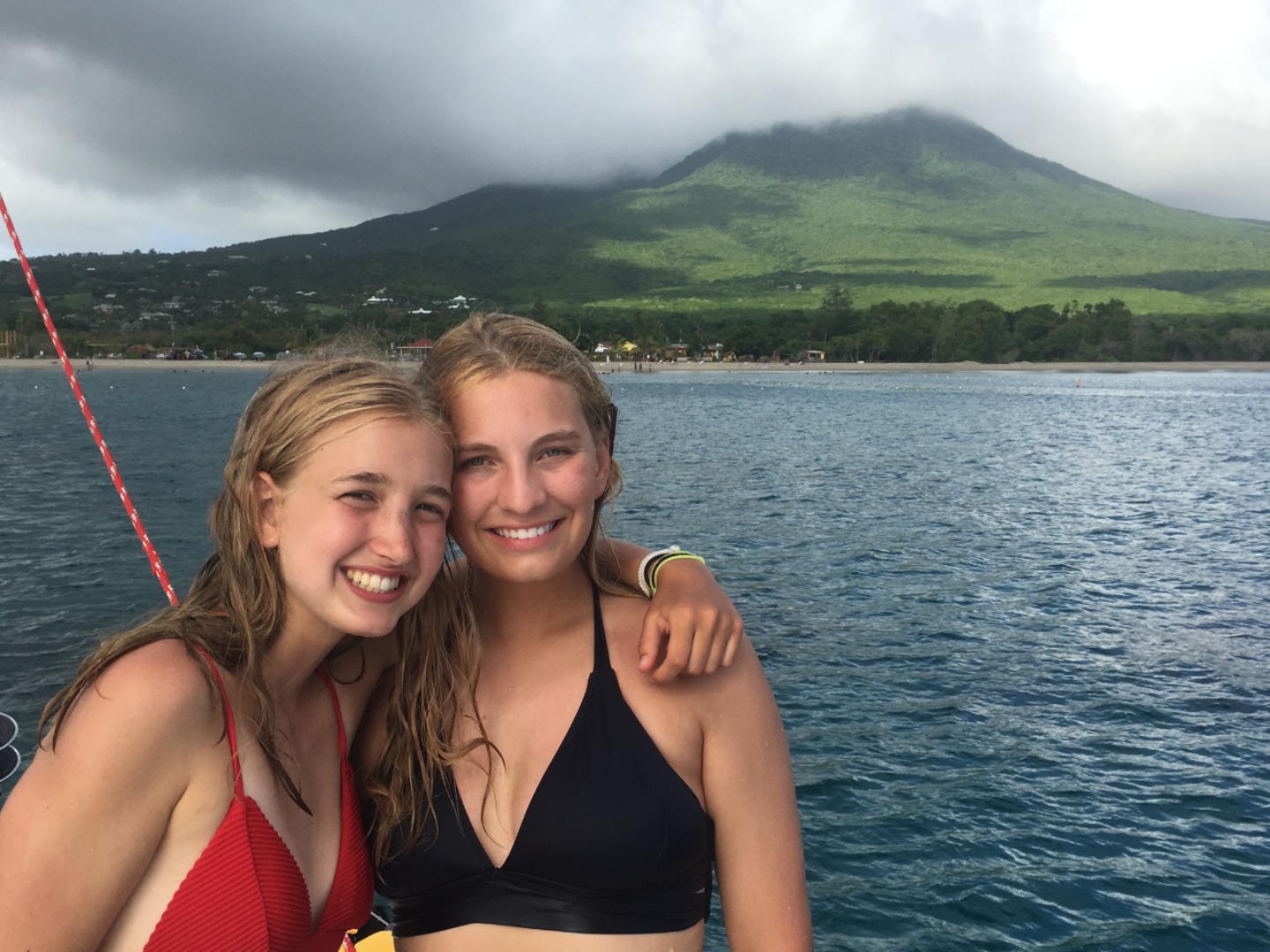 Today we started our day with a delicious breakfast. We had cereal and granola. Then as soon as we got finished with the dishes, we sent out on our journey. We got to choose to go kayaking, biking or horseback riding. I decided to go kayaking. We arrived in the dinghy and drove to shore to meet a taxi. The kayakers and bikers went in the same cab. Once we got there, we went our own way. The kayakers got in our boat and pushed away. We drifted down a half mile then the battle began. We had to kayak upwind. We started to go upwind and then we all started to splash each other. We got soaked! The fight only lasted a couple of minutes. After we finished kayaking, we decided to relax on the beach. The bikers came back after a little while, and we all went back to the boat for little free swim time and to get ready for dinner at Sunshine’s Beach Bar on Pinney’s Beach.