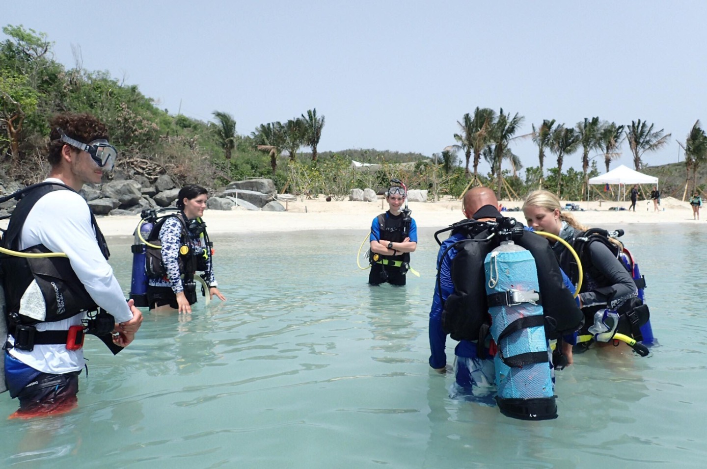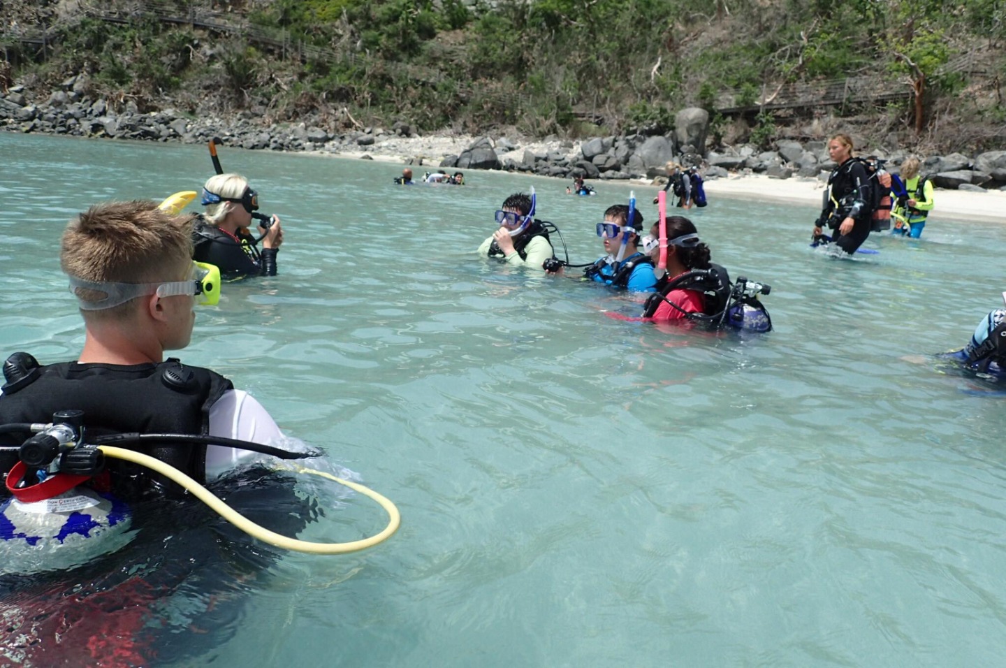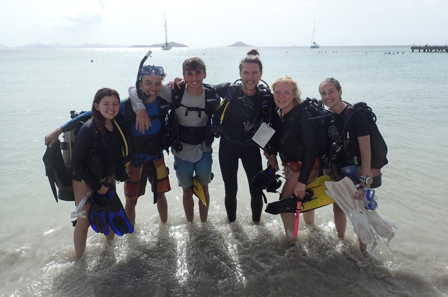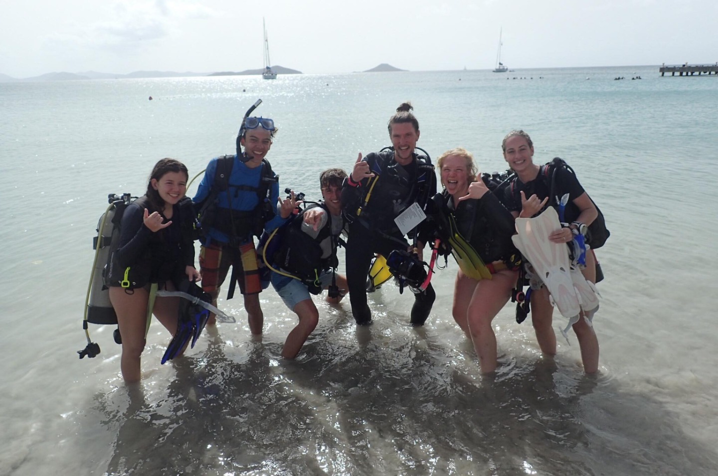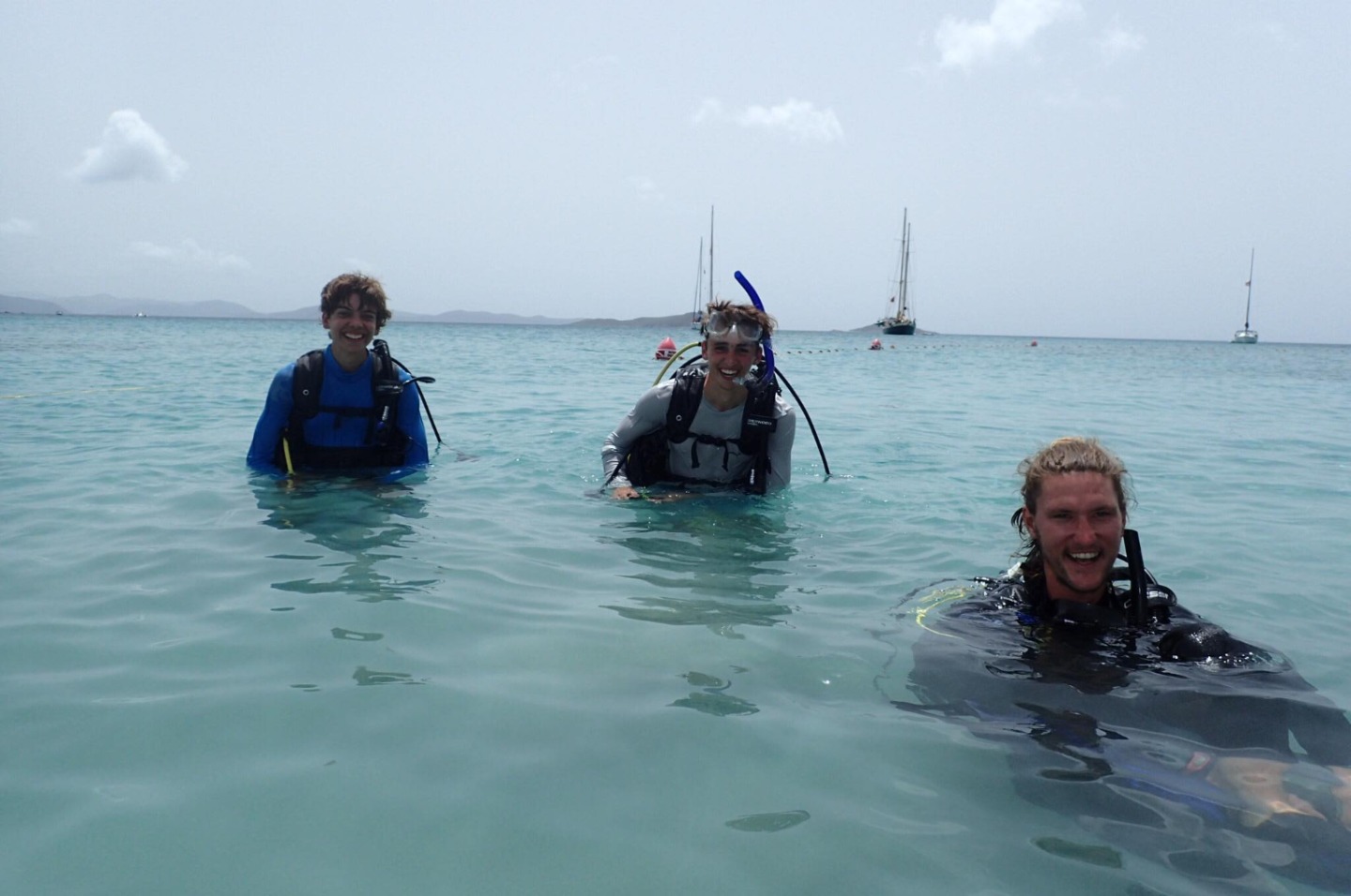 This morning, to no surprise, we woke up to some rain but it was indeed not a grey day! After a cereal breakfast, we immediately went to the shore to windsurf with Elise. Trust me, it harder than it looks! After jumping into the dinghies. We did some water sports in groups. Martin wowed us with his waterskiing and kneeboarding skills, and Will did some impressive slalom skiing as well. Lucia and I gave it our all, but it wasn’t enough. For the last activity of the rotation day, we did our first confined scuba dive in the bay with Kayleigh. We stayed at the beach and met some new friends from other boats. Back on board, we found ourselves to be a bit sunburned. We may need another day. Right now Lucia and I are sitting on my perfectly woven Flemish coil watching the sunset. The whole boat is listening to some great music while chefs make dinner. Hopefully, tomorrow will be another beautiful, sunny day. And hopefully, Lucia and I will get the chance to sing some more show tunes.