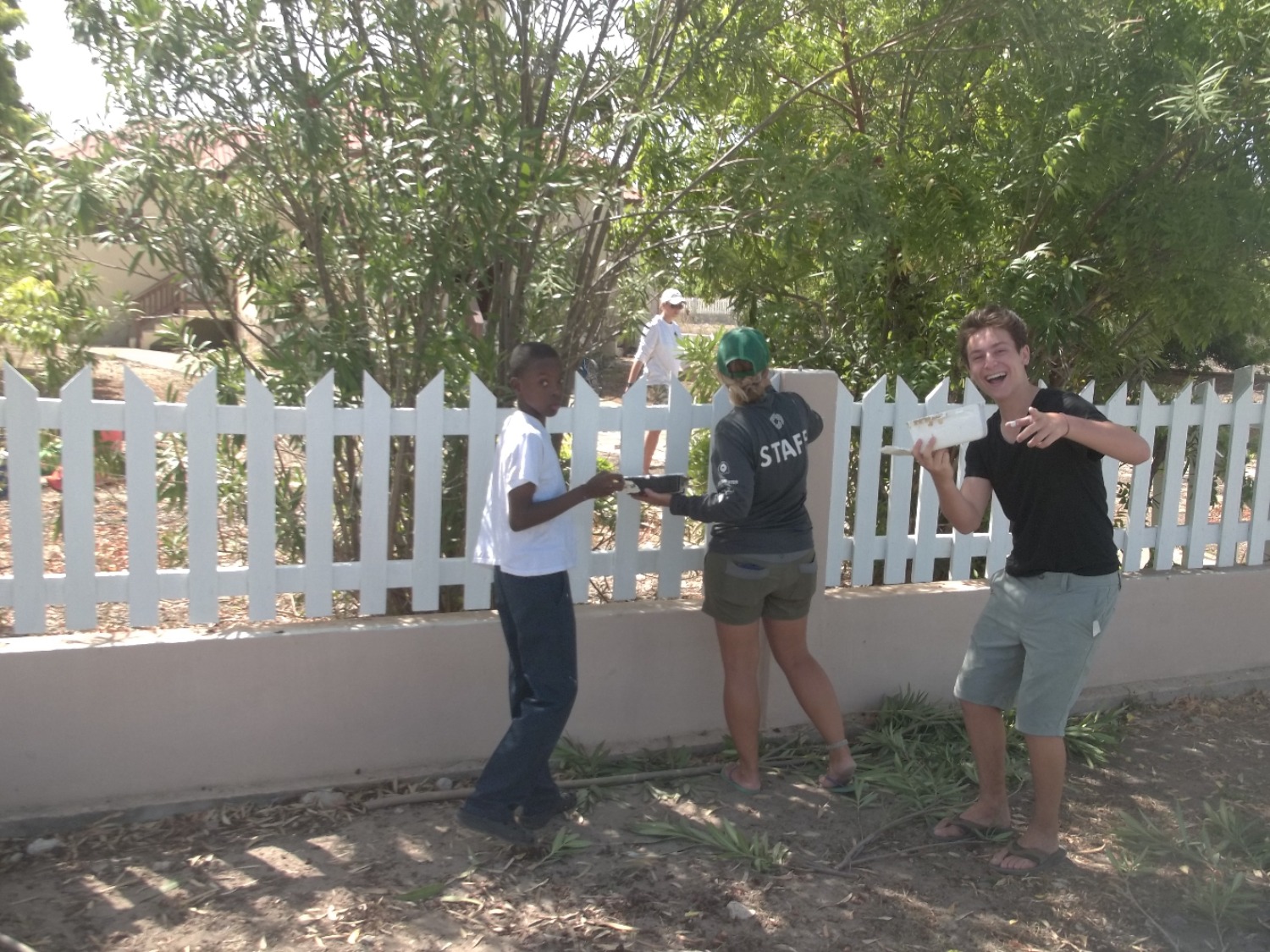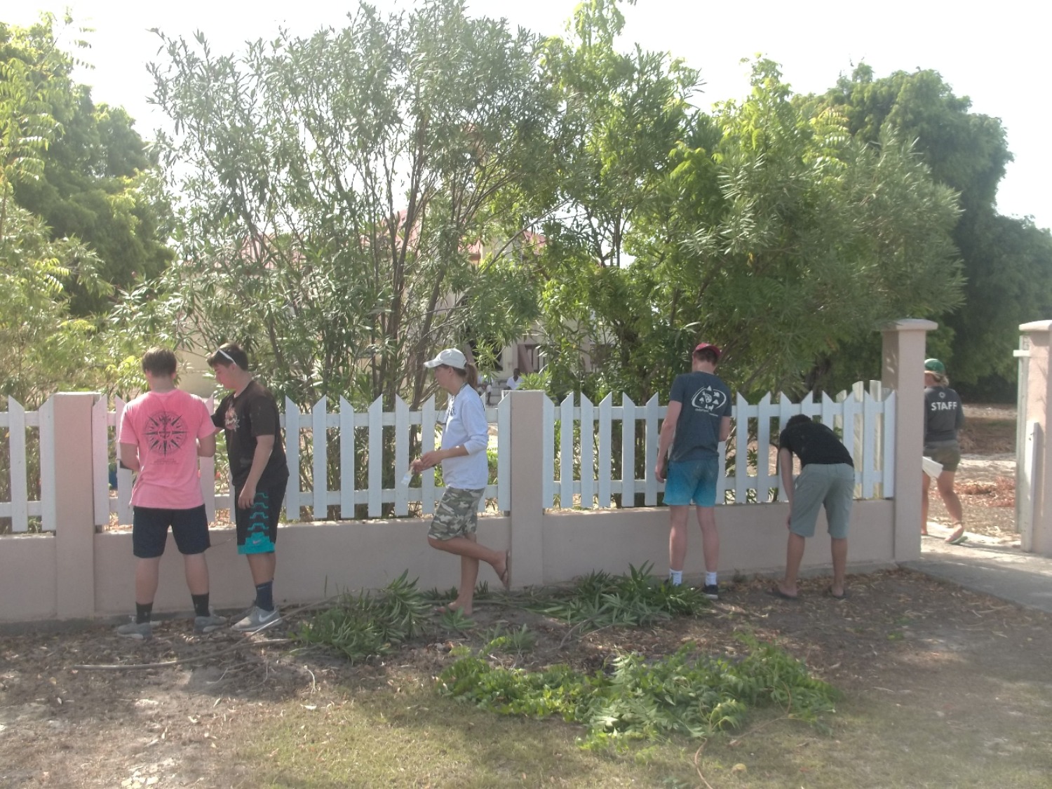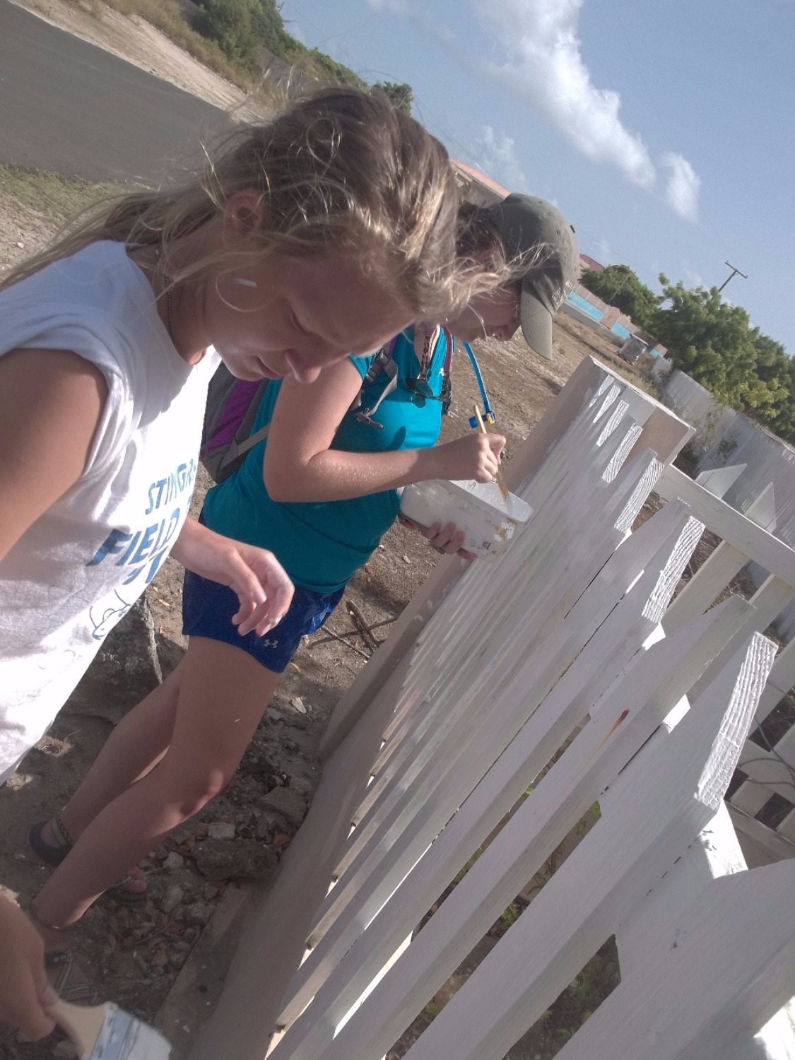 Today, we woke up to the usual Lion King tunes, early in the morning. A breakfast of cereal quickly breezed by, then we were off to start our day. We met our taxi after riding to the dock in our dinghy. Twenty minutes of a taxi ride had passed, we had made it to the day’s destination. Although the church was rough around the outside, the people inside were full of love and gratitude. Our job was to paint the entire front of the fence, so we diligently grouped up and progressed through the job in no time. While painting, a man who worked there did us a favor by trimming up all the branches that were in the way. Food and juice awaited us when we all walked back from a while of painting. These acts of kindness showed the Lifeworks team that we are serving. Once we wrapped up, we headed back to the boat. Sailing and an attempt at boat appreciation did not mix as most of us felt sea sick. Some laid on the side of the boat and some laid inside, but we all fell into a deep sleep. We woke up after a magical nap to a dock full of Action Quest boats. Dinner was made after showers and we all ate grilled cheese and soup. Then all AQ and LW kids met up on the island in a small open area. We listened to a very emotionally convicting tape of a man speaking on the topic of Life. The gist of the tape was how life should be lived in a way that is open, loving and experiential. After hearing it most, if not all, of the kids probably wanted to call their family to remind them they loved them. We all rode back to our individual boats and went to sleep under a bright full moon.