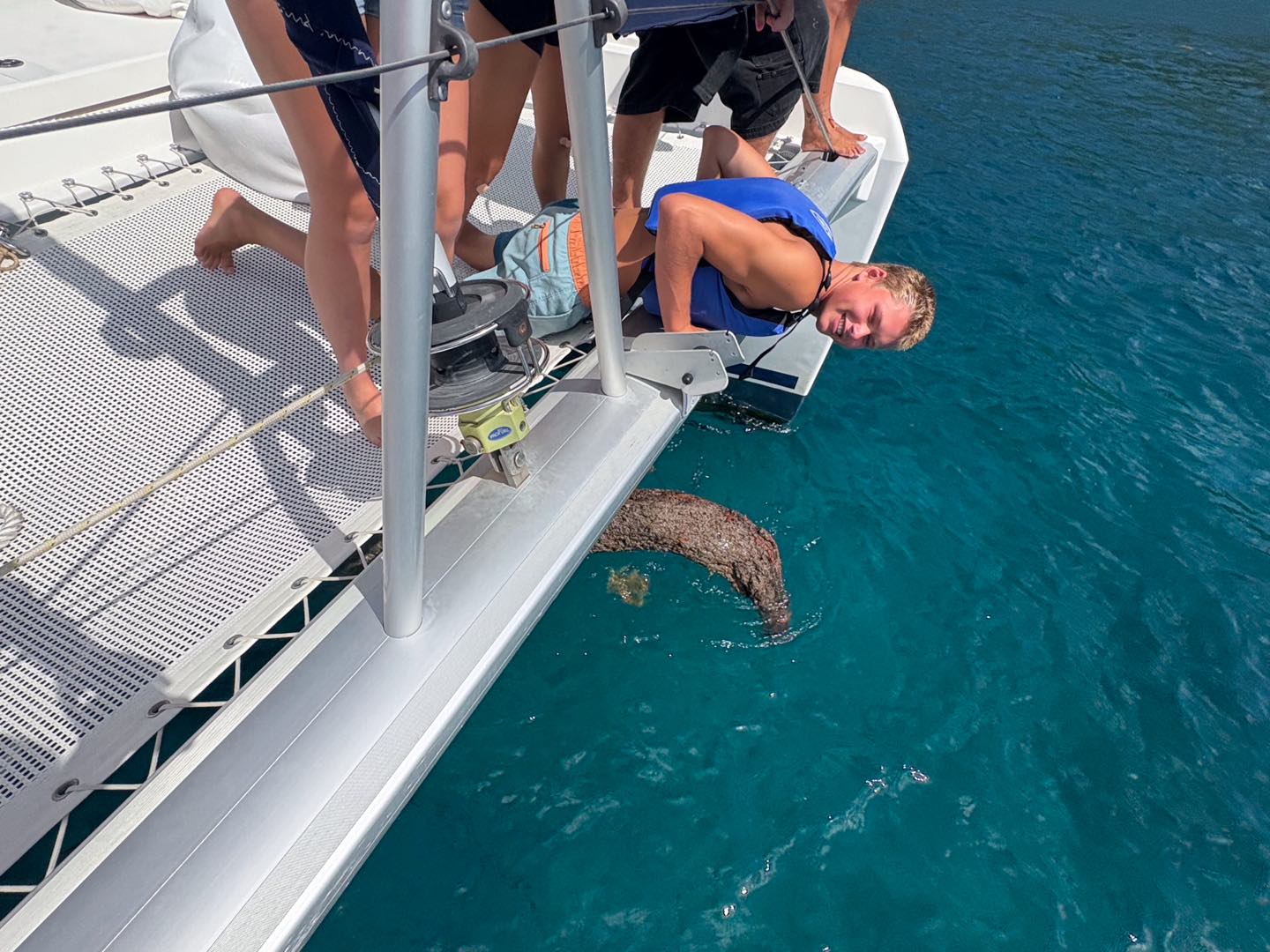 We had some good food, groceries, and memories. We got back on the boat and strategized our plan for the epic sandcastle competition. Despite Madi and Sadies’ great artistic skills, we finished in 3rd place. We made an amazing sand SpongeBob, and it got first place in our hearts. After that, we immediately took ocean showers and got ready for our 3rd BBQ. It was so fun, we got to get so many shirts (I got my family amazing gifts) and ate some awesome food. After hanging out for a couple of hours, we came back to the boat with Pirate Song and got to catch up about the amazing day. We all had so much fu,n and I’m sure we will all sleep super well tonight. Goodnight from Oryx and Lucy