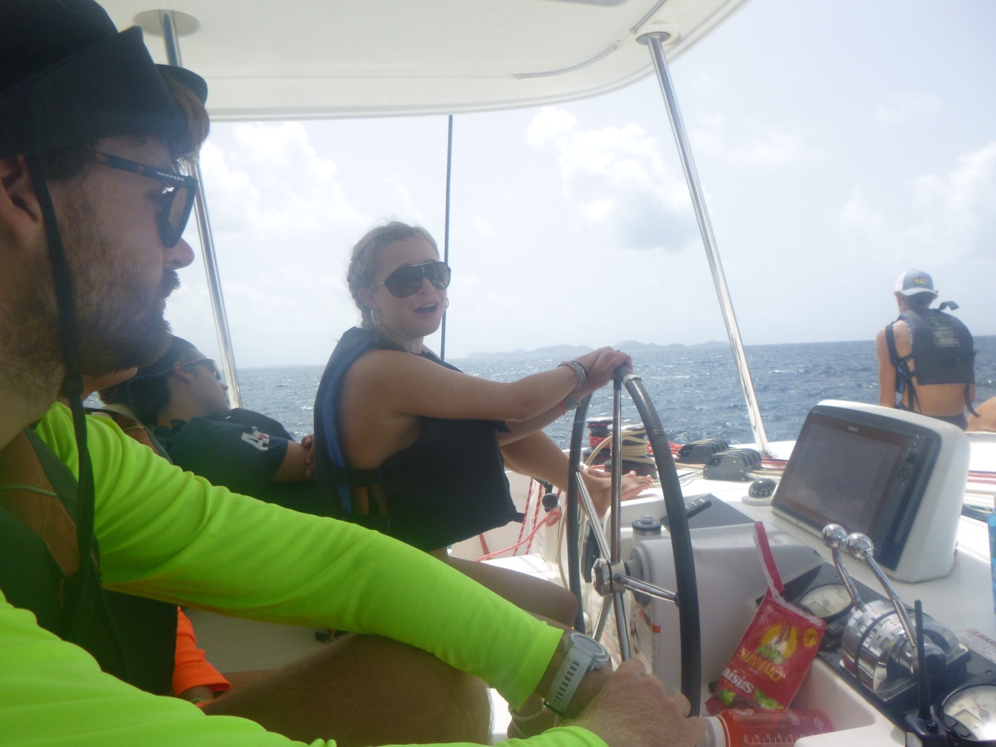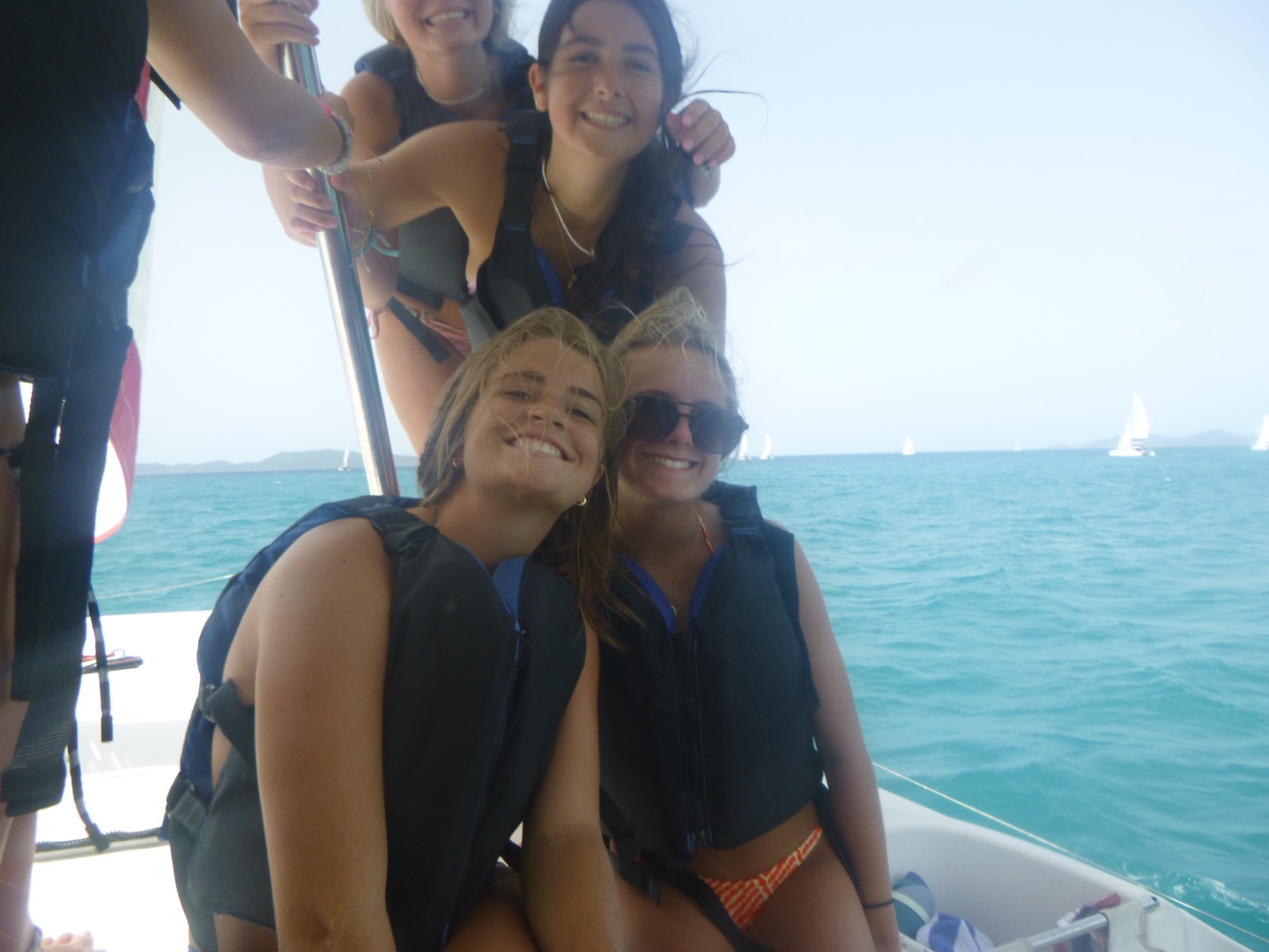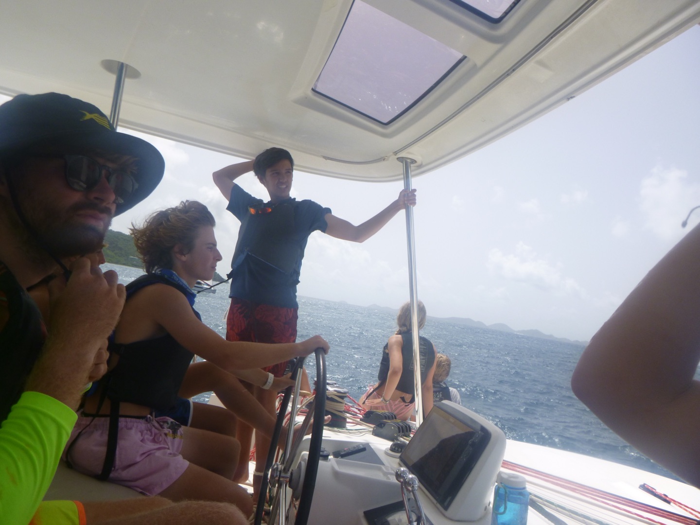 Hey guys, it’s Josie! Today was a bittersweet day as our trip came to an end. We started our final day with the classic wake-up song, Bikini Bottom Day; Lucy and Ella W hit the notes for Sandy’s part perfectly. I was the skipper today so me and Matty P hit a side quest over to Mike’s boat to get the instructions for the big sail race. Wilkes and Thompson were still asleep when we got back, but we started playing some hype music, and our hype team, Lucy, Hopie, Lulu, Ella S, Ella W, and Meredith, woke them up and made sure they got pumped up. Grayson tacked the boat perfectly (tacking is a super cool sailing term for super cool sailing people like us), and Matty P was so proud. While we all started to get sleepy, Joshua decided to take the wheel, and his awesome sailing skills took us from last place to fourth place.