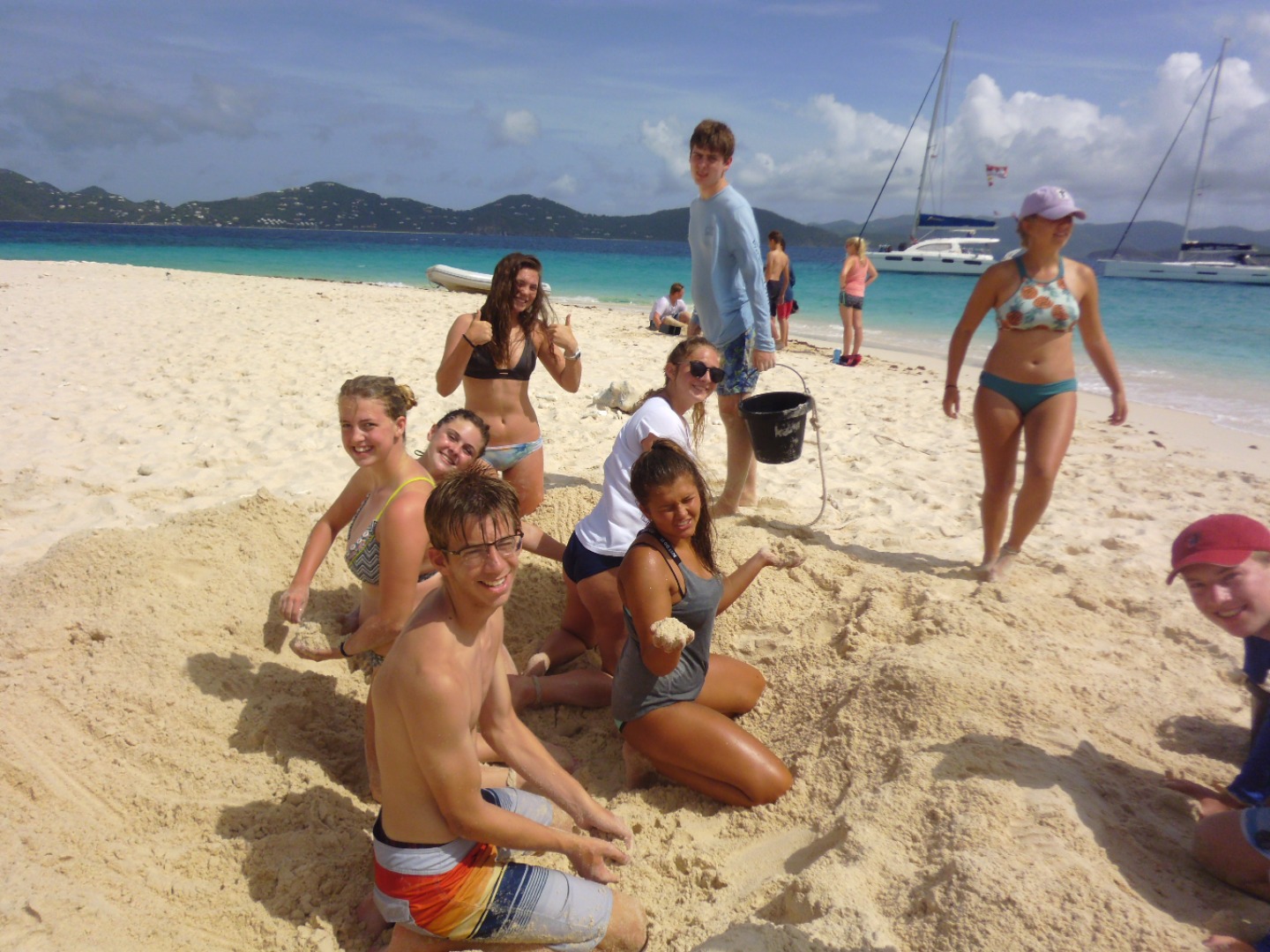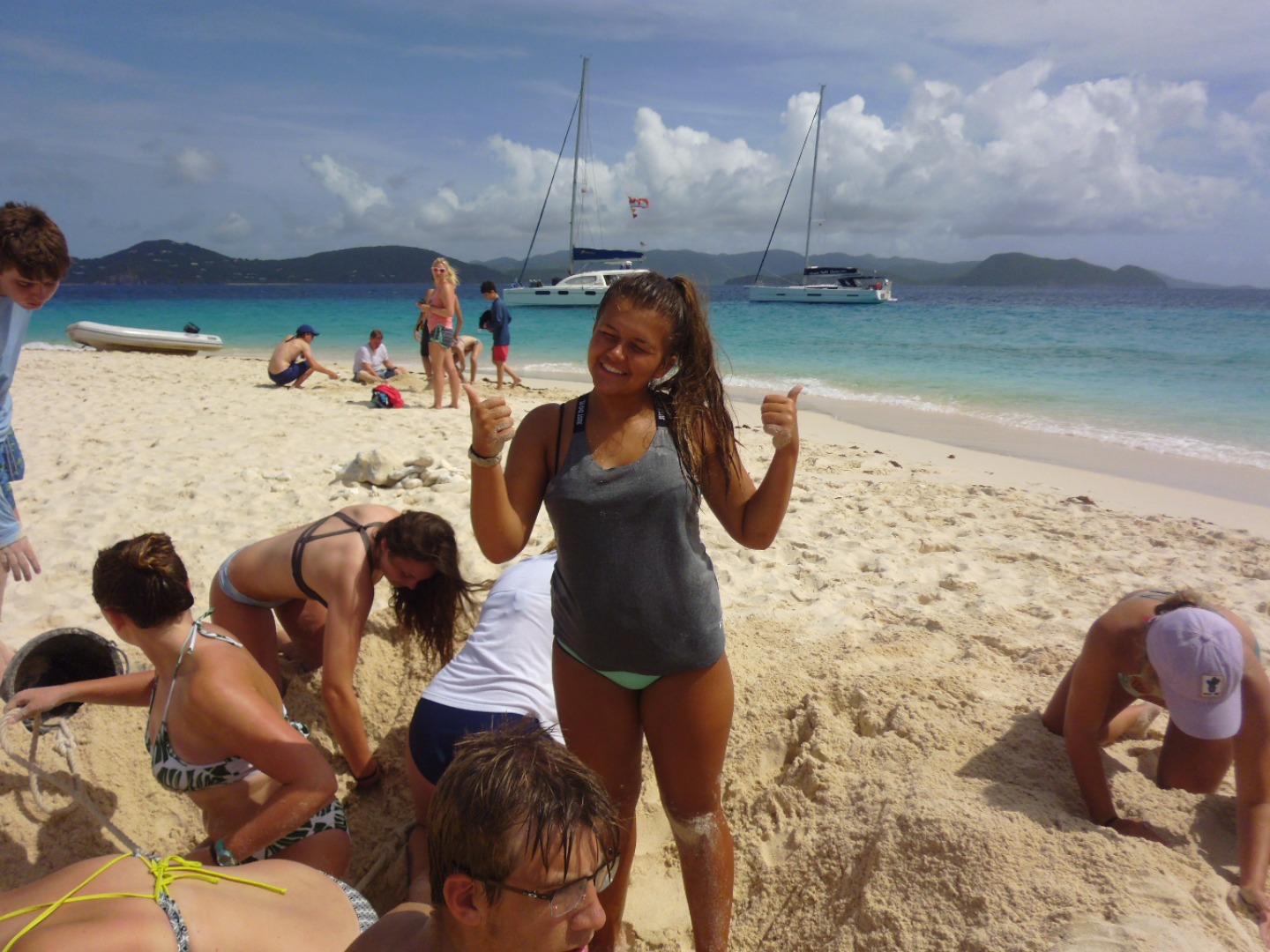 This morning I woke up at 5:30 to the lovely sound of Avery telling me “it’s hike day”. After getting all of our hike gear set up, we head out for the dock where Mike briefed us for the best day ever. Once we set off on the hike, I realized it wasn’t as easy as I expected it to be. Let’s just say hiking up a mountain is kind of difficult. At the top, after signing the book, Haley and I made our way down in what was probably a quarter of the time it took us to get up. I had a killer grilled cheese and got to call my mom for a little bit! Then we went to an epic sand castle competition where Happy Our’s plans of building a Jacuzzi didn’t go as planned. It ended up looking like more of a creepy hut. Now, back on the boat, everyone is getting ready for our BBQ at Sydney’s Peace and Love and I couldn’t be more pumped. Stay tuned to the blogs to see which shipmate gets their entire head braided into cornrows tonight!