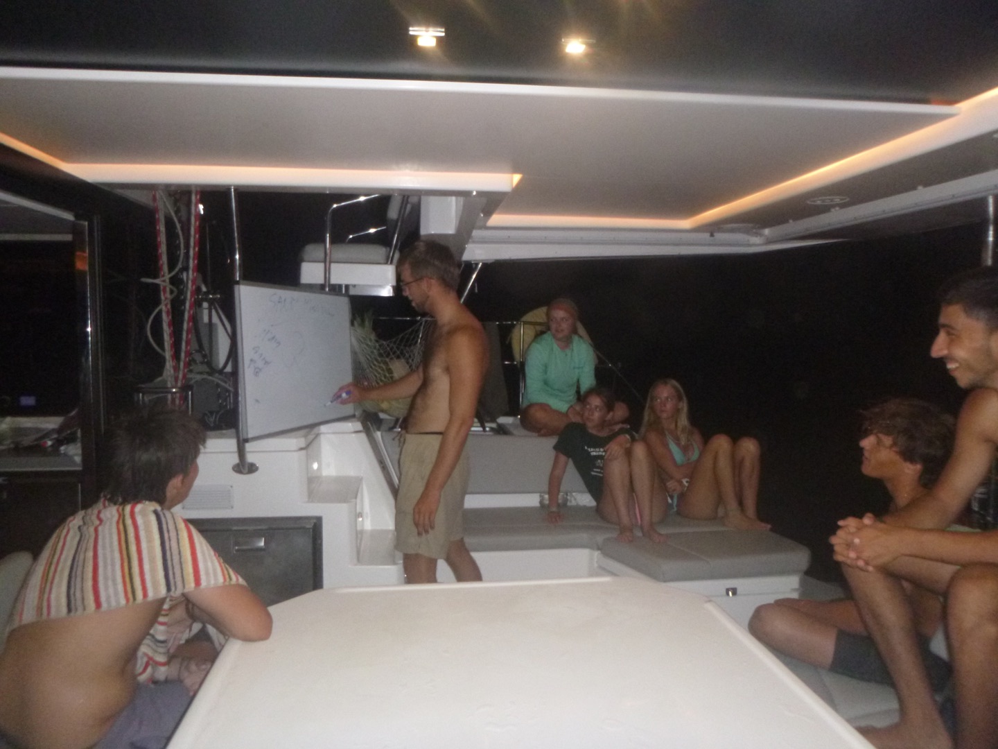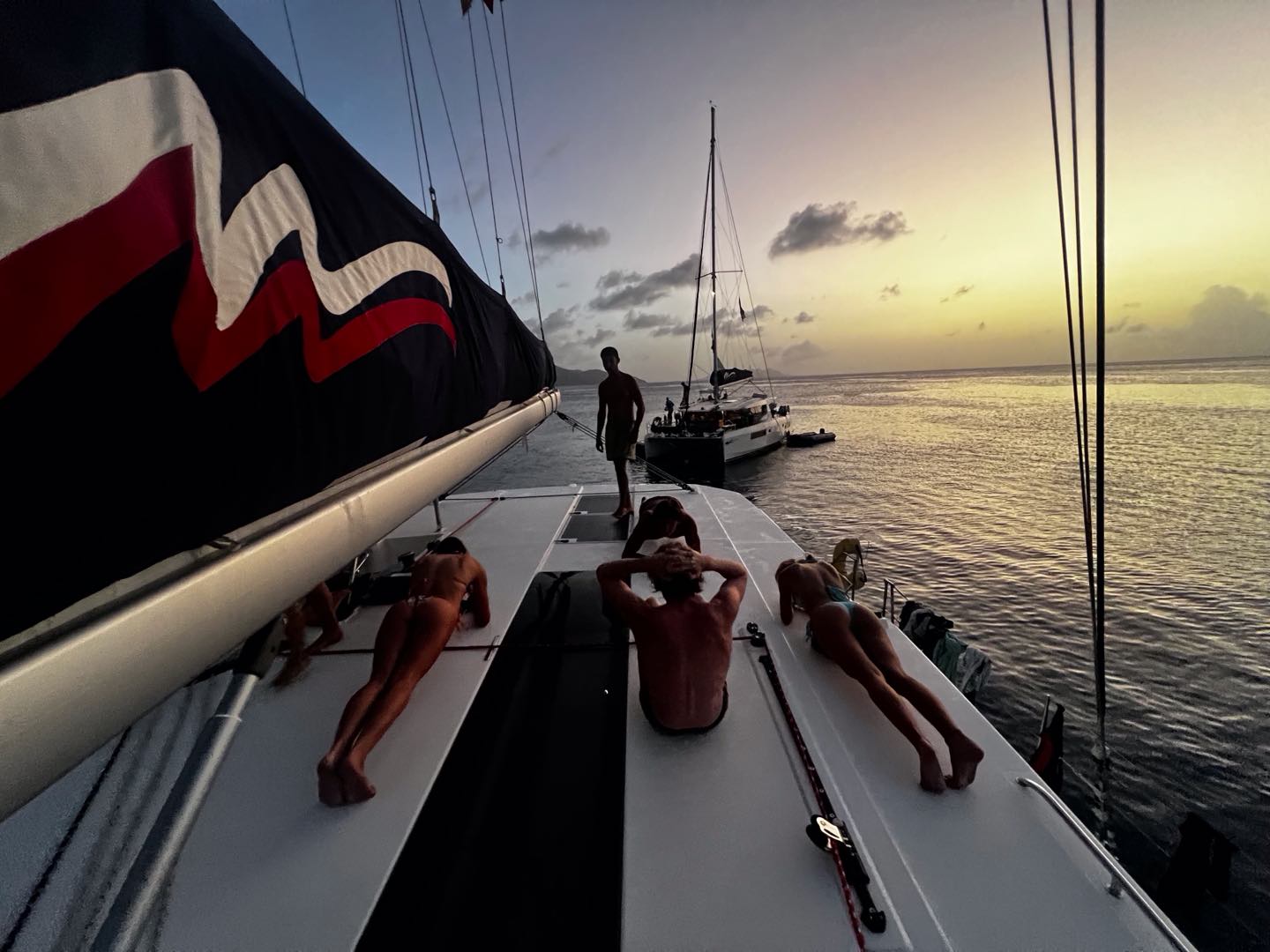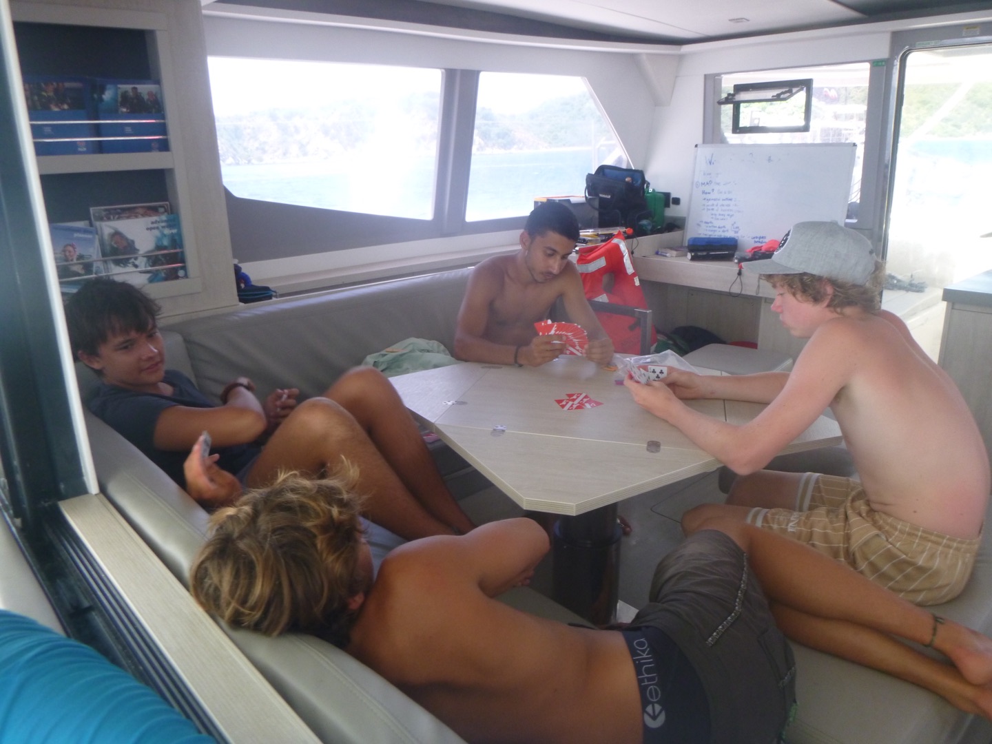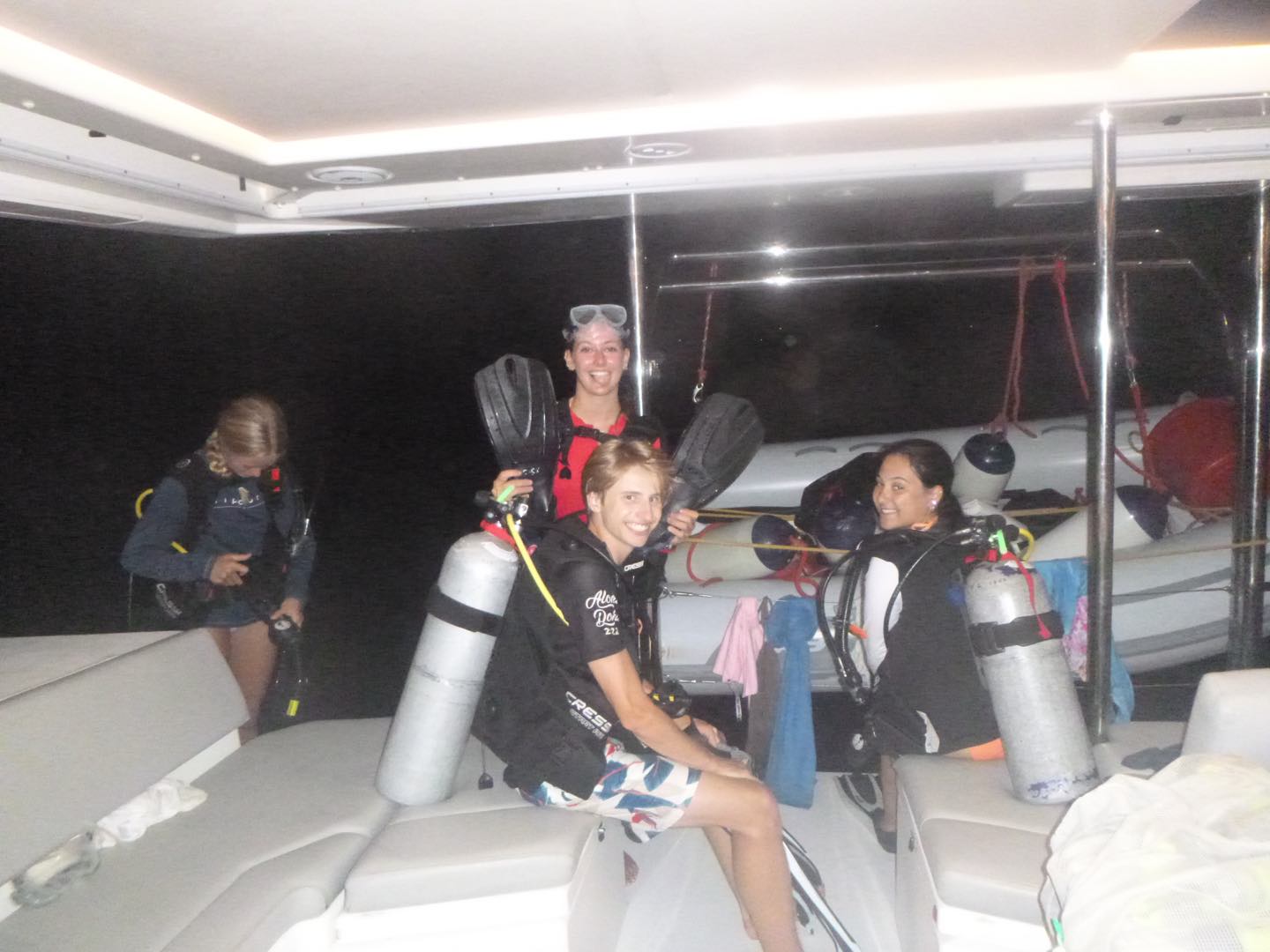 Meanwhile, the dolphins had a fun dive and messed around exploring the ship, but afterward, they gathered information for their reef dive and mapped out ecosystems. After the first dive, lunch was made, which was Tuscan white bean soup, although some had PB&J! Quickly after, we kitted back up and went down for our second dive of the day, in which we actually entered the wreck! Calvin had an amazing time, and the wreck itself was so impressive. It was just an amazing experience. I can speak for everyone when I say we could all not be more grateful that we are finally wreck diver certified!! It was a very nap-filled day as most of the sailing time was spent in a boat-wide hibernation, so there was not much to report in that regard. With that being said, we set sail again and are currently in Musk Melon Bay, prepping for our third and final dive, a night dive, which we will be navigating alone and earning our specialties! Darby and Teddy, as I am writing this, are doing six laps around the boat in a very impressive show of athleticism that is making me, for one, tired. Until next time!