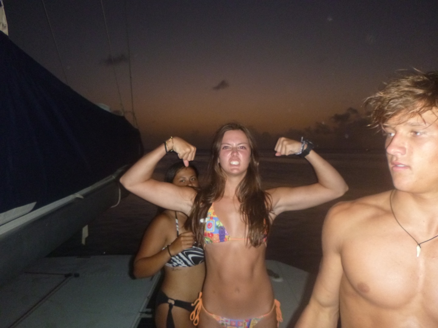 Welcome back to your children’s daily proof of life! This morning, PJ3 awoke to the fact that staff had deserted us for a staff meeting, and the only provisions left were pancakes. Alivia and Gabriel stepped up to the task and made more than enough as our boat seemed to have a very hearty appetite (Darby.) The pancakes were absolutely delectable, and as soon as they were all eaten, Lauren, Jules, and Kieran fell right back to sleep. Jake, Megan, Dave, and Gordon returned all in one piece with news that we were setting sail and the day ahead of us was about to be very action-packed. Dive 1 out of 3 took place at the wreck, Kodiak Queen, and everyone was buzzing with excitement at the fact we would be able to penetrate it. The Neptunes practiced tying lines on the wreck, and Ruby and Emma did a great job mastering the bowline knot and lining different points on the boat!