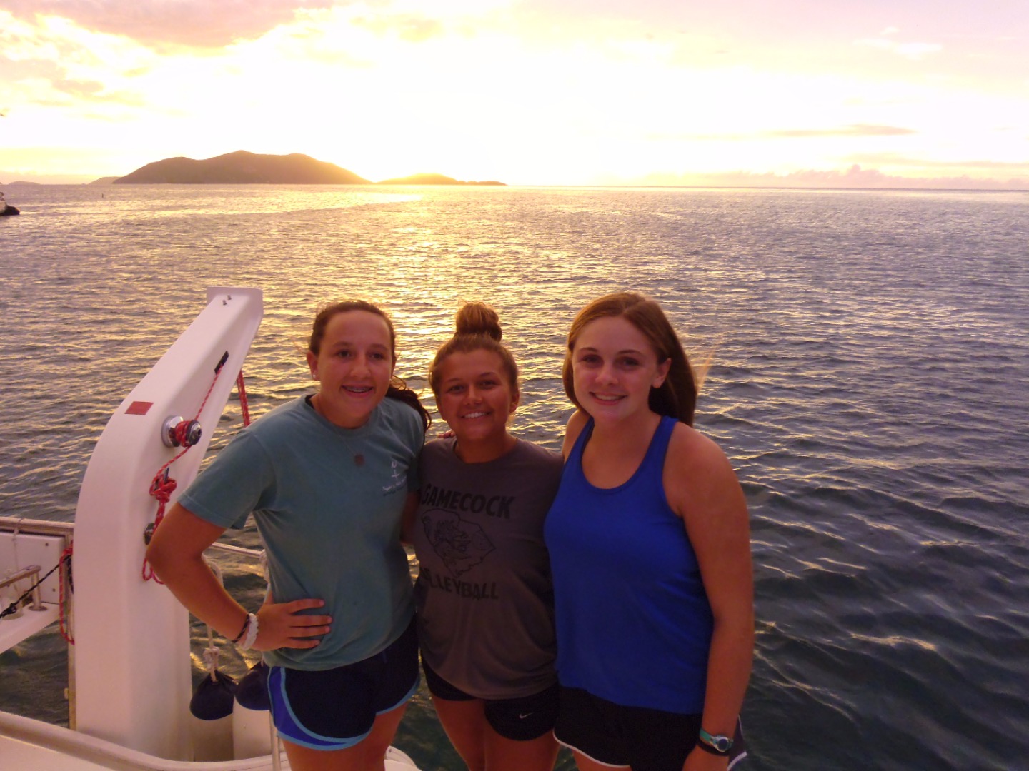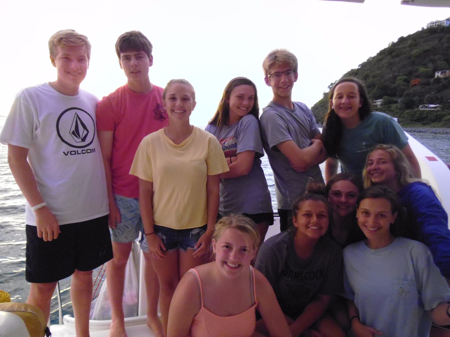 Today is Day 14 and we’re still nonstop here on Happy Our. We woke up and ate breakfast before heading to the Pinnacles for an independent dive. The Dolphins collected data for their research project and the Neptunes had a fun dive. It was swelly and rainy, but the dive was still awesome. Jake and I saw a pufferfish and others saw lionfish. We had quesadillas for lunch, which were delicious. After lunch, we sailed over to Shark Point for another fun dive. This site had an awesome swim through, a huge lobster and a gnarly barracuda. After our second dive, we sailed over to Cane Garden Bay to refuel. We’ll stay here for the night because we’ll wake up early tomorrow morning for our hike up Mount Sage followed by “burgers in paradise”. I’m excited for dinner followed by a movie and even more excited for an awesome day tomorrow!