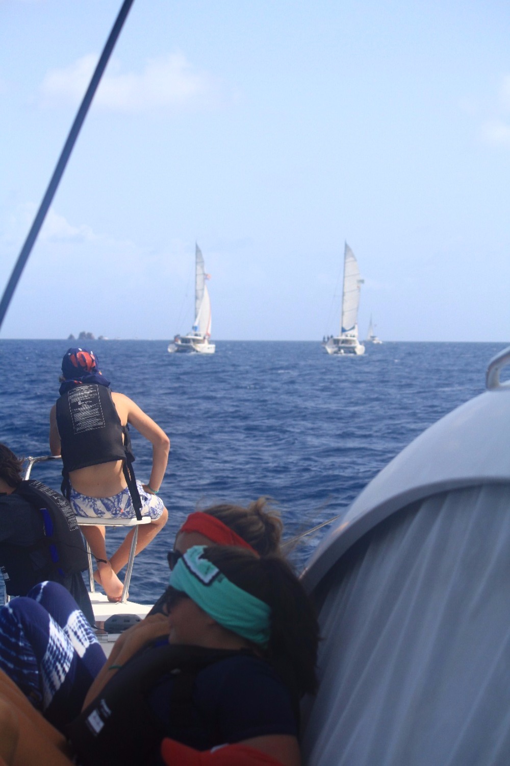 Today was an exciting day since we woke up from being able to sleep in. We woke up to some new music and cleaned up our beds and by the time, we finished that, it was breakfast time. Shaun was kind enough to make us pancakes, but of course being Shaun, he added his own twist to it. Instead of putting the pancakes in a pan as he made them, he decided to throw them in the air for us to catch our food. After breakfast, we started preparing for our big day, Race Day. We came up with a game plan and decided to go with a pirate theme. Some went all out and others wore a bandanna. It was very eventful and competitive. We came in 3rd, which wasn’t ideal, but we worked as a team and tried our hardest, which in the end is what matters. When the race came to a wrap, we anchored at Norman Island and had a relaxing night. Jules made us brownies/cookies and we spent the night writing each other notes. I am sad this is coming to an end but I am so grateful for this opportunity.