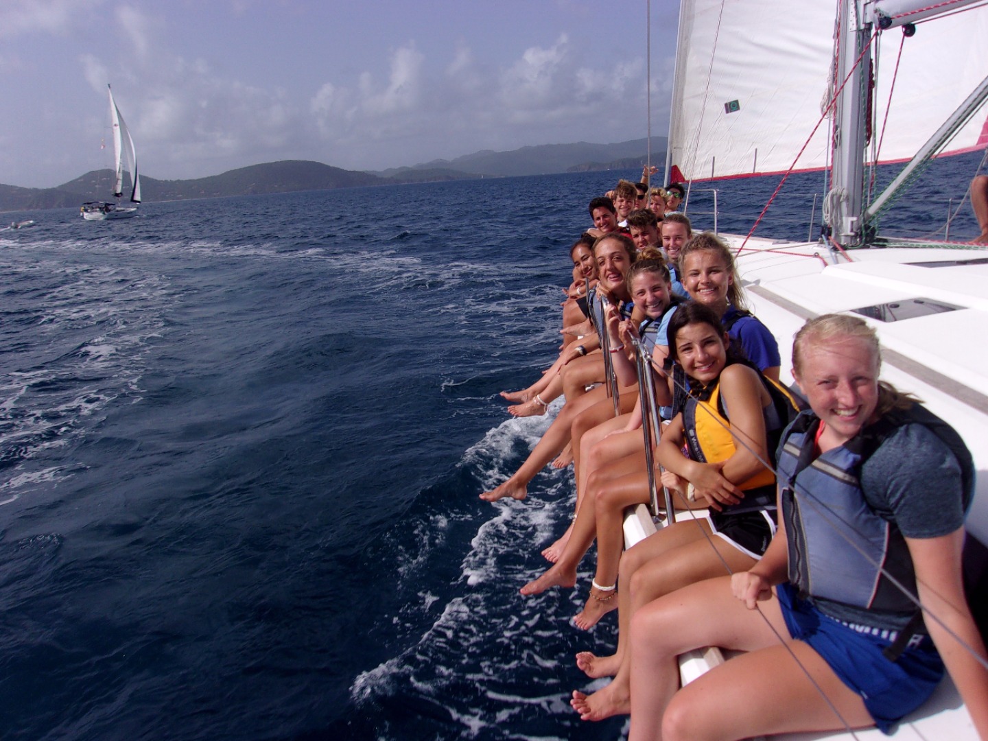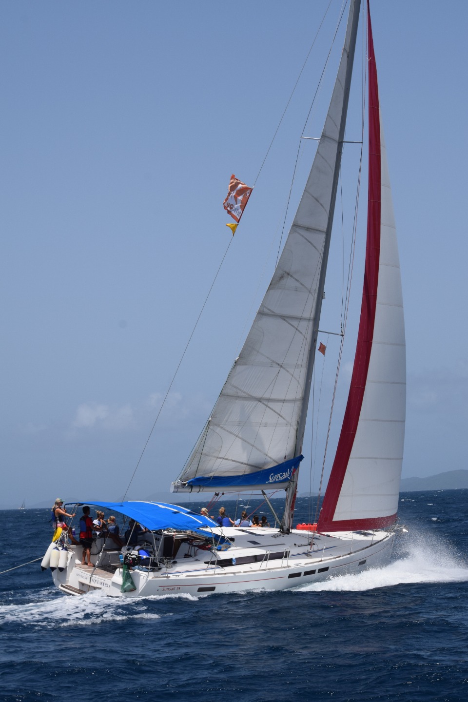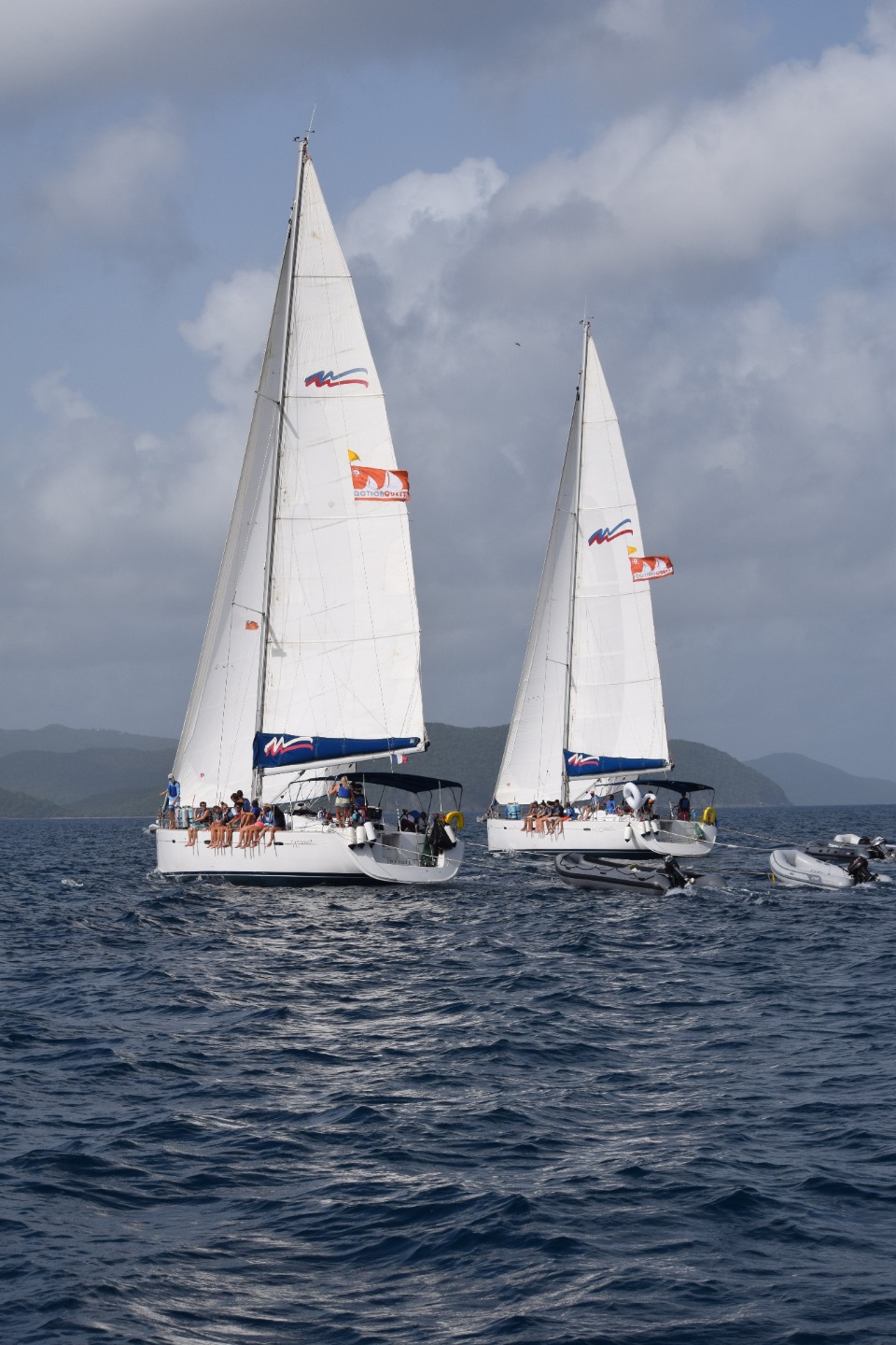 Today we were woken up earlier than expected and had to clean the boat before the first race started. Once the boat was clean to Griff’s standards, we lined up by Sandy Cay with the other ActionQuest boats for the first race. We sailed down to West End and finished in second place. We were then given shore time to get lunch and go to the shops on the harbor. After lunch, we got ready to sail again for the second race. We went from West End to Peter Island. Throughout this race, we had to tack multiple times and managed to come in second place again; giving us the best race record of the day. Everyone enjoyed the chance to put all the skills we have been learning over the past 16 days into play and came out of both races with great outcomes. Once we pulled into Great Harbor, we anchored, had dinner and completed our final sail chat. We all enjoyed getting to sail as a team today and are looking forward to the last few adventures we have together!