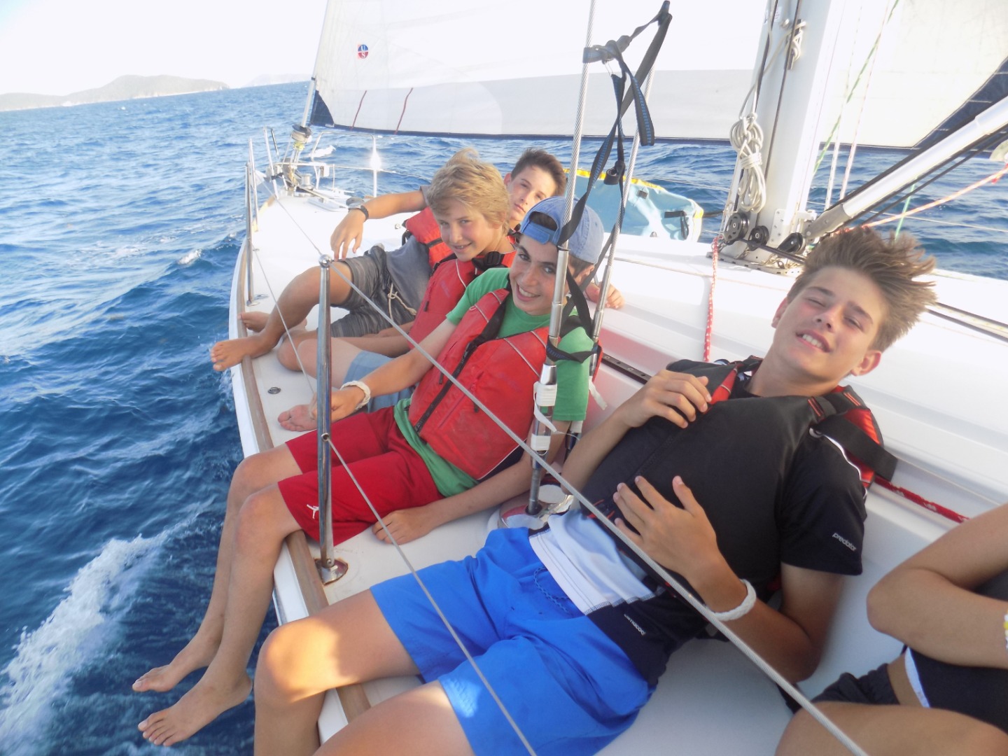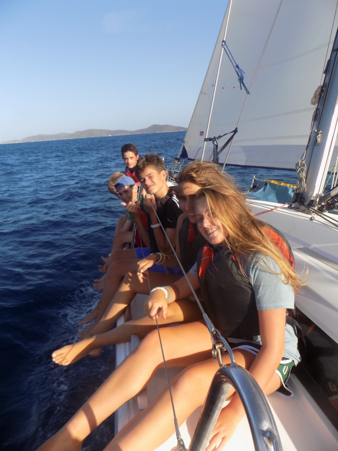 We sailed from Sandy Spit to West End on Tortola. We practiced tacking, jibing, keeping the boat straight, and having fun. We had a blast. Then we had shore time. There were two restaurants and they both had great food. Then we prepared for the race. We had to sail upwind all the way to Peter Island. It was a good 2.5-3 hour sail. It was a close competition between the crew of Sans Souci and Blue Tide. We had the lead for most of it, then they passed us. Gabe reminded us that if we Kiae, it will get done somehow (Kiae is a type of screaming that is loud and gets us working). It worked! We pulled back in front of Blue Tide and took the victory. None of us could have done it without each other, but we still won! We dropped our anchors and started the process of preparing dinner. It was Mexican night tonight! Our chefs and staff helped us prepare an absolutely scrumptious dinner. We finished off the night with a sail chat. Overall it was a great day filled with hard work, companionship, and camaraderie to help us get the win!