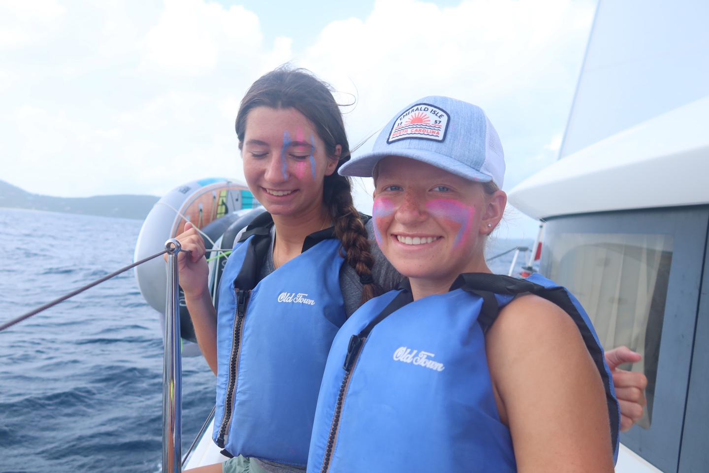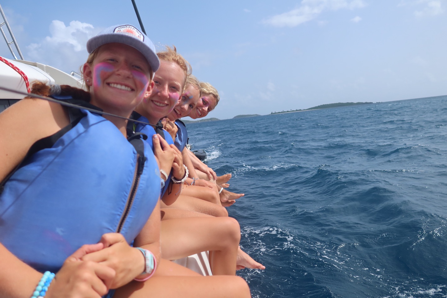 At 12:00 AM sharp, the meteor shower peaked. The whole boat stayed up to celebrate the beauty above us. Although I was able to see a few small shooting stars, as soon as I turned my head to grab a snack, the most astonishing shooting star screamed through the sky (apparently). The next morning was an early start for me. As today’s skipper, I would have to make my way to Beso Del Viento to discuss lucrative, top-secret information. Before anyone else, I had to eat breakfast alone to make it to the meeting. Soon after, my co-skipper Nat and I dinghyed over to Beso. Upon arriving, we saw four other pairs of skippers representing their boats, and the competitive aura set the tone for a serious meeting. We conversed about the upcoming race through the opening in Sandy’s Spit all the way through the passage between Thatch Island and Tortola (not even sure if those are the right names).