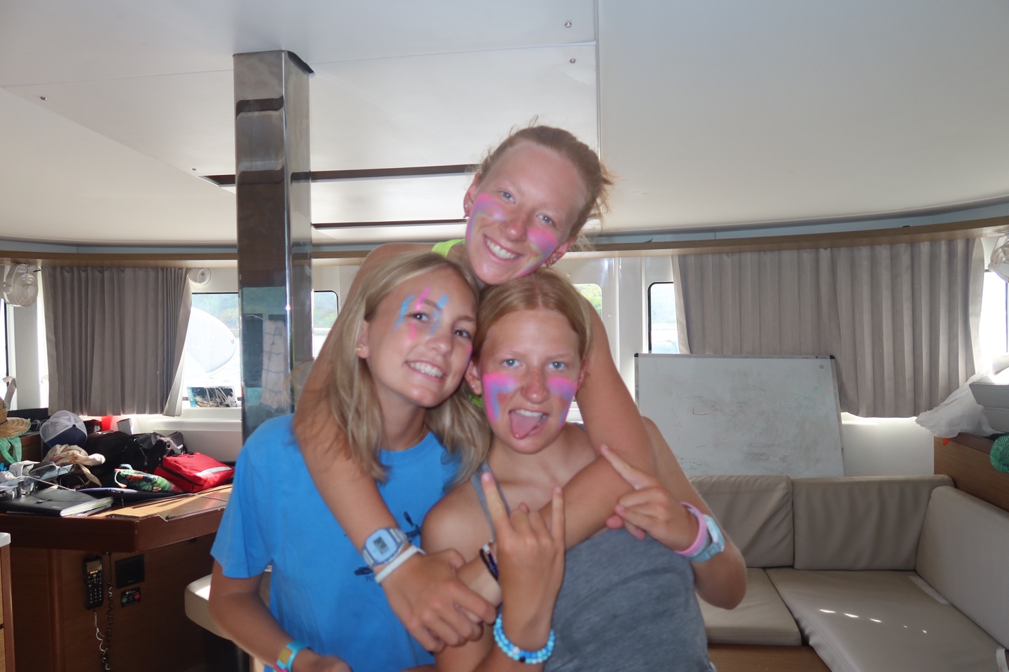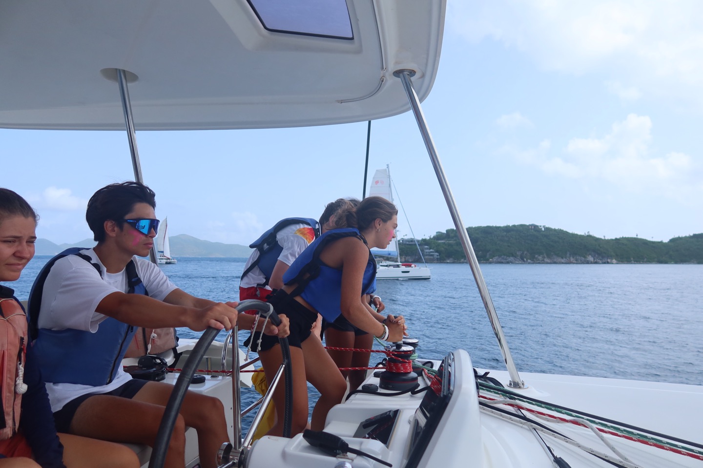We tried to plan the route on a map to suddenly realize that we had the wrong map. We swiftly retrieved a new map and wrote numbers on small paper notes to decide our starting position for the race. With luck of the draw and intimidation tactics, I was able to secure Avizia with the number one spot (the most windward position and best for sailing). We then made our way back to our lovely Avizia and I spread the word of our good luck and our starting position. We began to set up our boat for the race when we heard a loud creaking sound and noticed that our main sheet wasn’t rising. We found that the main sheet was caught in one of the lazy jacks and that the reefing lines were all tangled. This mishap caused a 10-minute delay to the race. We motored to our starting position, and before we knew it, we were off! Seven of us were stationed by the jib sheet to unfurl it as fast as possible. With our boat’s combined strength and my skill at the helm, we were off to a good start. Highlander and our boat were the first to pull ahead in a fiercely contested race for first. Odessy, Shamwari, and Beso lagged behind us with their faulty sailing skills. In the end the race for first was still between us and Highlander. After being neck and neck with Highlander, they were able to scrape past us and win first place with an unfair advantage through their HUGE mainsail. Overall, we definitely outdid ourselves and totally destroyed the other boats which were similar to ours.