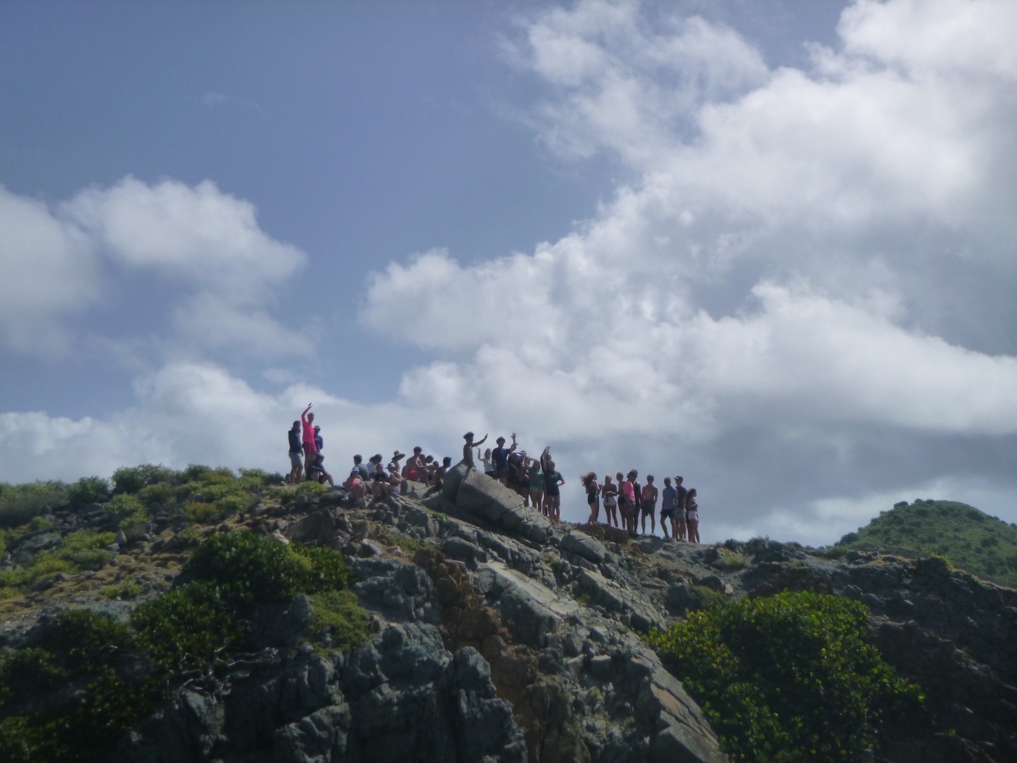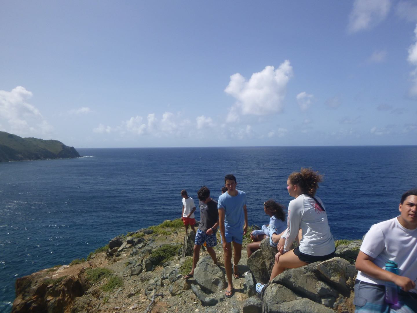 Hello from Good Times! Our boat’s name perfectly describes our very important day here at Action Quest: RHONE DAY!!! We began our morning bright and early at 6 am to Kyler’s famous “Rhone Day Playlist.” This, along with the sunrise accompanying us on our sail to Salt Island, was truly an unmatched energy. Once we arrived, we were told the mysterious story of the sinking of the Rhone and embarked on a scenic 30-minute hike. The crashing blue waves against the mountain rocks got all of us even more excited to dive into the Rhone. After our hike, it was finally the time everyone had been waiting for throughout the past nine days….. RHONE TIME! We quickly got our gear set up and plunged into the water. The Rhone, still beautifully preserved even over 100 years later, was thriving with coral and marine life of all kinds. Nina, after being unable to dive the Rhone for two years, finally equalized and got to enjoy all of the beauties of the wreck! In a similar vein, Ben was able to successfully equalize and reach the bottom after having some slight ear trouble.