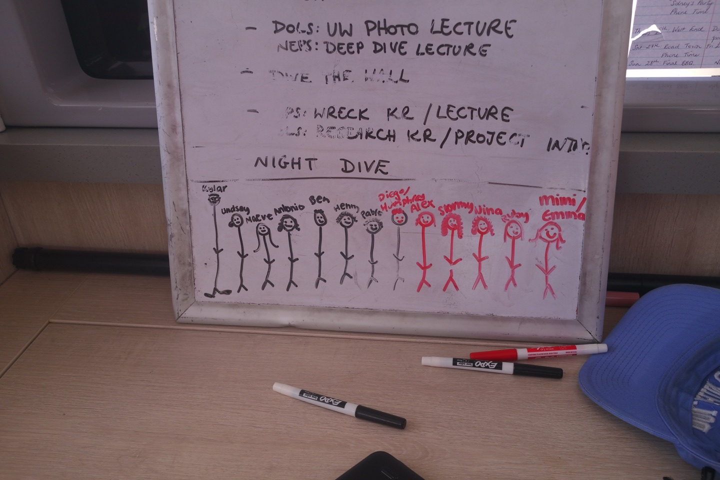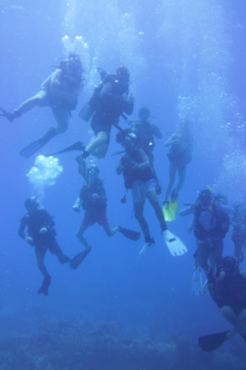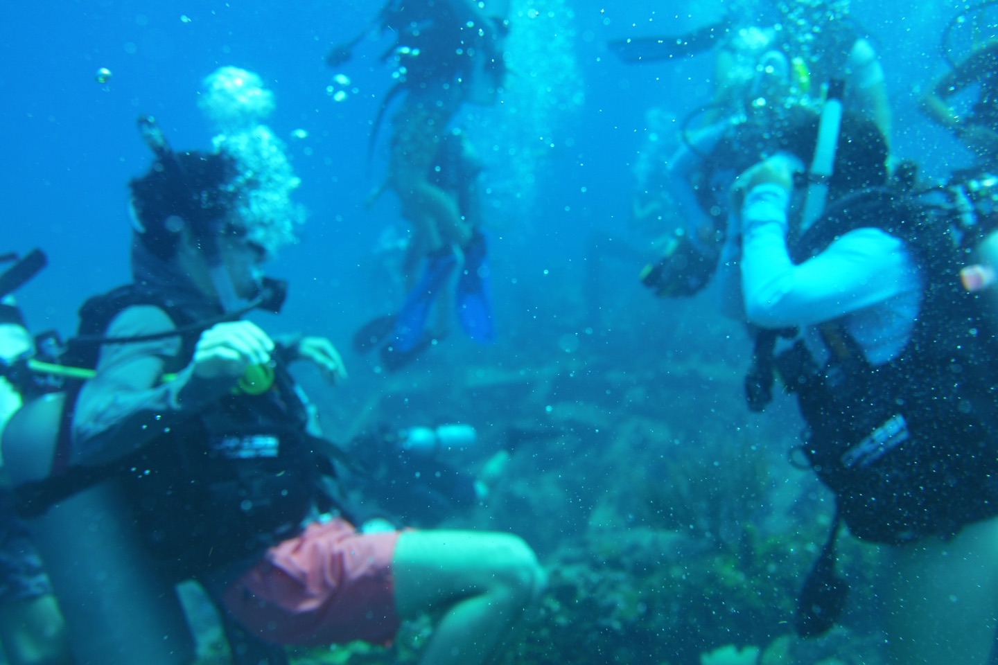 On our dive, Emma spotted a large barracuda checking out the Rhone, and the rest of us spotted things like a large spikey lobster, eels, and tarpon swimming above us. During our dive, we were able to swim under and through the prop of the sunken boat, a true test of our buoyancy skills. After this amazing aquatic adventure, we had some well-deserved downtime, and all of the Good Times shippies took a long nap, and for Ruby, her third of the day. After this nap, Henry finished reading the book he had been working on and passed it to MiMi to begin reading. The adventures did not end here, though; three of the dive side boats latched together to form a mega raft! And later, two more joined. During this, Humphrey gave wakeboarding another chance and finally got up for almost five seconds! Speaking of accomplishments, the “Dynamic Dingy Duo,” Stormy and Alex were taught how to drive a dingy and save someone if they were to fall overboard. Even dinner today was exciting: Mexican night! We had four cooks in the kitchen perfecting our food: Humphrey, Emma, Pablo, and Diego, all working together in perfect harmony. Soon after dinner, it began to rain, but that didn’t stop MiMi, Emma, Pablo, and Diego from jumping into the water and perfecting their backflips off the dinghy. Tomorrow is another early, big, and fun day at Action Quest (Pablo’s birthday and laundry day), so it’s time to get settled and wind down for bed. Goodnight parents!