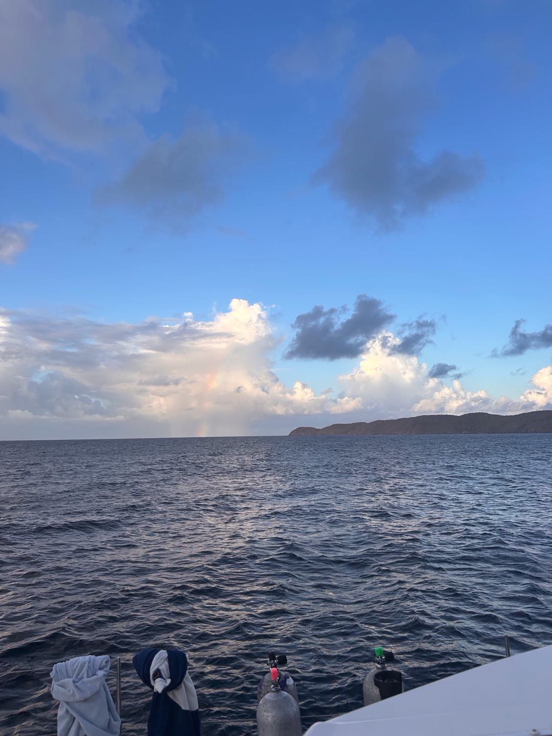 Today was Rhone day! (Yayyyy!). We started the day with a 4 am sail over to the Rhone dive site, where Mia, Joey, Grace, and Amanda consumed enough caffeine to last them a week. Then them, the dive masters, and other staff members went on a dive where they saw a shark, a turtle, and an eagle ray (without me). Afterwards, everyone else aboard woke up and ate breakfast (cereal). Immediately after we all got ready to dive the wreck of the Rhone (Yayyyy), both open water and advanced people got to dive together and with the dive masters, which was pretty cool. In the water, the current was crazy strong, which was pretty annoying. We descended and got to the wreck, which was freakin awesome. We got to dive both halves of the wreck, which were covered in coral and lots of cool fish and things. We dove along the length of the ship and were planning on doing a swim through, but the current was too strong, so we couldn’t.
