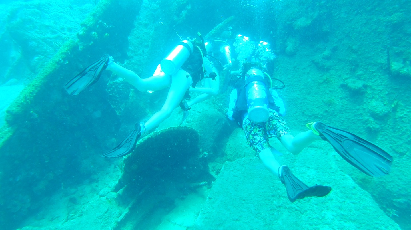 Pearl and I (Katy) woke up in our cabin after a very, very long night of running around the boat to Suki, tickling our feet and saying, “RHONE DAYYY.” This day was supposedly the best day of the whole trip, and I can confirm it definitely was. The Rhone was a ship in 1867 that hit a bunch of rocks in front of Salt Island. Everything is super rusty and full of coral and fish. There was a TON to see. Pearl and I jumped out of bed and walked up the stairs to a buttery and sugary smell of pancakes. The chefs today were Suki and Andrew, the dream team. Every meal they cook is always so good. I already knew today was gonna be so much fun. We quickly sat down and finished up our meal so we could head over to Highlander, the dive boat. I threw on my sun shirt and got ready to dive. We got to Highlander and set up our equipment. This was the first real dive where we didn’t have to do any practice skills or anything, so I was so pumped. The groups were split by open water divers and advanced open water divers. So Amaya and I were in one group, Kennedy, Pearl, Gavin, and Suki were in another, with Lilliana and Andrew being the last group of open waters. And Cam, Dawson and Jovian were the only advanced divers so they got to actually swim through parts of the shipwreck while the rest of us just swam around.