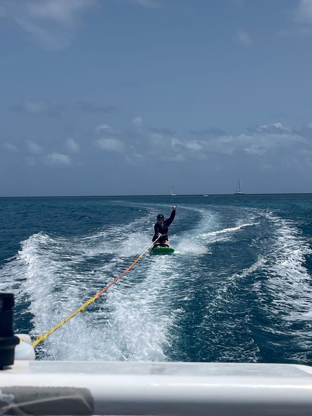This morning, a few of us woke up on the roof, having only slept a few hours due to limited space. Everybody woke up to another day packed with activity. First, we started off with some diving knowledge, specifically learning how to use the Recreational Dive Planner. After a good bit of waiting, we got to doing some water sports, where I did an aquatic Houdini off the dinghy. After we had some Mac and Cheese for lunch, we got straight to paddle boarding for 2 hours, where we sat around and chatted for most of it after capsizing each other for the first little bit. Then the highlight of the day came, when we went snorkeling in some shallow waters. There, we spotted three sea turtles and a stingray, as well as a collection of other aquatic life down there. We had garden burgers and wrapped up dinner with our nightly dance party. And that marks the sixth brilliant day upon the Oryx :).