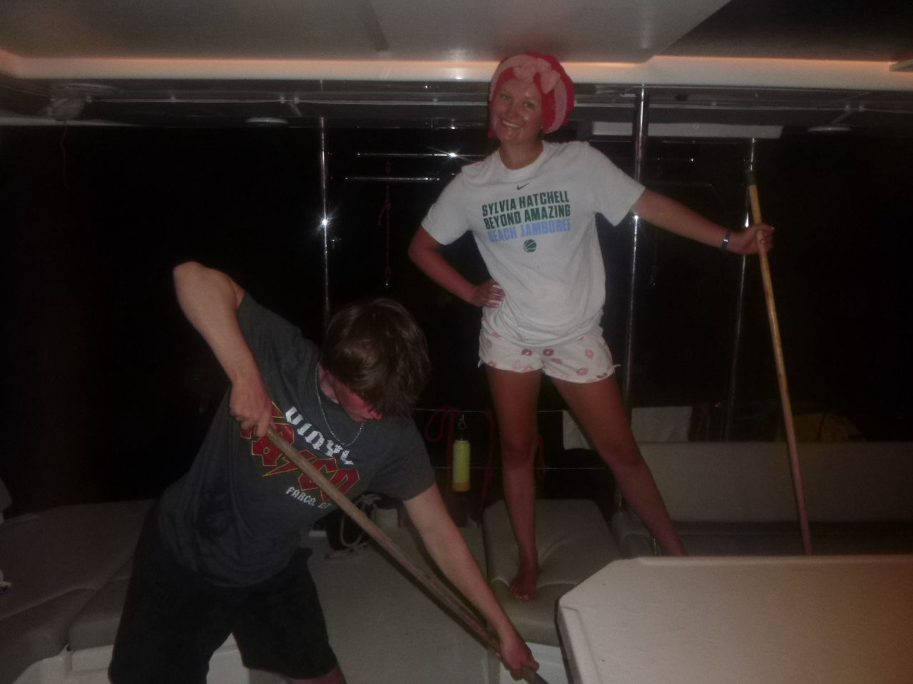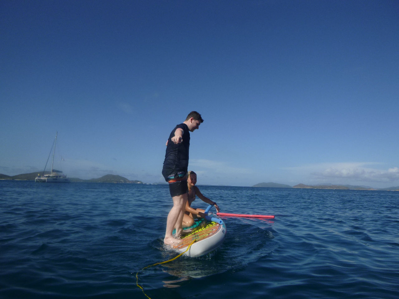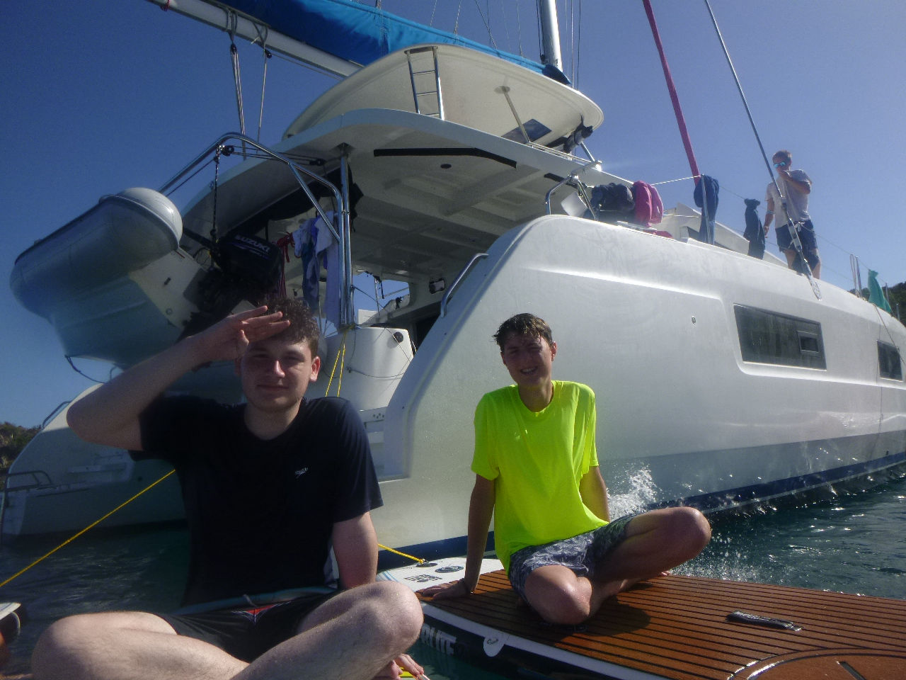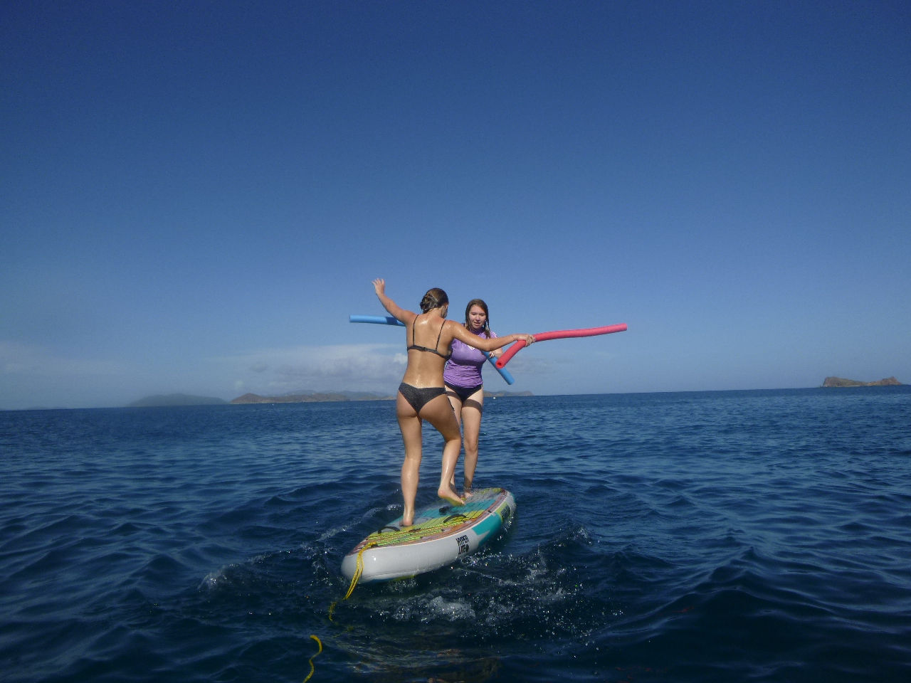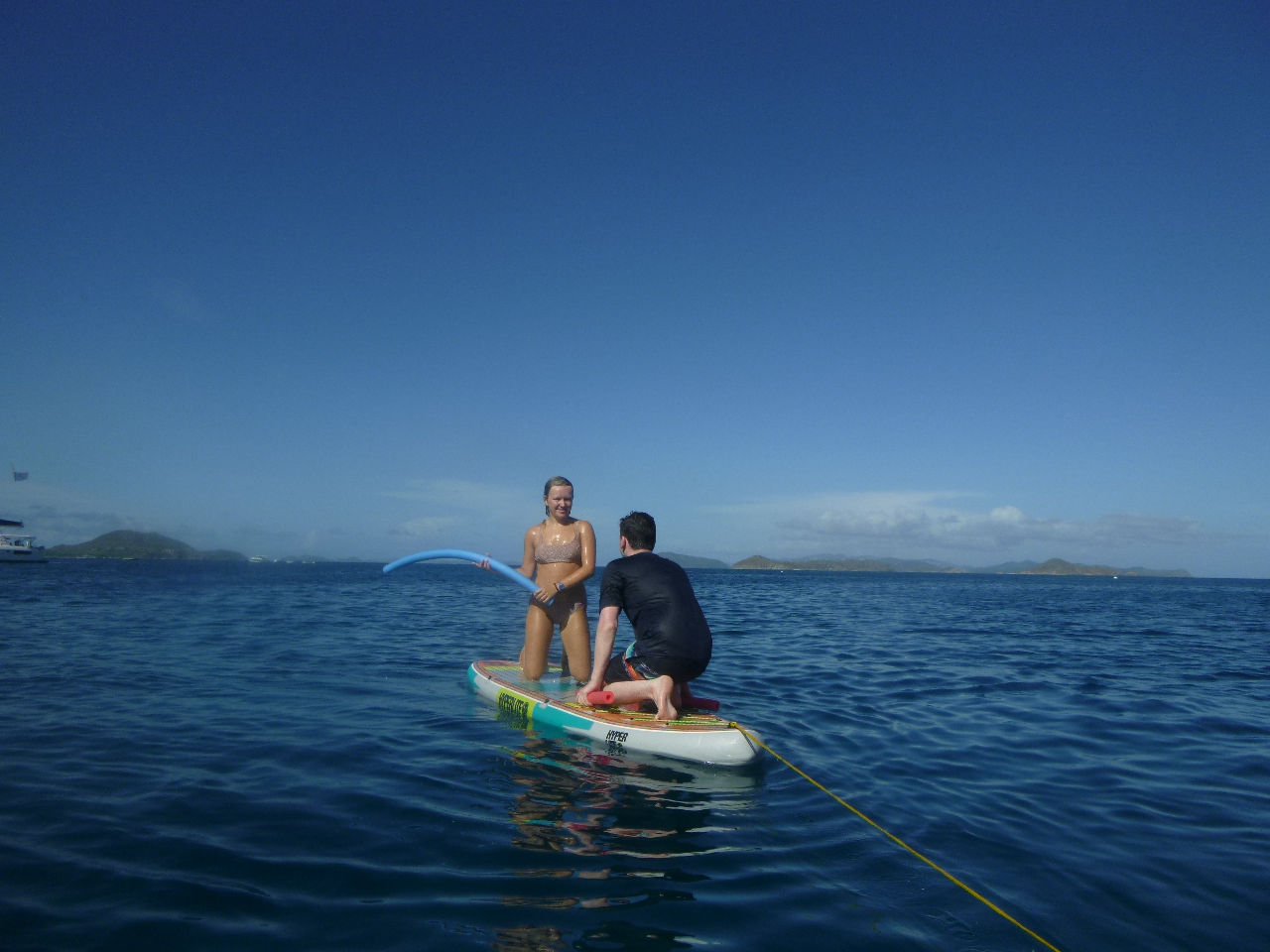 Day four for the Nomada Caribena crew was an exciting accumulation of various adventures! At five in the morning, we awoke to the sound of a surprise simulated rescue dive for our three dive masters, Georgia, Ned, and Lauren. Georgia and Lauren promptly jumped overboard in their pajamas off the bow and swam out to rescue one of the crew members who had pretended to be an unresponsive diver while Ned proceeded to take down his hammock. After the rescue, we started our main activity for the day, which included a rotation of various activities on the other ActionQuest boats. First, we went over to another boat and used the paddle boards. It was super fun, especially when we had a standing competition to see who could stay on the board while fighting to get another person off. The winner of the competition was Maude, who surprised us with her extremely competitive spirit and calculated strategies to knock people off, while Lucas and Harry made everyone laugh with their battle. After that, we rotated to another boat, where we tried various water sports, including wakeboarding, kneeboarding, and water skiing! Everyone had a super fun time, especially Aubrey and Lana in kneeboarding, Stella wakeboarding, and Issy, who succeeded in water skiing for the first time by adapting what she calls “butt skiing”. Next, we learned how to tie various boat knots and had an exciting competition to see which team could tie them the fastest. Towards the end of that rotation, Maude tied the rope around her while Kate held her over the boat. She then accidentally dropped her into the water, giving everyone a good laugh. Lastly, we learned to dive in groups while the dive masters assisted us. We ended the night by sharing our favorite parts of the day and all dancing to “the wobble”. Overall it was a super fun and interesting day where we all tried a new activity and promptly grew closer as a group!