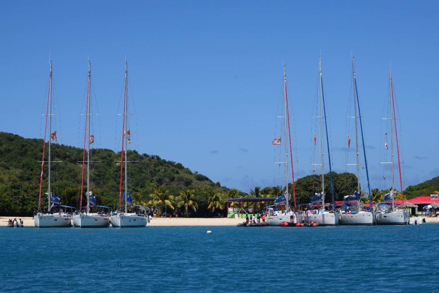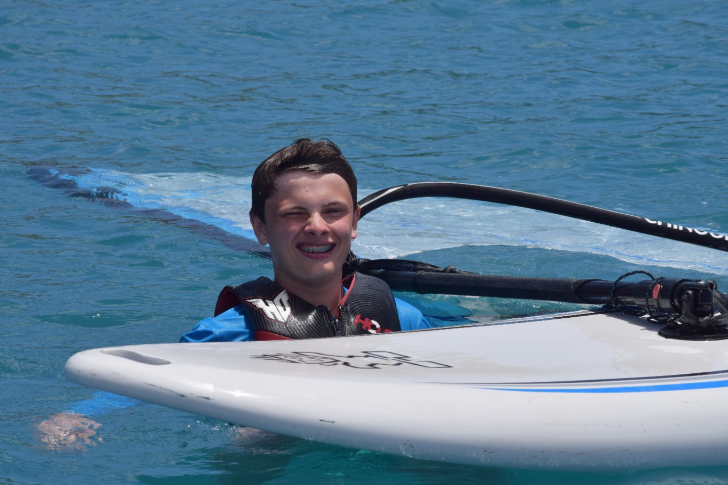 Today we woke up after a long night and ate cereal and fruit. After that, we got onto the dinghy which took us to the divemaster boat where we grabbed dive gear and went diving near the Rhone cannon. Once we finished diving, we went windsurfing and played on the beach where our boats are rafted. Next, we had lunch, which was mac and cheese. It was tasty. Once we were done with lunch we went kneeboarding and wakeboarding, which was a blast! When we finished, we showered and got ready for this beach party where we will eat, socialize and dance. Finally, after a long day we will go to bed.