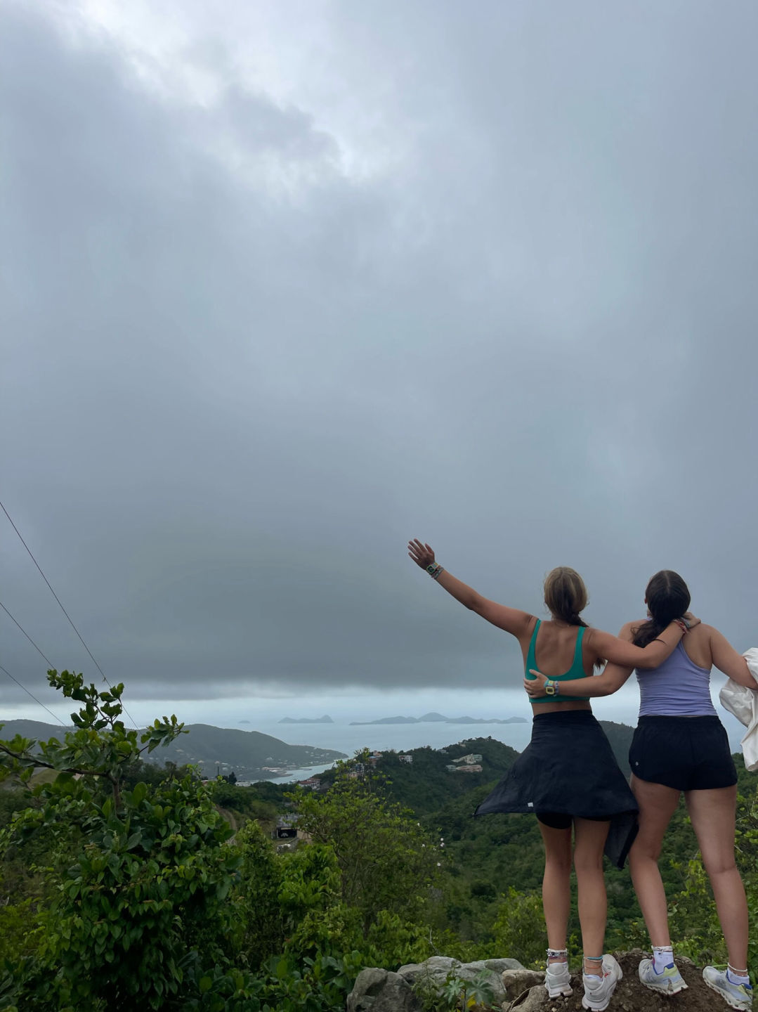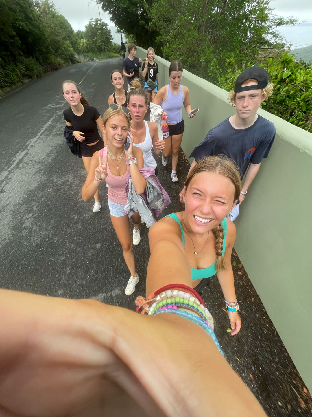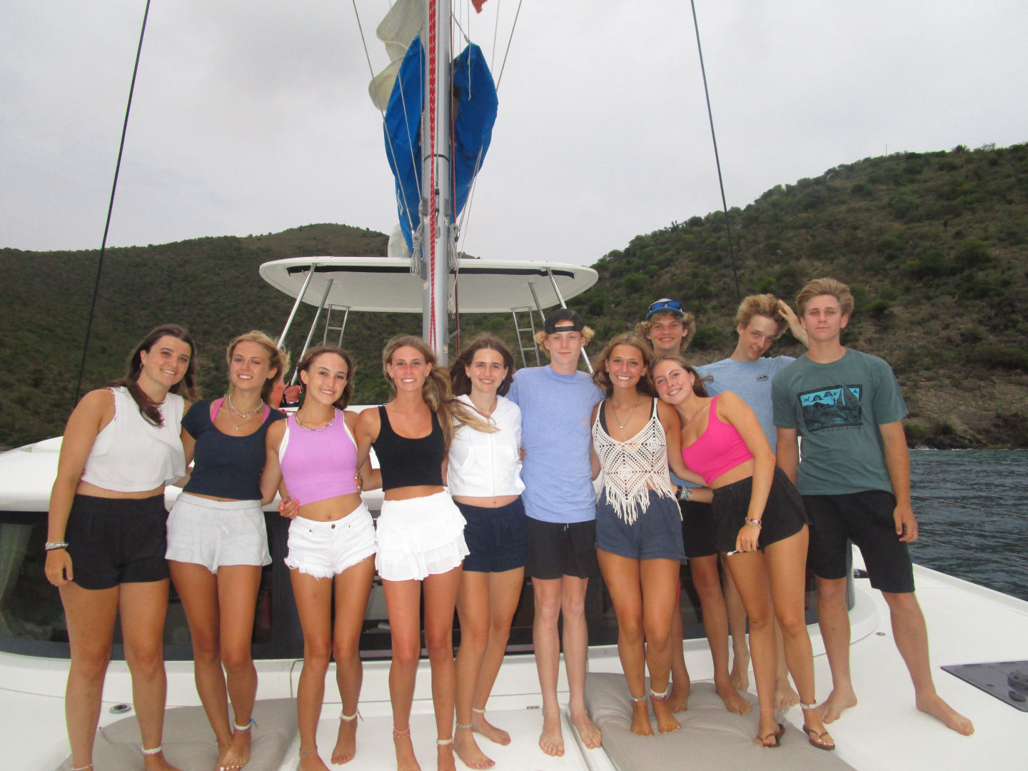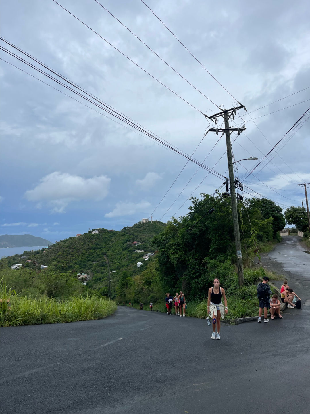 Today began with an early wake up at 6:00 am so we could hike mount sage. I personally didn’t enjoy the hike as much, but some others did! We took over 17 breaks because the hike was completely vertical. It took us over two hours to get to the top, but the views on the way were gorgeous. We stopped at a local cafe on the way down to get very good banana smoothies which we thought would reenergize us for the hike down, but somehow the way down was almost worse than the way up. Drew, Hays, and I all ran half the way down, switching back and forth between walking backward while Meredith, Matthew, and Stella walked leisurely down the mountain. I took a couple of tumbles down the hill, but it was worth it for the side views. Once we got down, all of us got lunch at a restaurant that seemed to be amazing because of how hungry we were. After lunch, we had a little bit of shore time left, so we stopped at the grocery store and stocked up on a lot of snacks. Thomas went crazy on some bananas. We then got on the dingy and arrived at the boat. The plan was to make sandcastles at Sandy Cay, but it was raining, and we were running out of time, so we decided to just take our showers and get ready for the BBQ. We then got to the BBQ, got really cool shirts, and shopped around. Claire and Evan danced the whole time, and so did the other girls. Drew, Stella, Kate, and I all got a small braid in our hair at one of the shops. We all also got “sail naked” shirts that we have been seeing other counselors wear. We are planning to wear them during our boat race tomorrow. Once we were told to head back to the boat, we gathered all our items and took the dinghy back to our boat. Evan and I did foot baths due to blisters. Now, we are all winding down while each of us slowly head to bed, ready to get some sleep after a very energy-draining day.