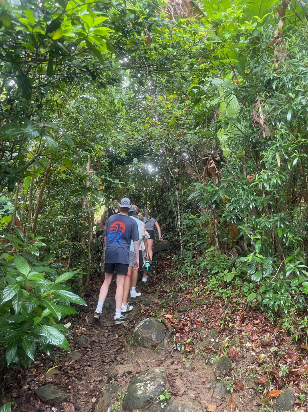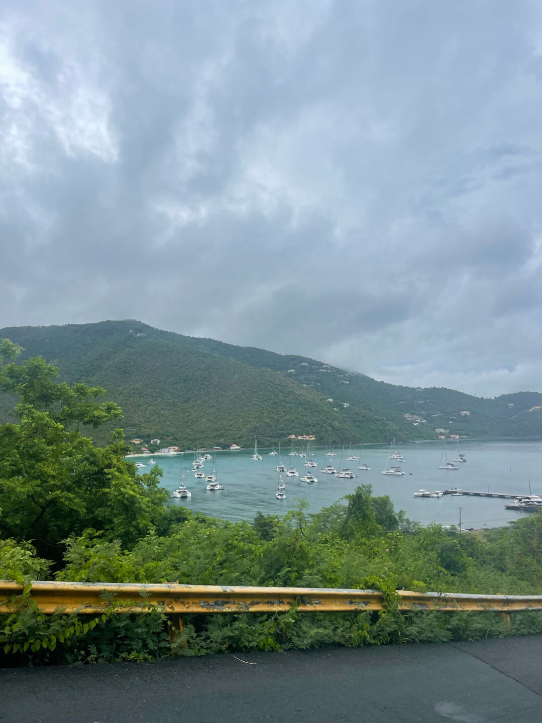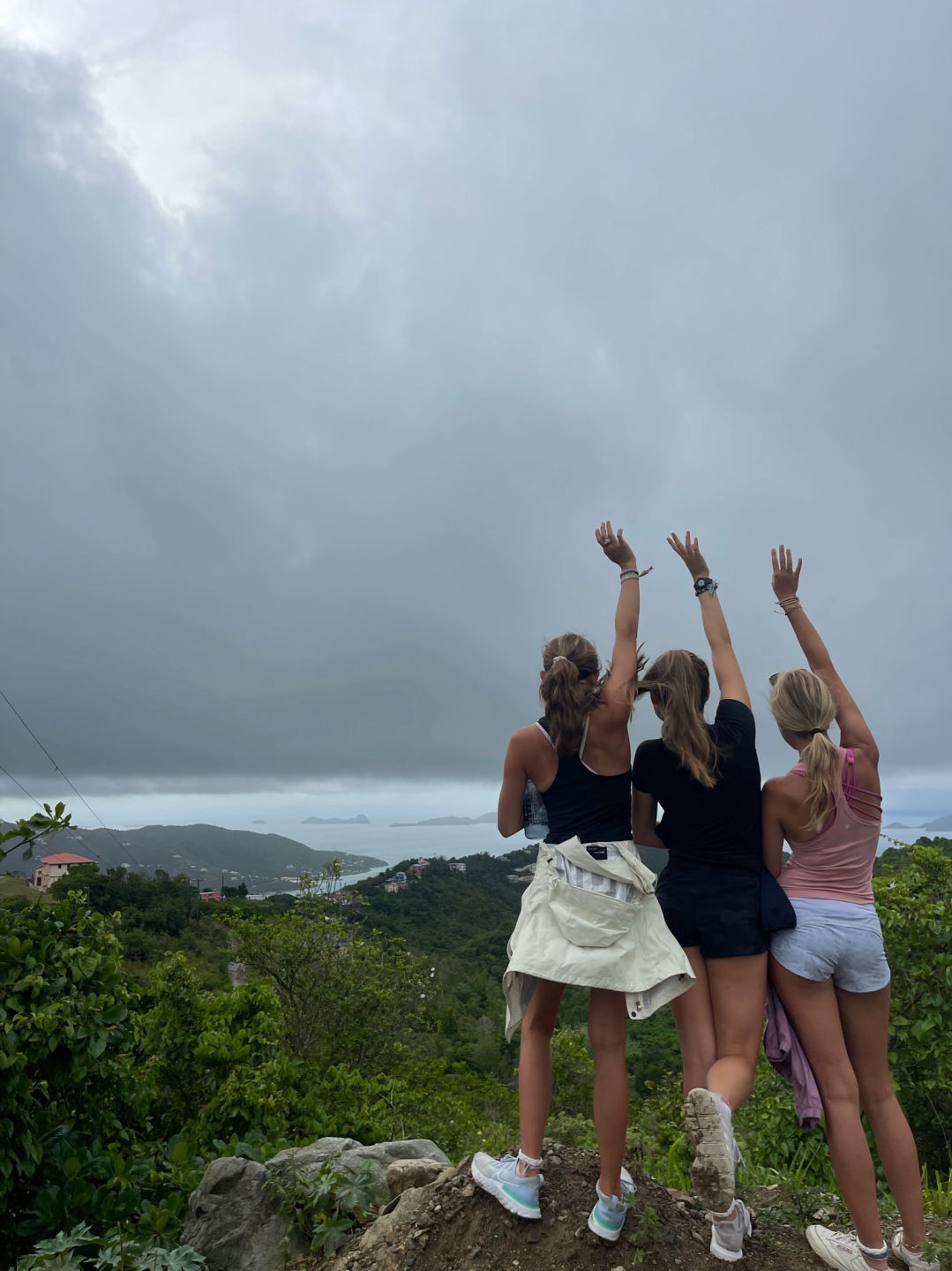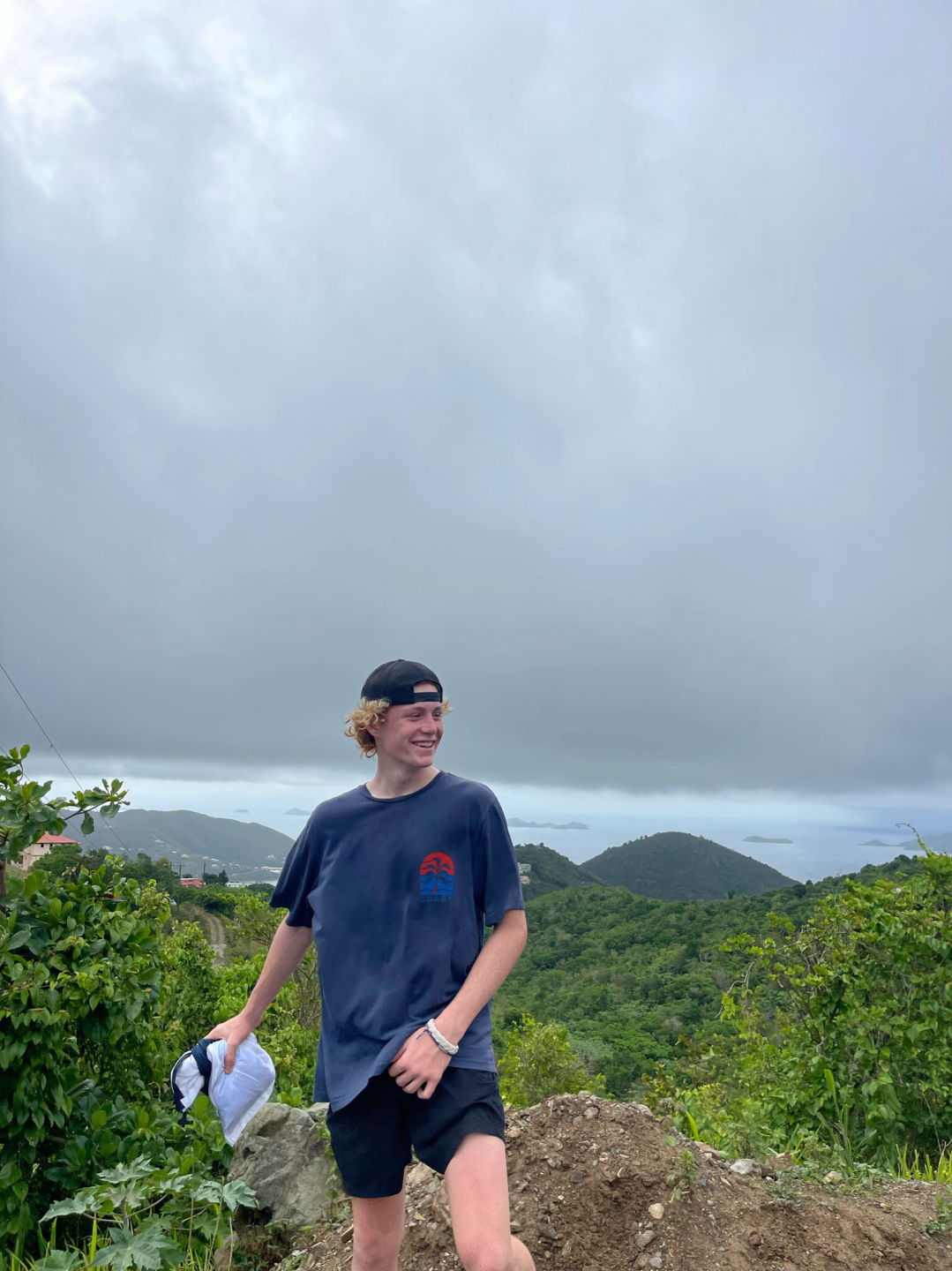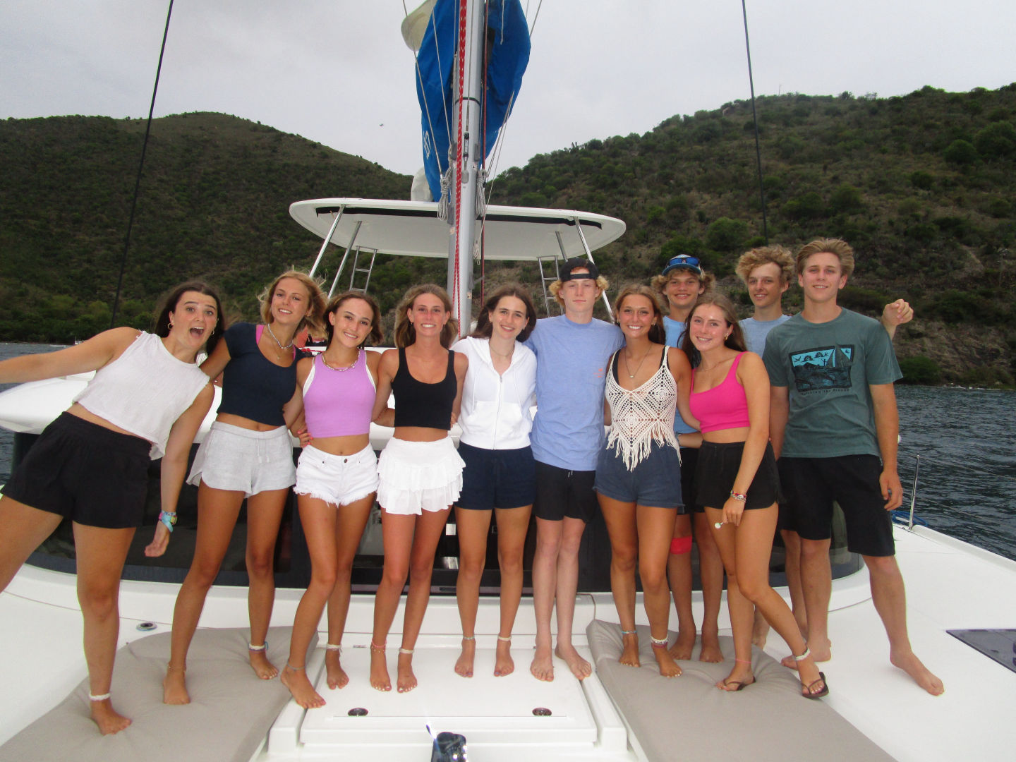 Today began with an early wake up at 6:00 am so we could hike mount sage. I personally didn’t enjoy the hike as much, but some others did! We took over 17 breaks because the hike was completely vertical. It took us over two hours to get to the top, but the views on the way were gorgeous. We stopped at a local cafe on the way down to get very good banana smoothies which we thought would reenergize us for the hike down, but somehow the way down was almost worse than the way up. Drew, Hays, and I all ran half the way down, switching back and forth between walking backward while Meredith, Matthew, and Stella walked leisurely down the mountain. I took a couple of tumbles down the hill, but it was worth it for the side views. Once we got down, all of us got lunch at a restaurant that seemed to be amazing because of how hungry we were. After lunch, we had a little bit of shore time left, so we stopped at the grocery store and stocked up on a lot of snacks. Thomas went crazy on some bananas. We then got on the dingy and arrived at the boat. The plan was to make sandcastles at Sandy Cay, but it was raining, and we were running out of time, so we decided to just take our showers and get ready for the BBQ. We then got to the BBQ, got really cool shirts, and shopped around. Claire and Evan danced the whole time, and so did the other girls. Drew, Stella, Kate, and I all got a small braid in our hair at one of the shops. We all also got “sail naked” shirts that we have been seeing other counselors wear. We are planning to wear them during our boat race tomorrow. Once we were told to head back to the boat, we gathered all our items and took the dinghy back to our boat. Evan and I did foot baths due to blisters. Now, we are all winding down while each of us slowly head to bed, ready to get some sleep after a very energy-draining day.