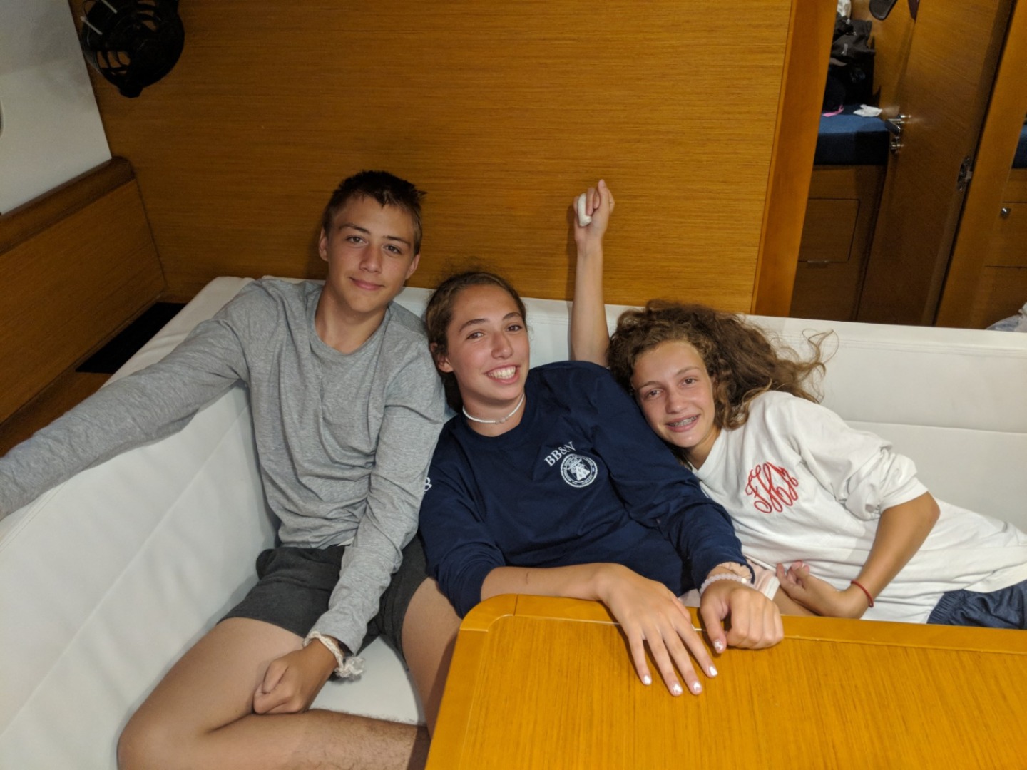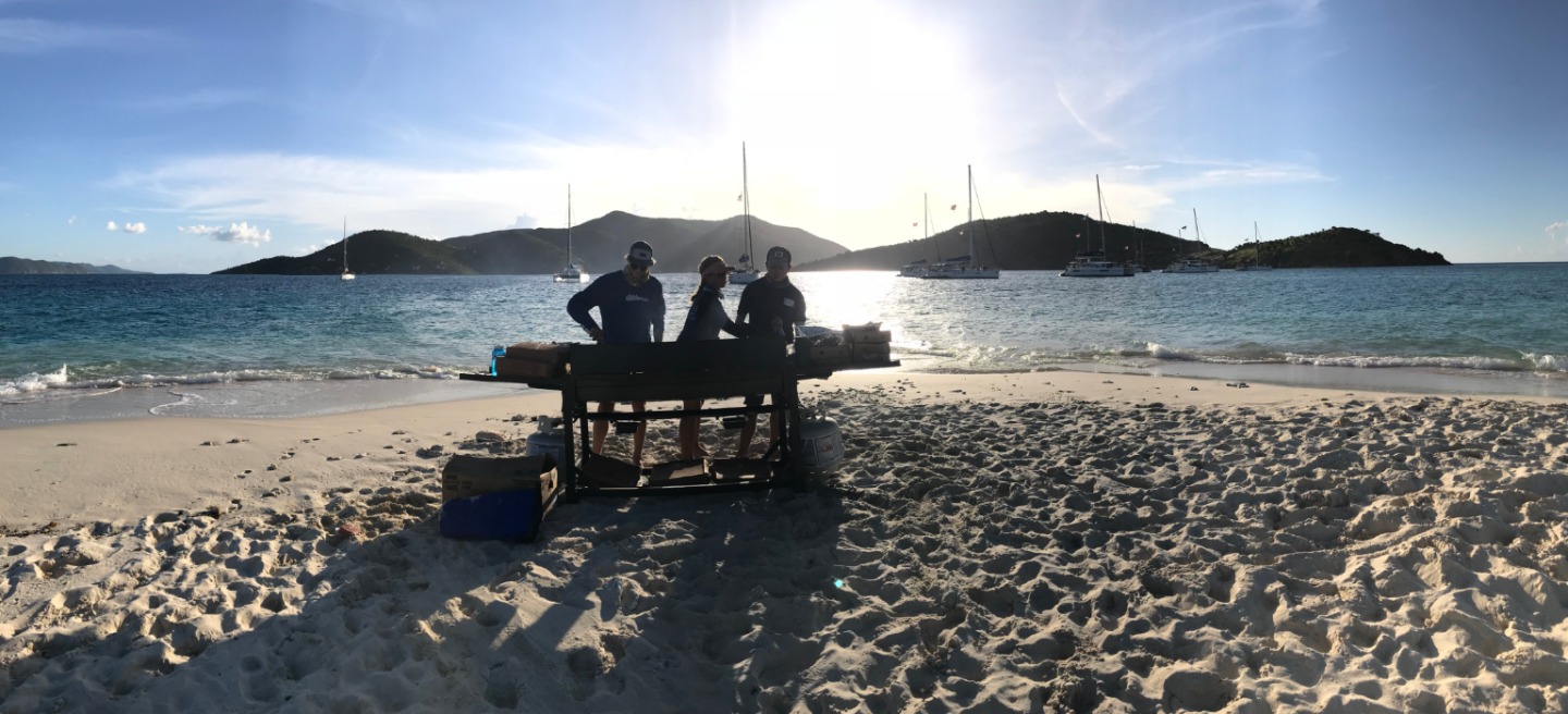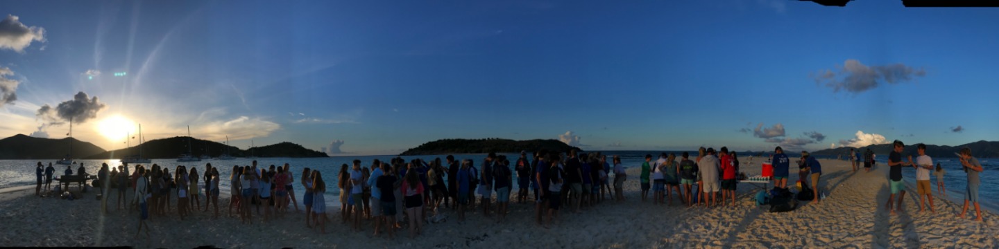 We woke to the songs from Moana and the fresh smell of French toast and Nutella. We were not excited to leave one of the most beautiful locations that we have been to, Muskmelon Bay, however, we were looking forward to the day to come. We had an enlightening navigation chat in the comfort of our air-conditioned salon. Later we prepared to sail by raising the anchor, 40/40ing our cabins, and taking clothes off the lifelines. We set sail around 10 AM and immediately started to practice our sailing techniques and thankfully we all passed our practical test. After a long four hour sail full of annoying each other and telling riddles on the water, we came upon Sandy Spit for a barbecue We all admitted that it was one of the most aesthetic places we have ever seen. Sandy Spit is full of clear and warm blue water, small islands, and a tiny sandy island where our barbecue will be hosted. Now we are all showering and preparing for our night at an unreal location.