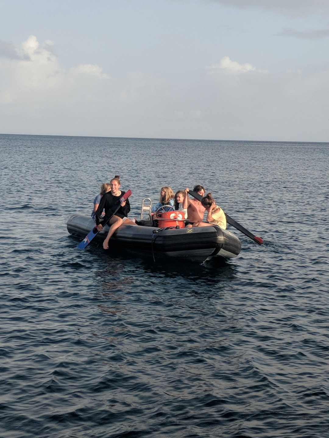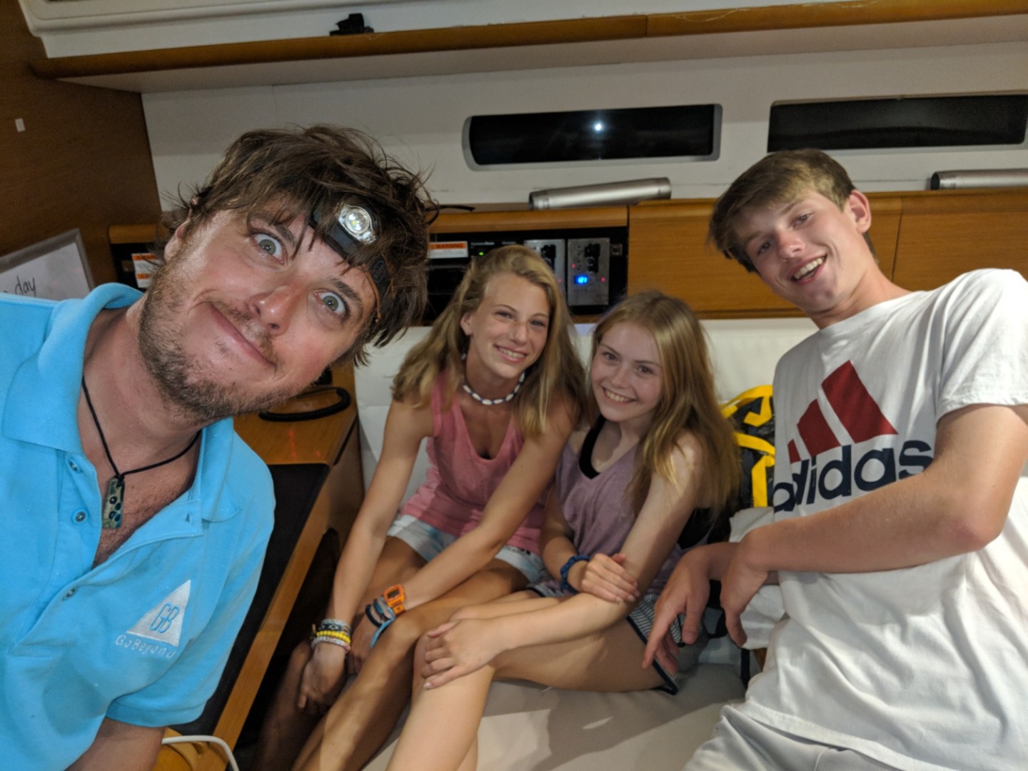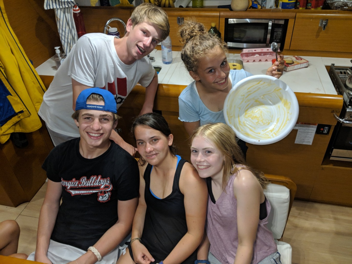 We woke to the songs from Moana and the fresh smell of French toast and Nutella. We were not excited to leave one of the most beautiful locations that we have been to, Muskmelon Bay, however, we were looking forward to the day to come. We had an enlightening navigation chat in the comfort of our air-conditioned salon. Later we prepared to sail by raising the anchor, 40/40ing our cabins, and taking clothes off the lifelines. We set sail around 10 AM and immediately started to practice our sailing techniques and thankfully we all passed our practical test. After a long four hour sail full of annoying each other and telling riddles on the water, we came upon Sandy Spit for a barbecue We all admitted that it was one of the most aesthetic places we have ever seen. Sandy Spit is full of clear and warm blue water, small islands, and a tiny sandy island where our barbecue will be hosted. Now we are all showering and preparing for our night at an unreal location.