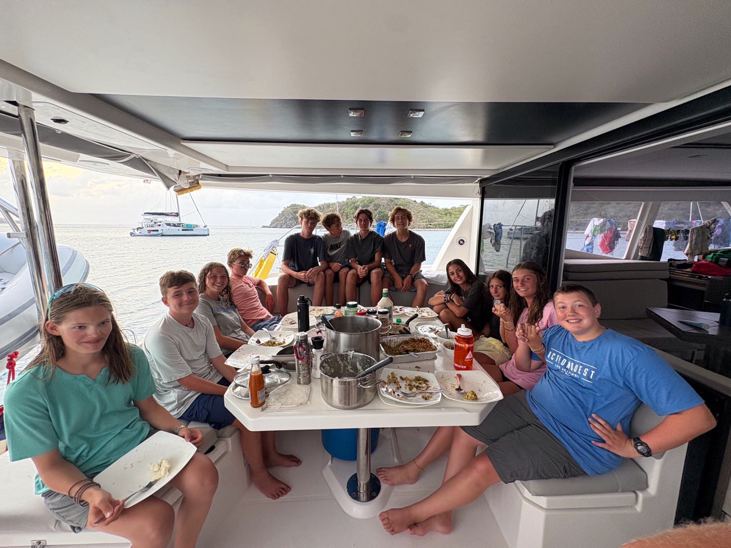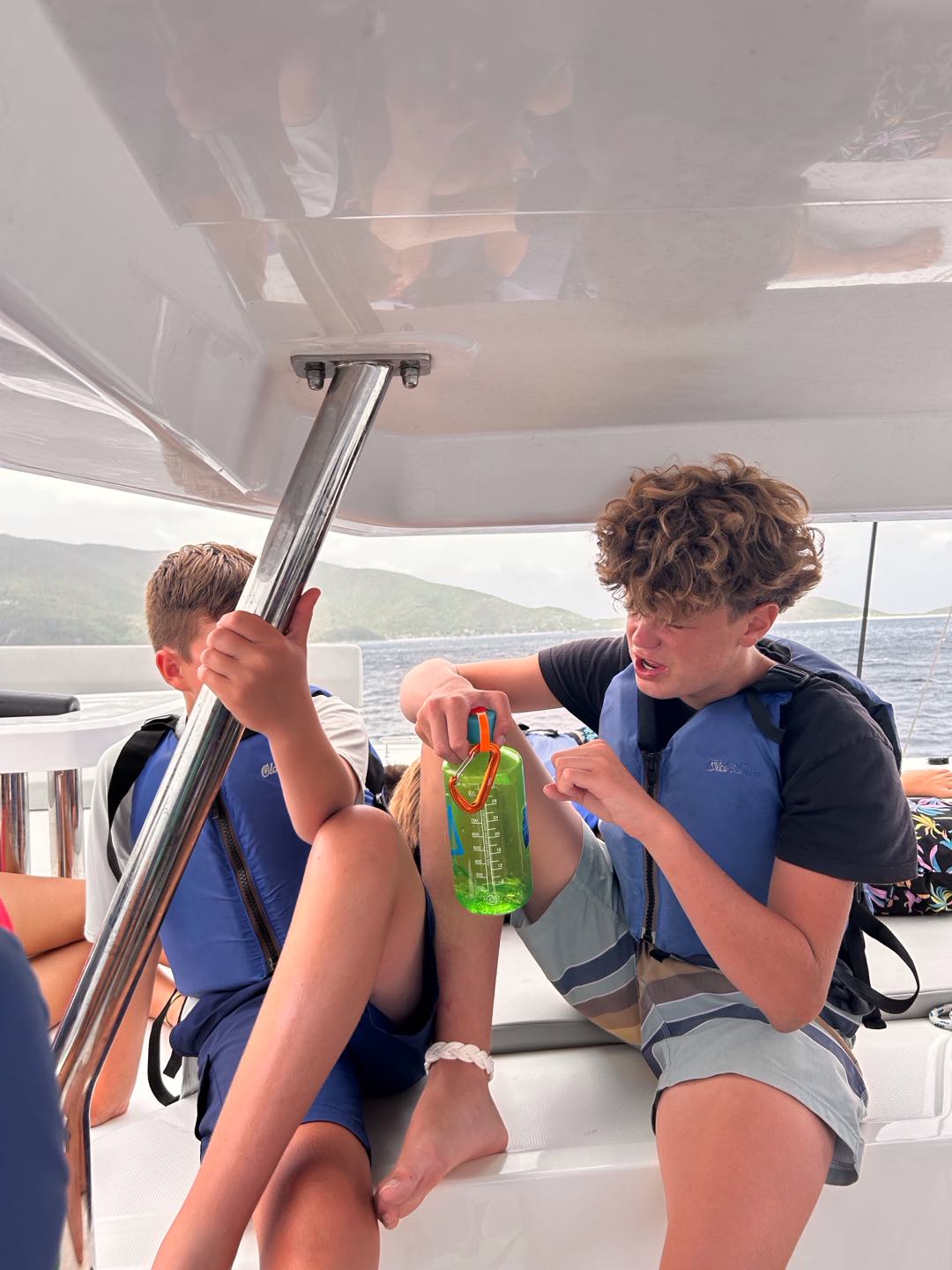 We awoke in the morning, exhausted from the thrilling and extravagant activities and shenanigans we had done the day before. We started our normal routine with breakfast and ridding the dishes of their grime. The group then prepared itself to transition to a new vessel. Everyone brought a bag with all sorts of articles, from sunscreen to delectable snacks. While in the new environment, we sailed all day. The ship stopped halfway to our destination for lunch. We ate instant ramen that was already placed for us by the original owners. After eating and washing the silverware, we pressed forward to a beach of rocks and small mountains. We rested, took a shower, and ate dinner. Shortly after dinne,r we indulged in an amusing game of hide and seek. I was never able to find Robert, Elliot, and Dylan, but it was enjoyable nonetheless. After the game we cleaned the boat all together. After the very long day, the group went to bed, ending another day in ActionQuest.
