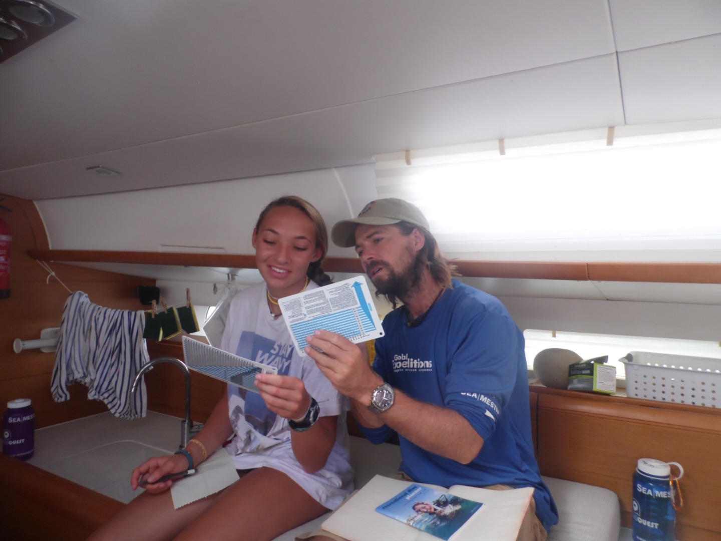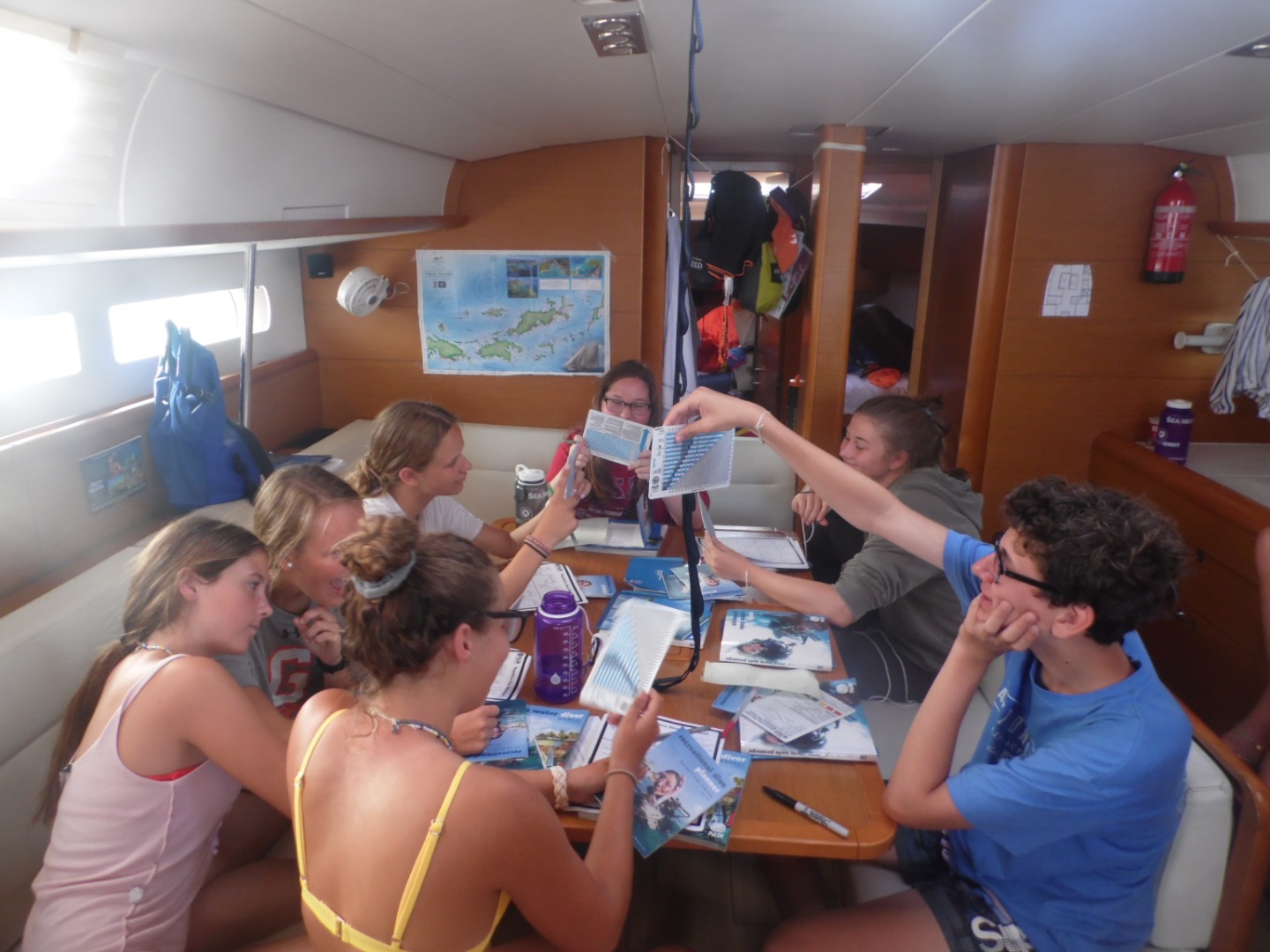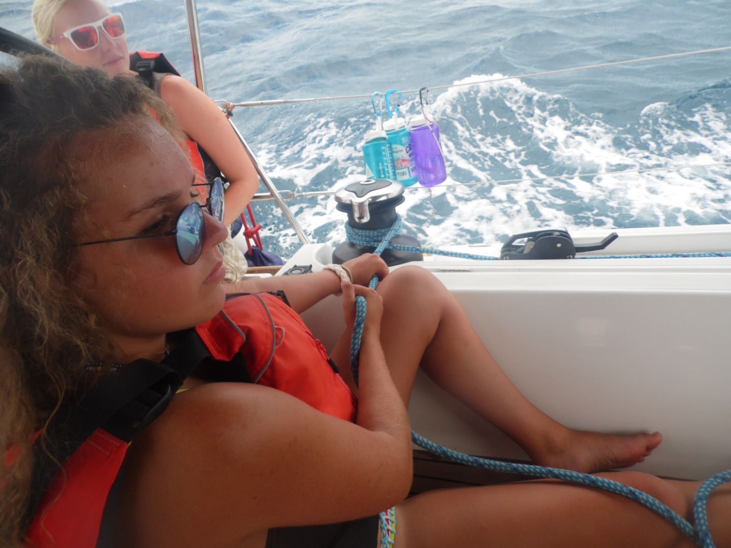 Today was a fun day, full of learning new skills- especially sailing- and fun conversations. We woke up at 7 am and had cereal, before heading out for our sail training. After a while, we stopped to have a dive and sail chat. The dive chat was really difficult and included a lot of simple- yet somehow really hard- calculations. We learned about RDP tables that help us plan our future dives. The sail chat contained a lot of information and was super interesting! We ended the day with a wonderful BBQ party, where we all showed off our amazing moves on the dance floor. With all the fun we are having, I often forget how much we are actually learning. AQ shows how fun learning can be and I will miss this in the classroom back home. Every day is so much fun I am already eager for what tomorrow will bring.