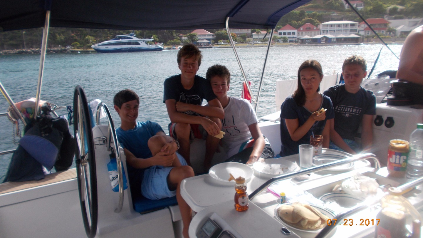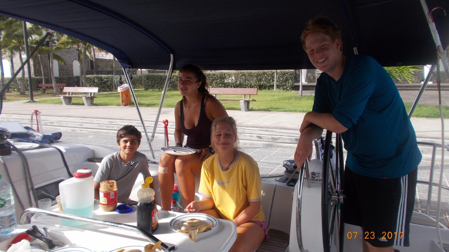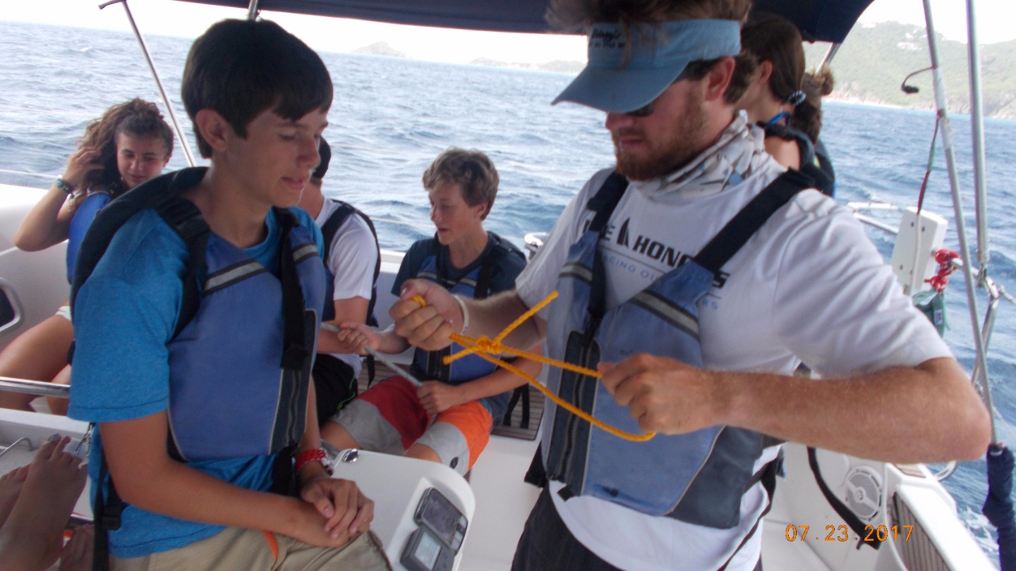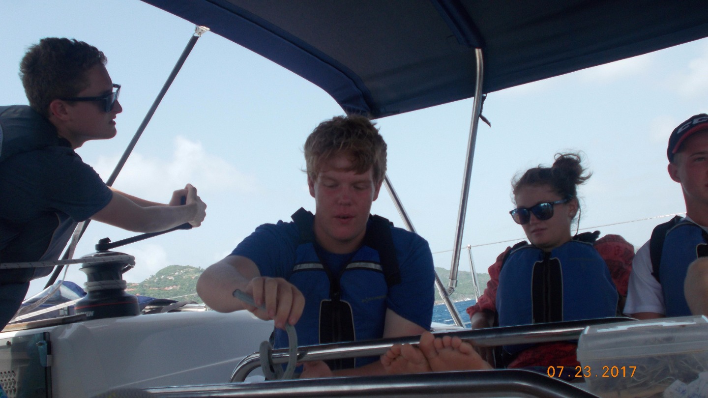 We woke up to a wonderful breakfast of pancakes. After we went to shore for our last time outside of the BVIs our talented chefs made us Ramen for lunch. Soon after we set our sails for the final practice before our practical exam and had a lot of fun! We practiced sailing circles, man-overboard maneuvers, and heave- tos. In the evening we were able to enjoy a delicious mexican dinner.