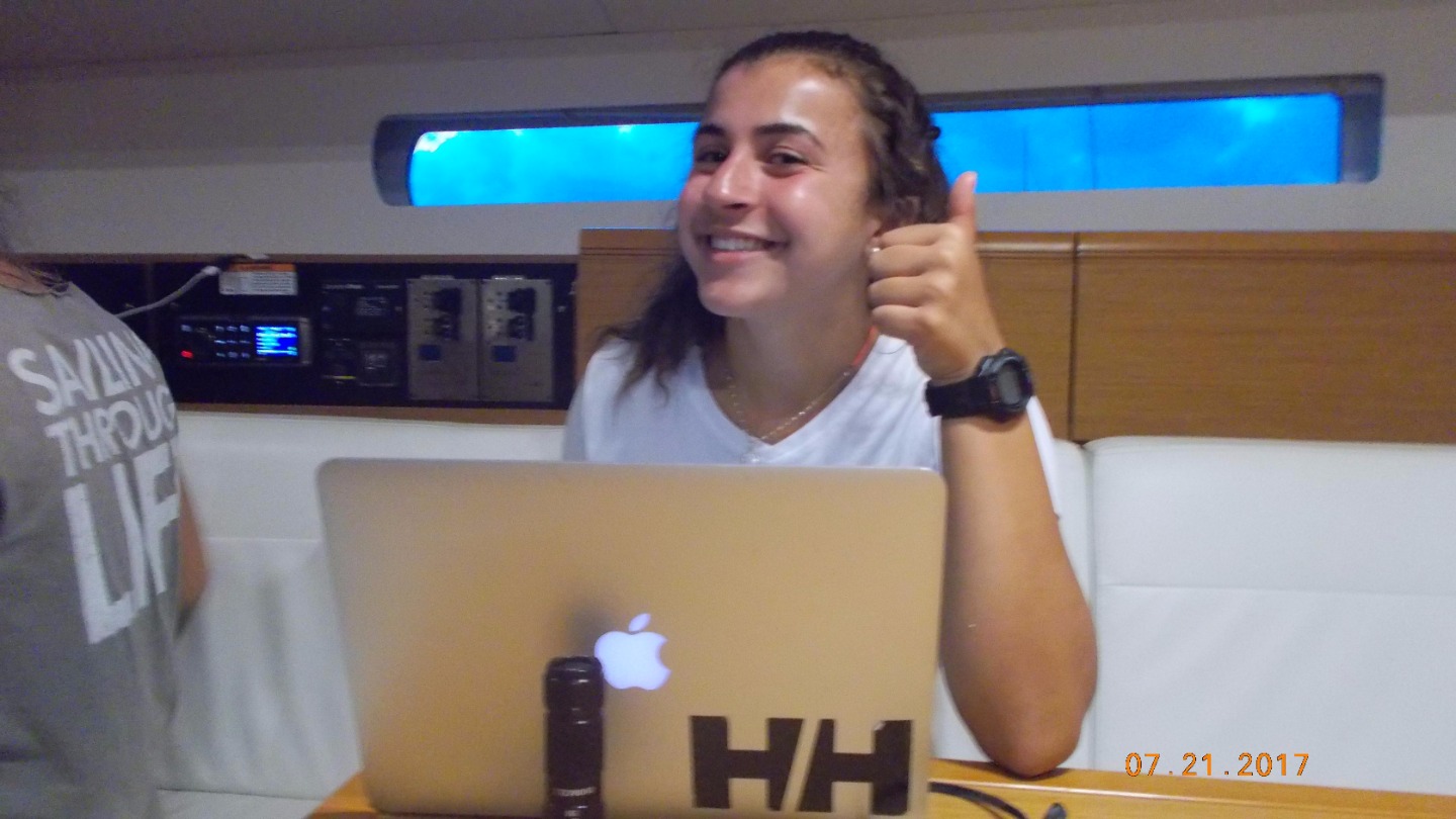 After our night passage we awoke this morning to a beautiful view of St. Barts and ate a delicious breakfast of breakfast burritos and cinnamon buns. Once we finished eating breakfast we enjoyed some shore time on St. Barts. We all had a fun day of shopping, eating and swimming. For lunch we were on shore so most of us decided to enjoy a crepe at La Creperie. After lunch the group broke off and everybody did their own things. Some people took a quick hike to enjoy the spectacular views St. Barts has to offer while others enjoyed a day swimming in the crystal clear water or laying on the shell covered beaches. Once we all regrouped on the dock we headed back to the boats to shower and have a delicious pad thai dinner. After dinner the advanced sailers are taking the written portion of the exam (wish us luck!).