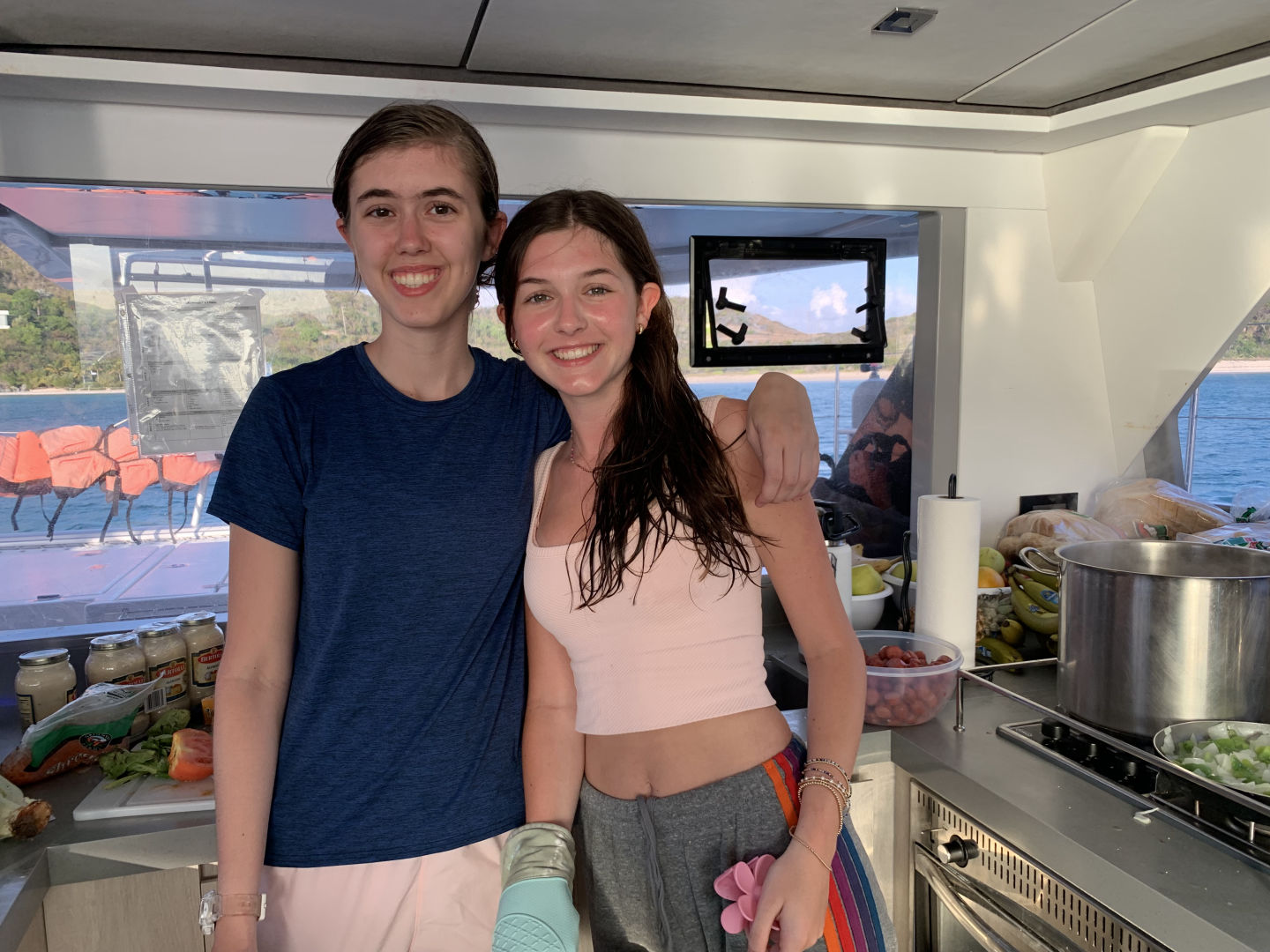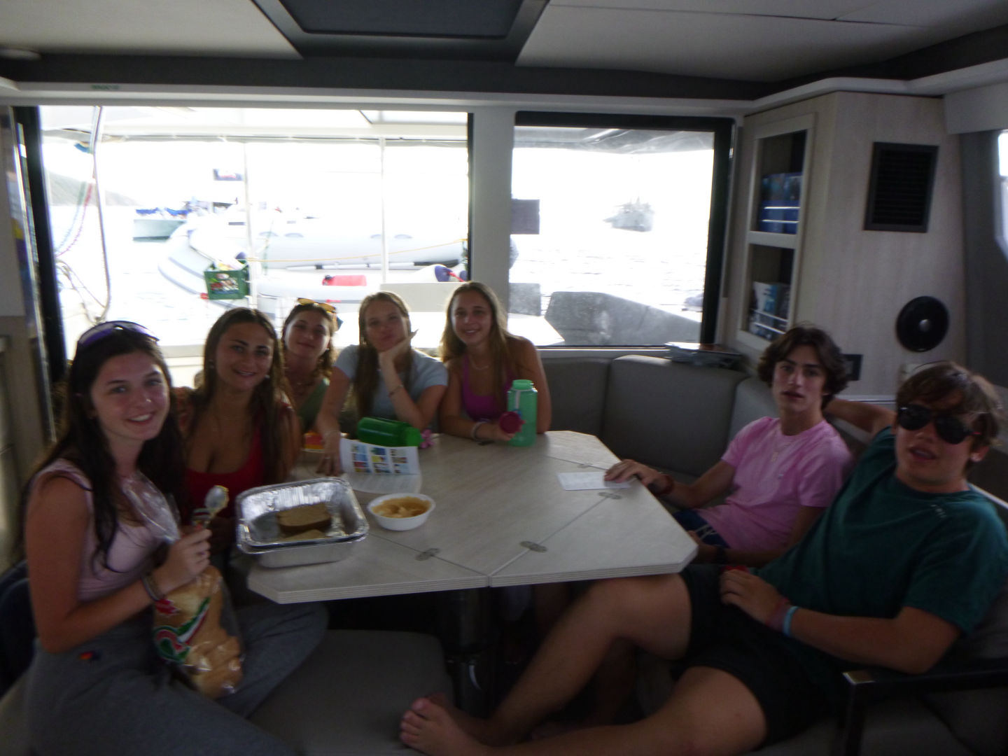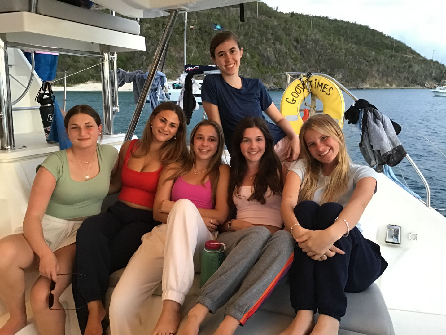 Today was day three, and we started off the day at Peter’s Island. We had breakfast and then sailed to Cooper Island for our second dive at Blue Chromis. Tyler, Hudson, Parker, Carson, Ari, and Mara were in Jake’s group. Gabi, Lila, Lexi, Lorden, Brady, and Charlie were in Gene’s group. After the dive, we swam and had PB and J’s for lunch. We sailed to Savannah Bay and took turns helping with the sails and the helm. We anchored in Savannah Bay, and Jake took us on a dinghy to water ski, wakeboard, and kneeboard. For dinner, Parker and Mara made us Alfredo Pasta with hot dogs. We ended our day with a life works session led by Parker. We bonded as a boat and grew closer.