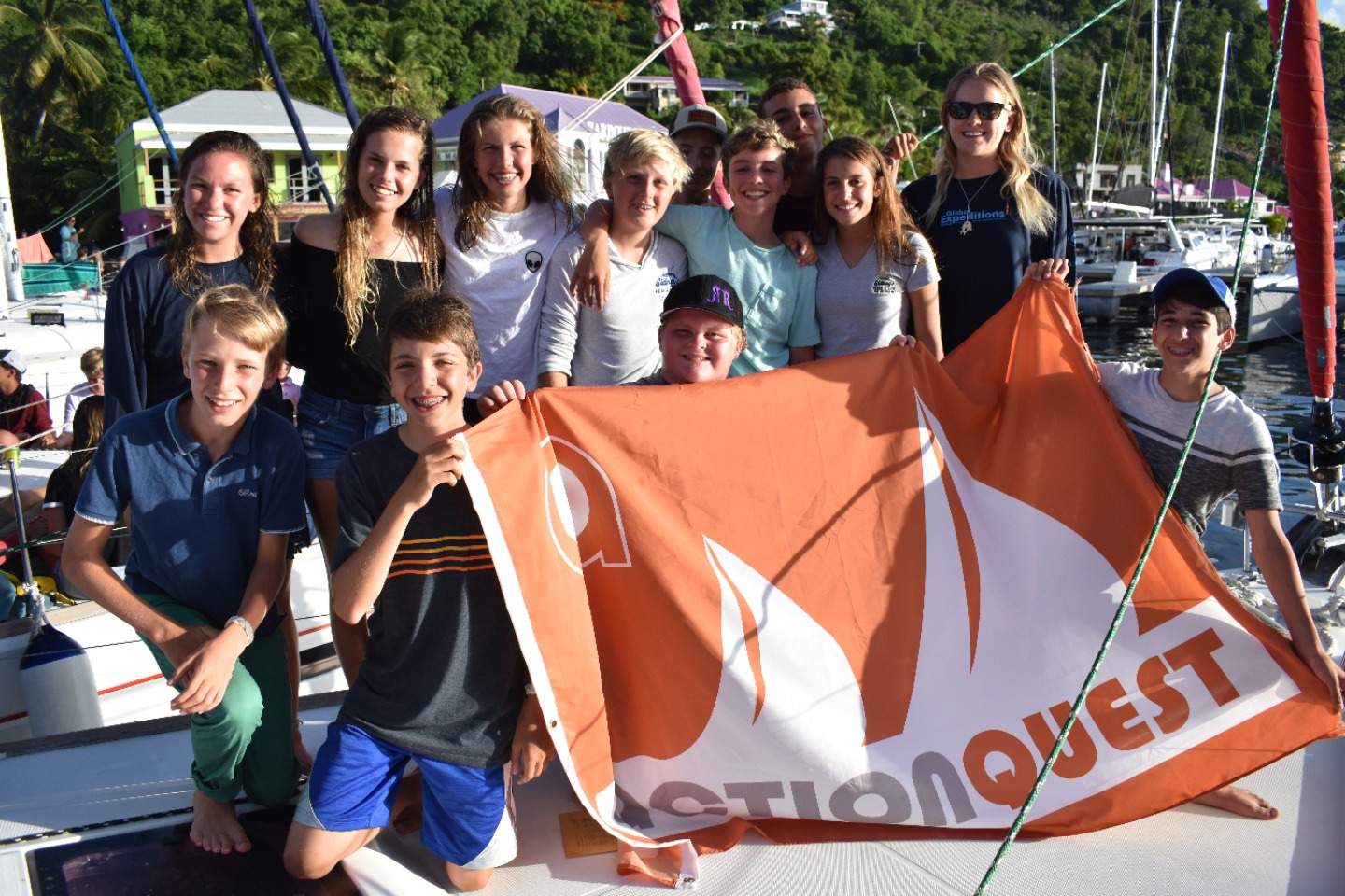 It seems like just yesterday we were leaving West End and raising our sails, when really it was actually 21 days ago. Since then we have worked together as a team to overcome challenges, push ourselves to grow, and became closer to form the amazing, one and only, Sam-Bam Fam. We spent our last day on the water doing what we love best; sailing, dancing and singing the song Tropics. We competed for the sailing race with Toby on the helm and Graham on the main sheet. We had Gwen and Brooke as spotters as we raised our main halyard and everyone else jumped in when needed and provided moral support and entertainment. Our last dive on the Rhone was a huge success. Being able to dive the wreck after all of the hard work was exhilarating. We saw a huge porcupine fish, tarpon and even the propeller of the Rhone herself. All of our divers passed their SCUBA test with flying colors and this was really evident by the responsible way they managed themselves underwater. Ben, Yoav, Emilia, and Jason (Team Diva) with celebrity guest Logan, raved about the dive and couldn’t wait to start planning their next dive adventures with their families. Not only did the Sam-Bam Fam ace their diving exams and earn their certifications, they all did an amazing job during their sailing practicals. David and Casey couldn’t stop raving about how good of a job the group had done during their man overboard drills and sailing circles. Our advanced sailors, Paul and Yoav, worked hard studying for their advanced sailing and VHF test to put to use all of the new knowledge they had acquired from working with David these past 3 weeks. We can’t believe it’s all come to a close and we are sad to see you all go, but from our last night’s squeeze question, it seems pretty obvious we will be seeing all of your faces around the dock here next year. We will miss you Sam-Bam Fam! Date: Jul 28, 2017
