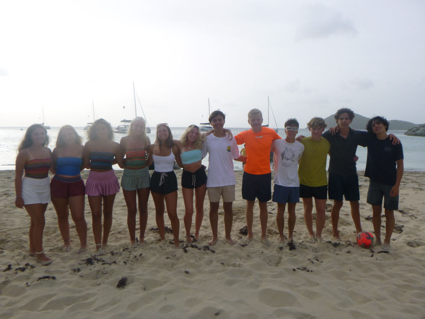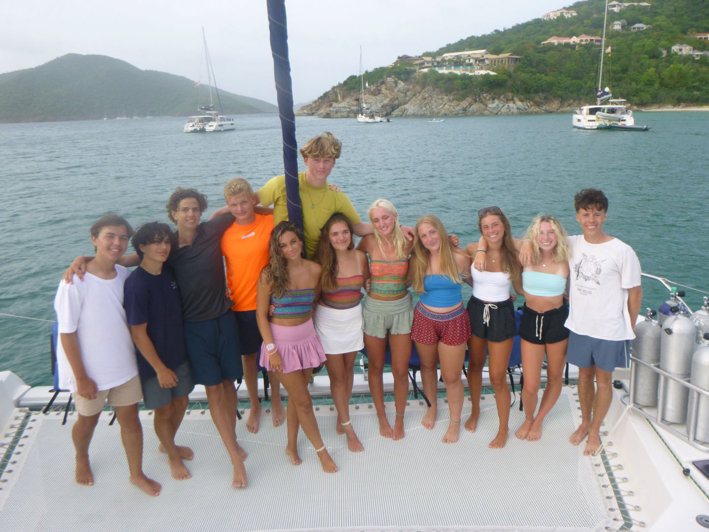 We all gathered in the cockpit about an hour later for a briefing on emergency O2. Then we all heard a scream coming from the water. Our first rescue scenario was starting. We had to jump in the water and save a panicked diver and two unresponsive divers. We had assigned jobs earlier in the day so that our scenario went smoothly. Sally, Daisy and Laney, and Anzie were our rescue divers. Jayden was our free diver, Teddy and James needed to calm the panicked diver, Eddie raised the dive flag, KK kept eyes on the unresponsive diver, Ozzie and Josh performed CPR, and I was the timekeeper. Even tho we had some mistakes. It ran pretty smoothly. Once we debriefed the scenario, we all went to the beach and hung out with some other boats. We headed back to Event Horizon and started cooking up freak and beans. Mmmm. Today was a solid day.