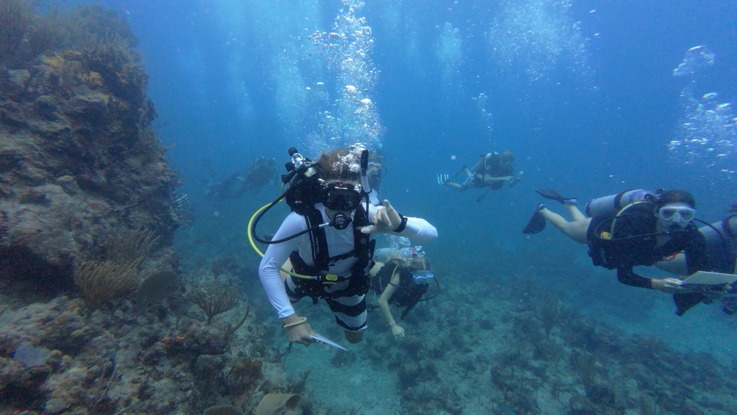 A staff member, Stick, was up early on our boat, waking people up after a long night of me (Calvin) snoring above everyone in a hammock. We quickly sailed to a nearby dive sight called Shark Planes and got to swim in and through the three planes that looked like sharks. Jules had seen a real shark and signaled it, but Maddy and others thought he was just signaling the shark planes. We then sailed to the next dive sight, which had a swim-through called the chimneys. It was our underwater naturalist dive, where we identified symbiotic relationships in the water. After we sailed back to Mountain Point, we did water sports. Emma Y did well on the kneeboard, considering it was her first time doing water sports. Gabriel and Jules managed to stay up on the wakeboard for about a minute. Teddy managed to not get sunburnt the whole day which was a first. Ruby gave the girls her bracelet strings, and they all made bracelets. Kiran did a side dive and landed on a jellyfish and got stung, but she’s alright! Dave showed Calvin, who then showed Darby how to make coffee with the plunge, which they had been missing. Alivia took a long nap on the hardtop while sailing. For dinner, Alivia and Ruby made cheddar broccoli pasta and played cards. We are now having a movie night. See you in 12 days.