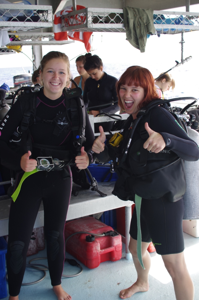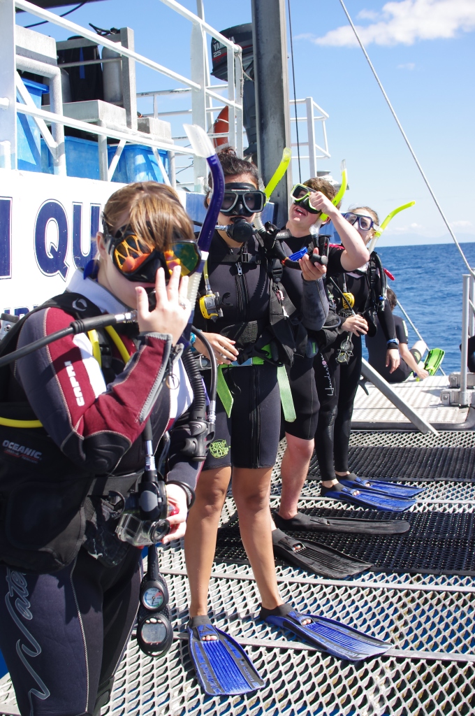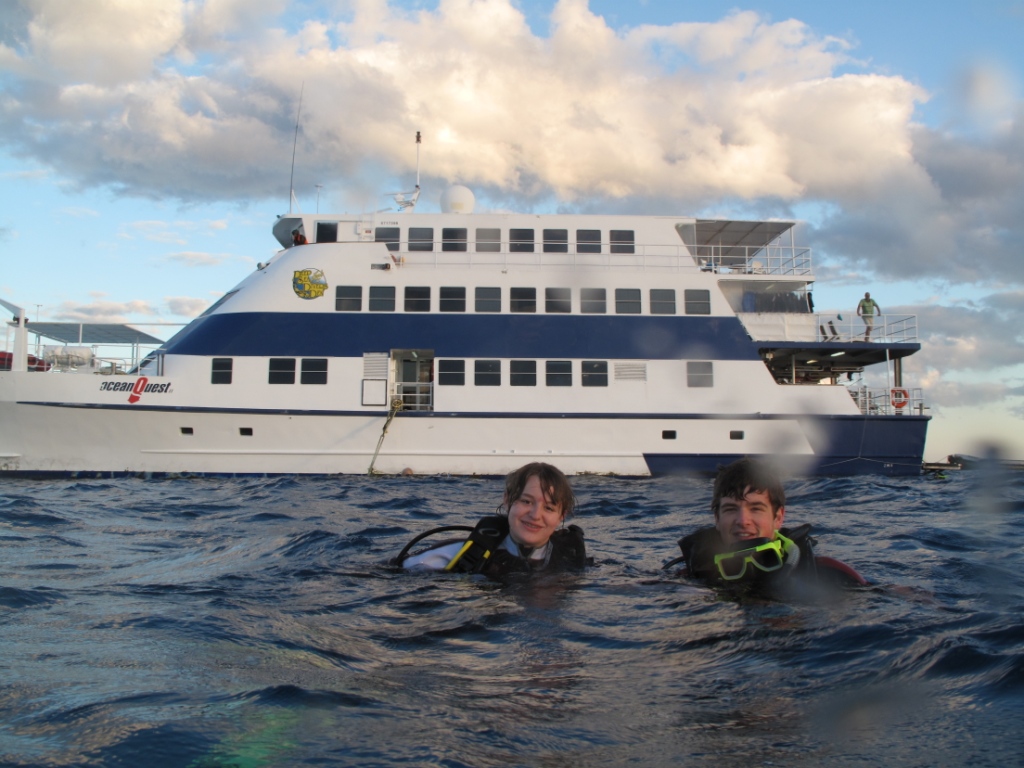 If there was ever a day on this trip that guaranteed everyone a good night’s sleep, it would be today. The certified divers of the group awoke early this morning to dive before breakfast with the sunrise. Diving underwater while witnessing the ocean wake from its slumber was spectacular. Afterwards we ate breakfast and prepared for the many remaining dives. Two amazing dives occupied the morning for most of the group while the remaining members enjoyed snorkeling on the Great Barrier Reef. A delicious lunch followed by pages of books being lazily turned and napping beneath the sparkling Australian sun preceded an equally incredible afternoon dive. By dinnertime the group had completed four dives or snorkeling sessions and we felt the toll it was taking. Many exciting species were spotted on the reef today such as barracuda, multiple sting rays, poisonous lionfish, and enormous bat fish. Even though we were all exhausted the night dive approached quickly and unyielding. We glanced over the stern of the ship and witnessed what rested in the water below. Dozens of large reef sharks and giant grouper swirled around the edge of the boat where divers commonly make their leap into the water. The group perked up and hopped willingly into the shark-infested waters which made for a very exciting night dive. Countless sharks, crustaceans, large fish, and an immense sting ray later we gathered around the TV to finish a movie before drifting off into a deep, good night’s sleep.