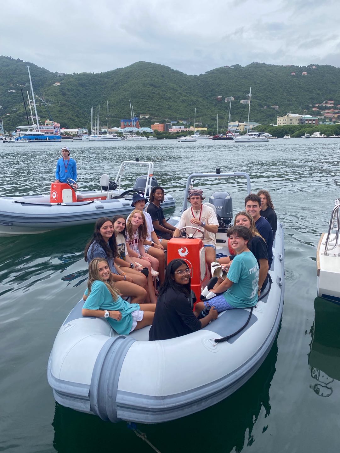 We started today off with a little bit of an early wake-up, but not by much. After everyone woke up, we headed to the Willy T wreck for advanced navigation dive and open waters four certifications. Lucas, Cora, and Asha all finished their certifications and are now officially certified. After we left the Willy T wreck, Malahku helmed all of the advanced divers with the dive instructors. Once we arrived, Max and Kiera threw the lines to get us docked. Once we got on shore, we all headed to the grocery store, where we met the daughter of Sidney’s owner, where we were a couple of days ago for our BBQ. Once everyone bought groceries, we headed to the marina restaurant for some food, where Sophie ran into one of her friends from another boat. Quin, Lily, and Enya talked to some people from other boats while we waited for our food. After a little while, our food arrived, and we finished eating and headed back to the boat, where we got to see Ainsley, who got back from the doctor. After we headed to where we were anchoring for the night, we had a chat with Mike, and now we’re singing along to some songs and hanging out.