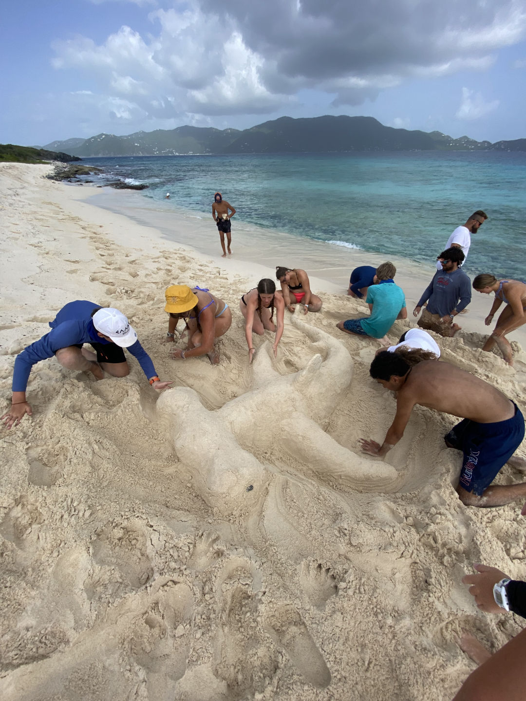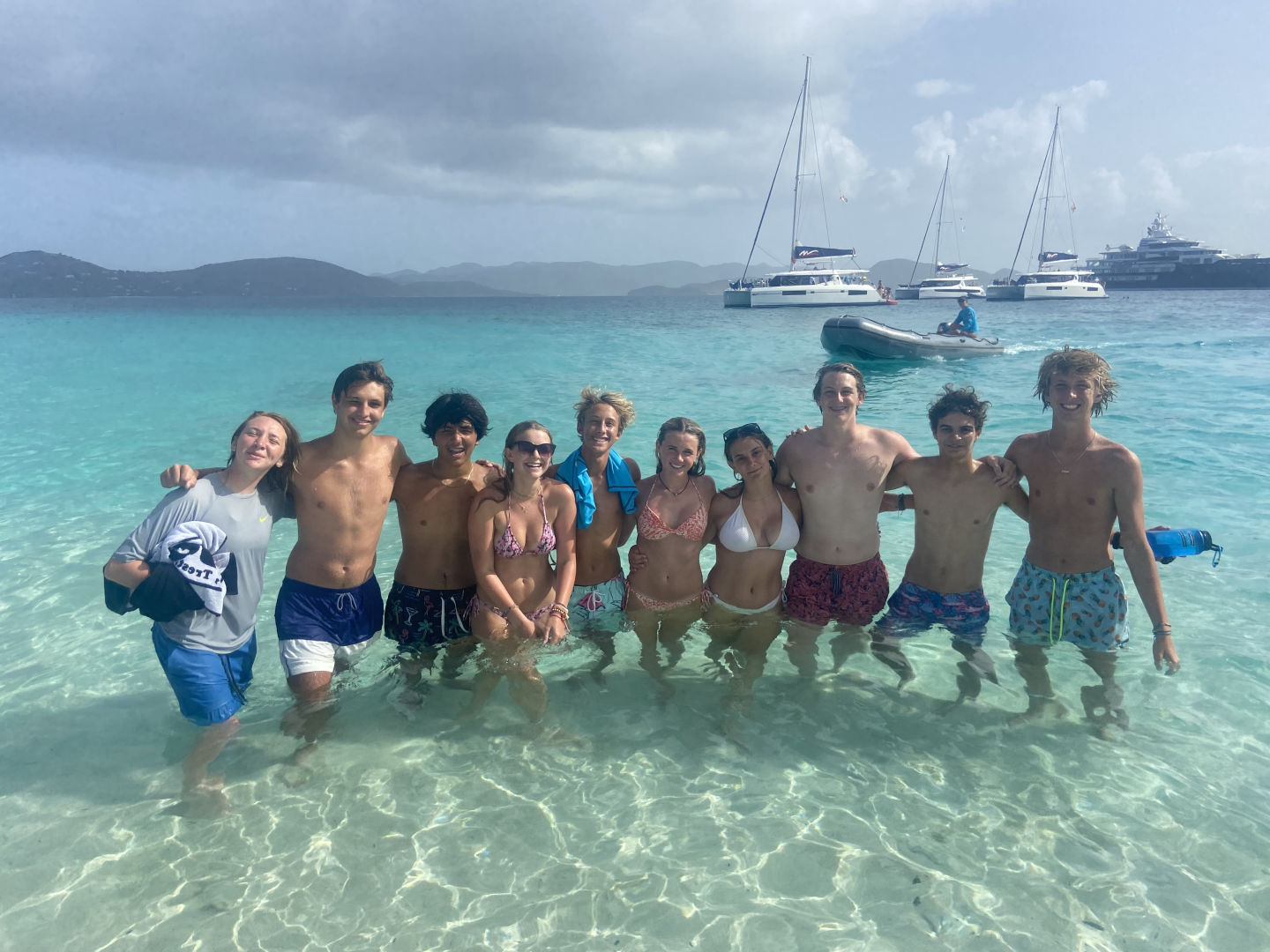 We arose at an unreasonable 6 AM to hike! We ate a quick breakfast of cereal and were off to get shuttled to the docks along with every boat. Mr. Mike gave us a quick speech about safety while hiking, and then we were off. With a ridiculous temp of 90 degrees and insane humidity, the hike was not for the weak. Scarlett was super excited to do the hike this year. Louella, Daniel, and I went up at a fast pace. We all met up at the smoothie shop near the top for a refresh. Blake was one of the first to the summit. Once we all got to the top, we had the hard decline down to lunch. We all ate lunch and shopped around. Micah and Matthew found some awesome hats as well. Violet got a giant Snocone. My step tracker read 18,000 steps in total. After lunch, we went back to the boat and motored over to Sandy Key for a sand castle contest. On the way, we had MOB(man over board) drills with fenders. Daniel and I were trading spots at the helm for the drills.