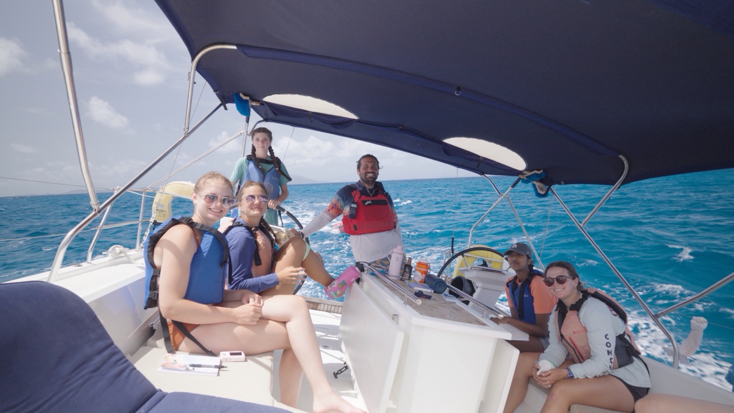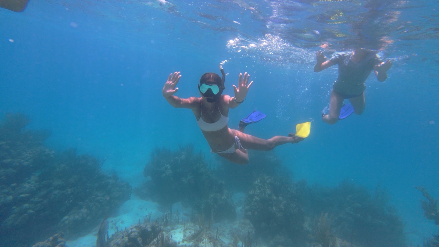 We then set sail to Anegada (about a 2-hour ride) for an afternoon of snorkeling their many reefs! Fun fact: Anegada is only 23 ft tall, so it’s not an island you can see from afar. These reefs were beautiful, and we spotted many different creatures. Annabelle encountered a pufferfish and a sea turtle, Maya saw a hermit crab with a big yellow shell, and of course, we all saw lots of fish (my favorite were these larger rainbow ones, not sure of the name….I’ll get back to you on that one!). After Dave took amazing videos and photos of us and the reefs, he swapped his diving gear with Heloise so that she could get a piece of the action! Anyway, we all struggled to climb onto the dinghies and headed back to Hagan Time! We motored over to Savannah Bay from Anegada, about 2 hours, where pretty much everyone (Bella, Lia, Amelia, Maya, Ella, and I) took much-needed naps..we’re still adjusting to island time, these long days in the sun have been kicking our butts.