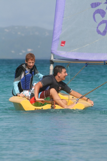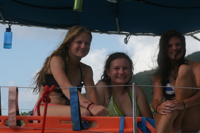 Today was my first day as skipper. I didn’t really like waking everyone up, but knowing that everyone had their first dive they didn’t really fight it. Then Andrew and Stephanie cooked some eggs for breakfast. After cleaning the deck we headed off to the beach where Vegas got to go diving while the Carinas learned to windsurf and sail the Picos. Then we swapped and the Carinas went diving and the Vegas went sailing. After the dive we headed back to the boat for lunch, which was PB+J. After that the Vegas headed back to the beach while the Carinas were waiting to ski. Then we learned how to drive the dinghies. Then we got back to the boat Lorenzo made an amazing Italian dinner that we all gulped down. Well all in all I’m having an amazing time in the BVI. So this is my blog, hope it makes you jealous haha.